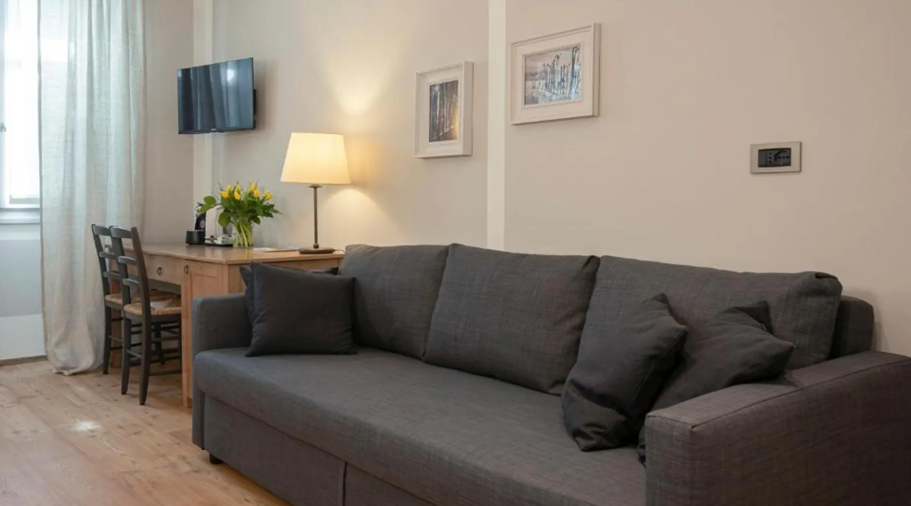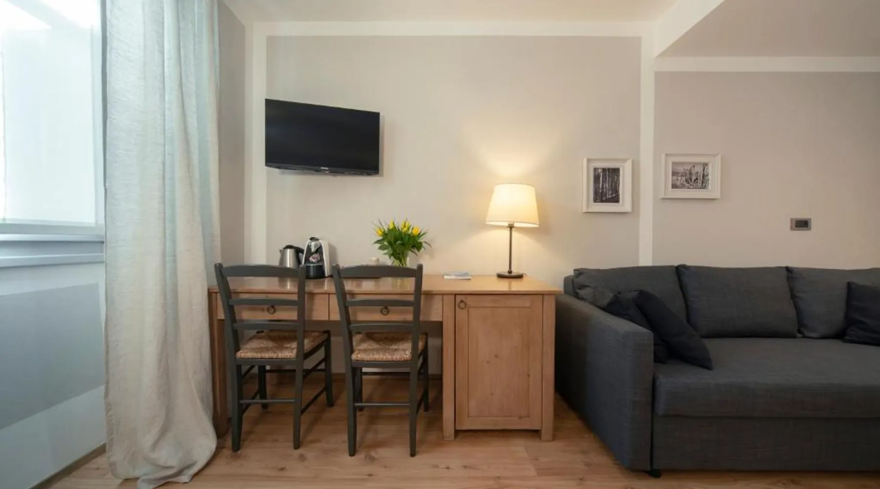 Historic Setting: La Canonica Suite Apartments New Location in Trento is housed in a historic building, offering a unique and charming atmosphere. Modern Amenities: Guests enjoy free WiFi, air-conditioning, streaming services, and private bathrooms equipped with bidets and free toiletries. Additional amenities include a kitchenette, dining table, and work desk. Convenient Location: Located 40 mi from Bolzano Airport, the apartment is near attractions such as the University of Trento (2.9 mi) and Palazzo Firmian (2.7 mi). Free on-site private parking is available. Guest Satisfaction: Highly rated for room cleanliness, convenient location, and quietness of the area. Boasting a private entrance, this air-conditioned suite comes with a kitchen, 1 bedroom and 1 bathroom with a shower and a bidet. The well-equipped kitchen has a stovetop, a refrigerator, kitchenware and a toaster. The suite features a flat-screen TV with streaming services, a mini-bar, a tea and coffee maker, a seating area as well as an inner courtyard view. The unit has 1 bed.