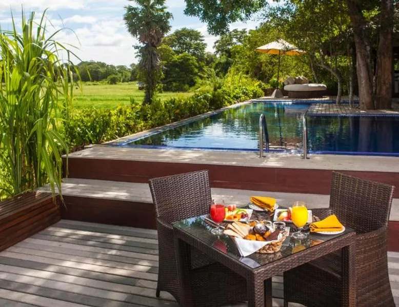 Sitting on 58 acres of tropical vegetation, Ulagalla Resort offers villas with plunge pools and free Wi-Fi. It has a spa, freshwater pool and activites like horseback riding and archery. Surrounded by acres of paddy fields and orchards, Resort Ulagalla offers villas with great views. They feature a film library, a private patio which sun loungers and rain shower facilities in the bathroom. The Ulagalla Resort features a well-equipped fitness center and a recreational room with pool table. Other recreational facilities include free bicycle rental. The tour desk assists guests with organizing visits to local attractions. Local specialties like spicy meats and fresh vegetable dishes can be enjoyed at the restaurant. An international a la carte menu is also available. Meals can be enjoyed in the privacy of villas. This double room's special feature is the pool with a view. The spacious double room provides air conditioning, a private entrance, a terrace with garden views as well as a private bathroom featuring a bath. The unit offers 1 bed.