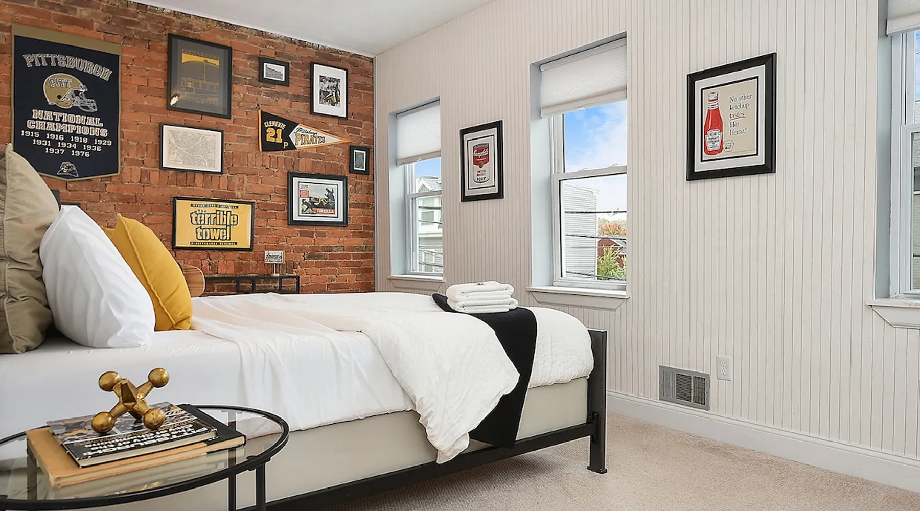Step into our industrial-vibe row house and feel right at home! High ceilings, thoughtful decor, and more make this Lawrenceville charmer a great place for you and your friends or family. Decorated by a local designer, each room has a playful, tasteful "theme" - Art Deco, Pittsburgh, Tiki, and Warhol. Our well-stocked kitchen invites you to stay in and cook a meal, but our location encourages you to head "aht" on the "tahn" for food & drinks. We look forward to hosting you! The space Our industrial-vibe home is under new management as of October 2023 - deep cleaned top to bottom, amenities restocked, maintenance addressed, and more. KEY AMENITIES / DETAILS: ✓ Check-out process: Chore-Free Checkout® ✓ Check-in process: Smart keyless entry with code ✓ Check-in technology: Dack-enabled, swipe to unlock, digital guide ✓ 4 Bedroom rowhouse with a private entrance ✓ 2 full bathrooms ✓ Sleeps 8 in one king, one queen, one full, and two twins ✓ Private outdoor patio ✓ Internet: 200mbps FiOS internet ✓ Desk: Dedicated desk area in bedroom ✓ Parking: Free street parking ✓ Laundry: Washer/dryer in basement ✓ Family friendly: Pack N Play, high chair, and more (upon request) ✓ Kitchen: Fully stocked with quality amenities ✓ Coffee: Pittsburgh's Commonplace Roasters premium whole bean coffee ✓ Tech: G-Mini enabled speaker, Smart TVs ✓ Eco-friendly: Recycling, earth-friendly toiletries & soaps, more ✓ HVAC: Whole home heating / AC CLEANING PROCEDURES: Now more than ever it is important to stay in a professionally cleaned space. We don't outsource our cleaning - our cleaners are professionally trained with a passion for what they do! Our team follows an industry-leading cleaning checklist, and our Operations team executes randomized inspections to ensure our standards are met. DETAILED FEATURES: ➤ 4 BR / 2BA home with private entrance ➤ Entrance + Security- Keyless entry with unique/random codes generated via Dack- enabled security software for each guest - highly secure! ➤ Sleeps 8 ➣ The bedrooms feature one king, one queen, one full, and two twins ➤ Parking - Free street parking for up to two vehicles ➤ Bathrooms - Two full bathrooms on the 2nd & 3rd floors ➣ Includes blow dryer, plush cotton towels, premium toiletries, more ➤ Outdoor Space - A small fenced in patio out back ➤ TVs - 55" 4K smart UHDTV in the living room ➣ Most apps are free to use and / or you are able to use your cable provider's login info for "paid" apps (ESPN, HBO, Showtime, etc.) ➤ Internet - High speed 200mbps up/down Verizon FiOS fiber optic ➤ Technology + Security - External cameras + internal non-recording decibel meter, for party prevention + smart speaker ➣ Dack-enabled smart lock with random code generation + digital app ➤ Kitchen - Fully stocked with stainless pots & pans, knives, utensils, toaster, microwave, full coffee set up, dishwasher, stove/range, and more ➤ Coffee & Tea - Drip coffee maker, French press, electric kettle, premium locally roasted Commonplace whole bean coffee, and premium tea selection is provided, along with organic sugar, Torani syrup, & individual creamers ➤ Dining - Seating for 4 available at the butcher block table ➤ Office space - One desk located in the bedroom ➤ Laundry - Washer/dryer in basement ➤ Air Conditioning / center heating ➤ Pets not permitted ➤ No Smoking indoors Guest access Guests have access to the entire home and fenced-in outdoor seating area. Other things to note Please note that our property is under new management as of October 2023; all reviews prior to this date are a reflection of our previous co-host, not our property.