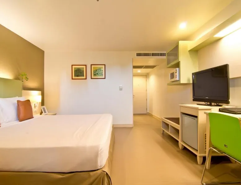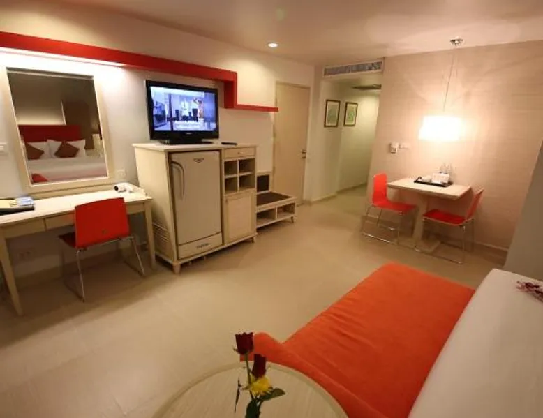 Located in the heart of Pattaya, Sunshine Vista creates a home away from home, with their spacious serviced apartments that offer the comforts of a private residence with the security and services of a hotel. All apartments have private balconies and are equipped with standard hotel amenities, while Studio and Executive Studio apartments include a kitchen and dining area. Sunshine Vista's on-site facilities include a gym, a restaurant that serves a selection of Thai and Western cuisine and a rooftop pool bar, where you will be able to unwind and enjoy the magnificent sea view of Pattaya Bay. With its close proximity to Pattaya beach and Sunshine Vista's peaceful atmosphere, you are guaranteed a relaxing stay. This spacious apartment is consisted of of 1 living room, 1 separate bedroom and 2 bathrooms with a bath and free toiletries. The well-fitted kitchen features a refrigerator, kitchenware, a microwave and a tea and coffee maker. This air-conditioned apartment consists of a dining area, a flat-screen TV with cable channels a mini-bar and a terrace. The unit offers 4 beds.