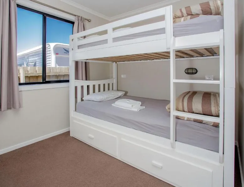Offering an outdoor pool, a hot tub and a BBQ area, BIG4 Traralgon Park Lane Holiday Park is just 3.7 mi from Traralgon's town center. Your self-contained accommodations includes free onsite parking. BIG4 Traralgon Park Lane Holiday Park is home to Parky's Fun Park which features an Adventure Ropes Course, Laser Tag and Mini Golf. Parky's Fun Park tickets can be purchased half price for all in-park guests. The park is also home to Parky's Wonderland Indoor Play Center, which is free to all park guests. Guests also enjoy an outdoor children's playground and pedal go-karts. Open 9-5pm weekends, public holidays and school holidays. Times may vary during winter Set over 6 acres, each air-conditioned cabin features a fully equipped kitchen, a dining setting and a private bathroom. Communal facilities include meeting rooms, a shared lounge, a guest kitchen and a games room. Guests can take a day trip to Tarra Bulga National Park, Mt Baw Baw and the historic town of Walhalla. This spacious well-appointed cabin has a king-sized bed in the main bedroom, and large single bunk beds, with a trundle in the second bedroom. There is a large bathroom with a double shower and sinks, a fully equipped modern kitchen with dishwasher, laundry facilities, and a spacious living area.