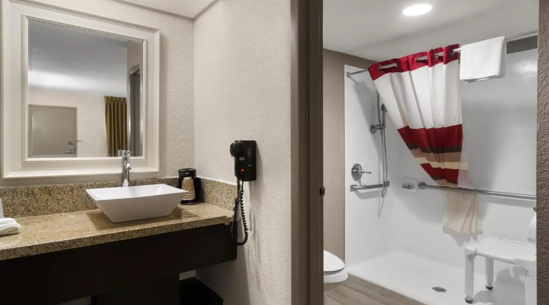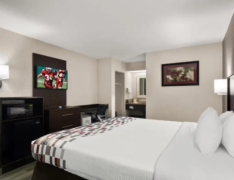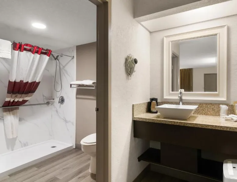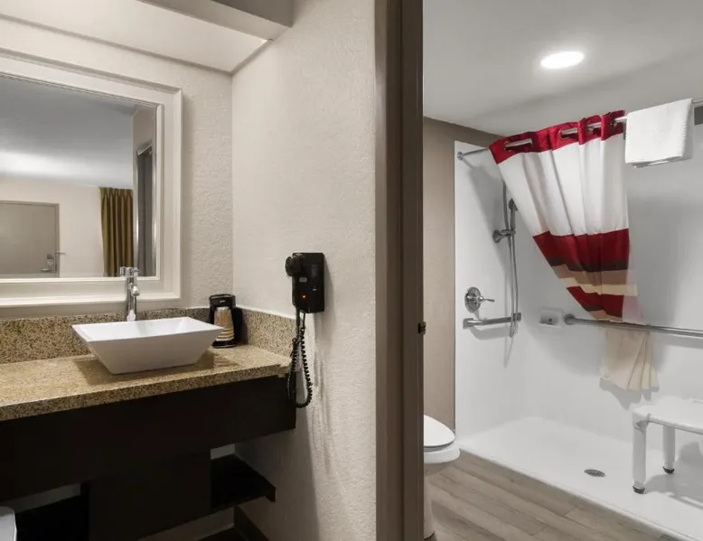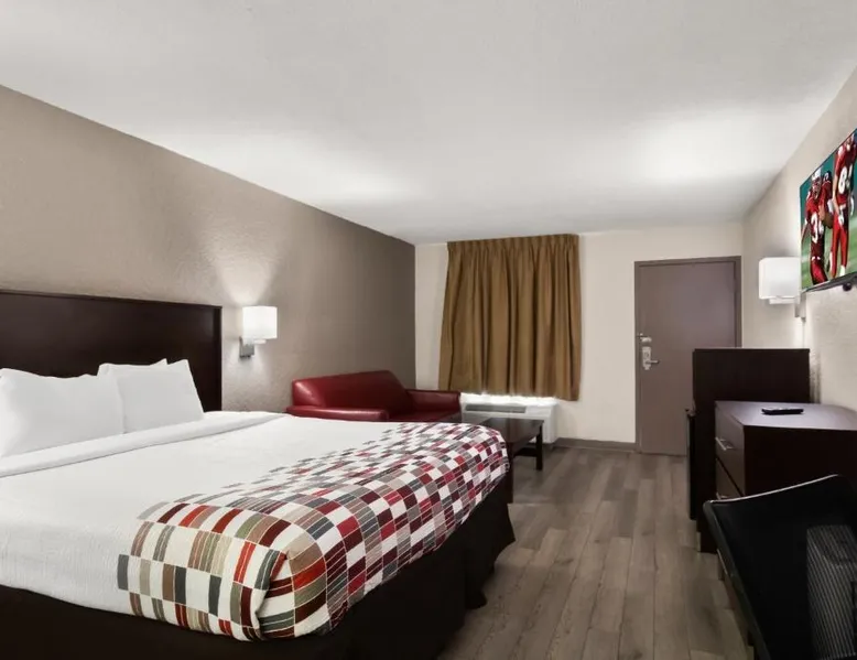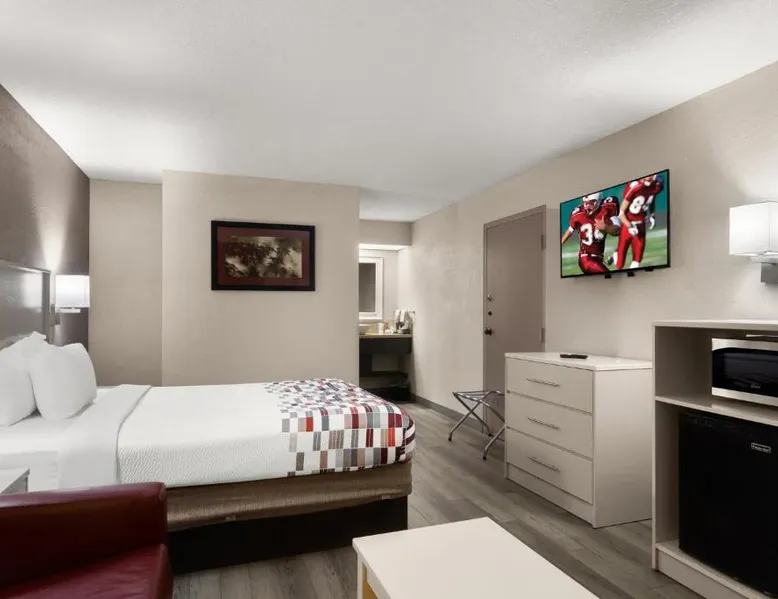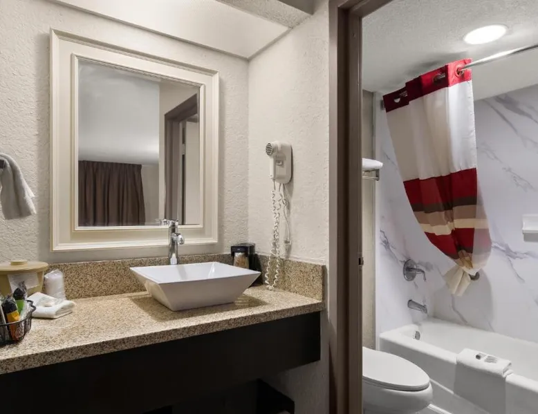 Comfortable Accommodations: Rooms feature air-conditioning, private bathrooms, tea and coffee makers, hairdryers, and free toiletries. Additional amenities include refrigerators, work desks, and parquet floors. Exceptional Facilities: Guests enjoy a year-round outdoor swimming pool, free WiFi, lounge, elevator, 24-hour front desk, daily housekeeping service, business area, and coffee shop. Free on-site private parking is available. Delicious Breakfast: A continental buffet breakfast includes fresh pastries and fruits, providing a satisfying start to the day. Prime Location: Located in Kingsland, the hotel is 22 mi from Jacksonville International Airport. Nearby attractions include Amelia Island Historic District (25 mi) and Amelia Island Lighthouse (26 mi). Guests appreciate the convenient location, room comfort, and value for money. Providing free toiletries, this double room includes a private bathroom with a shower and a hairdryer. The spacious air-conditioned double room provides a flat-screen TV with cable channels, a private entrance, a tea and coffee maker and a sofa. The unit offers 1 bed.