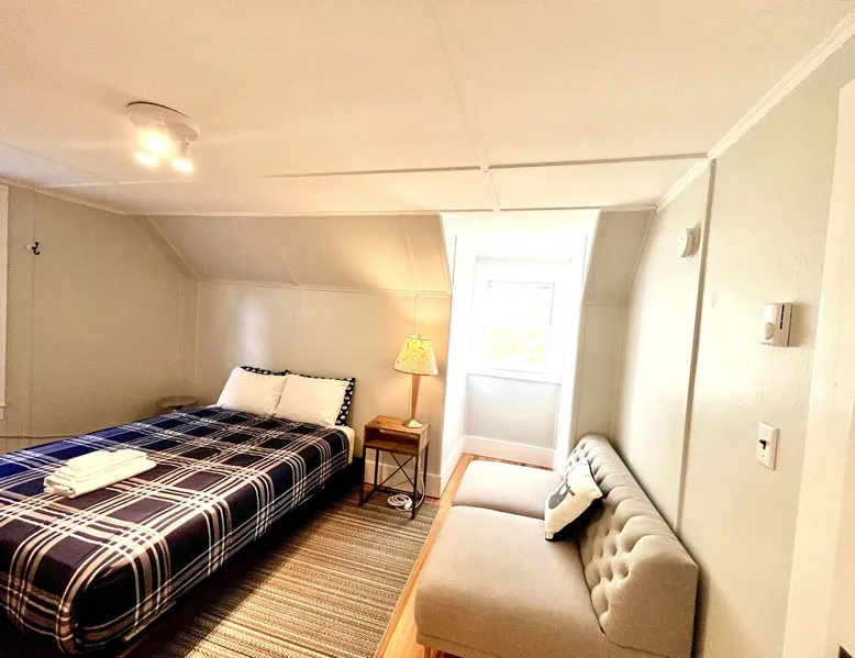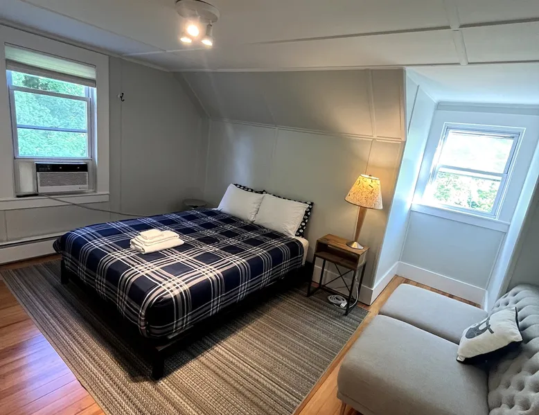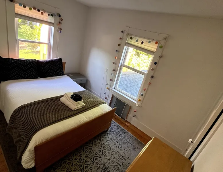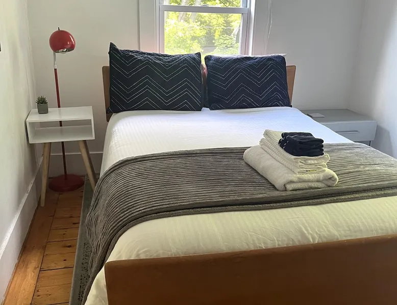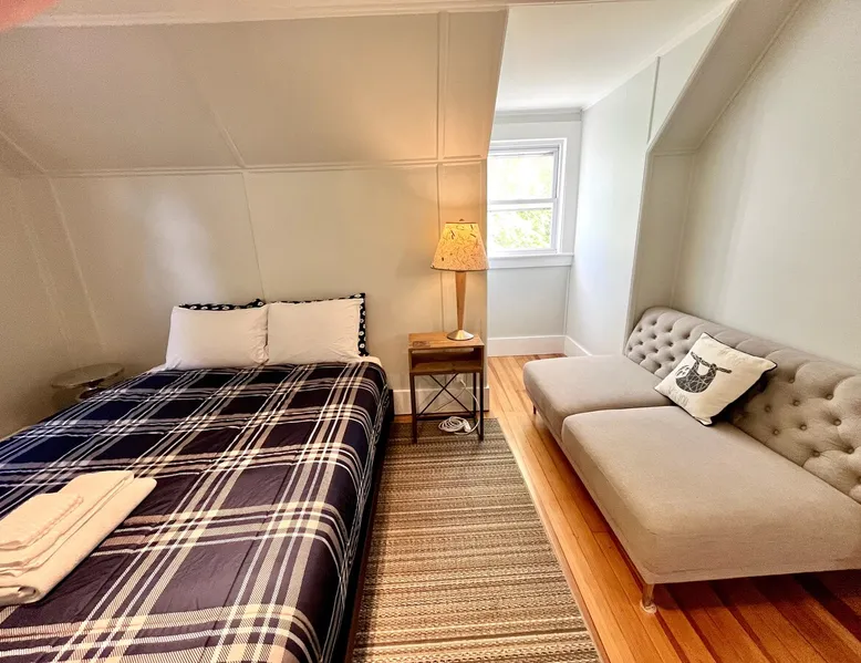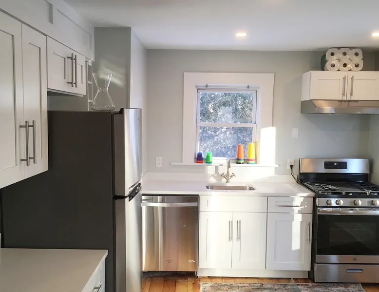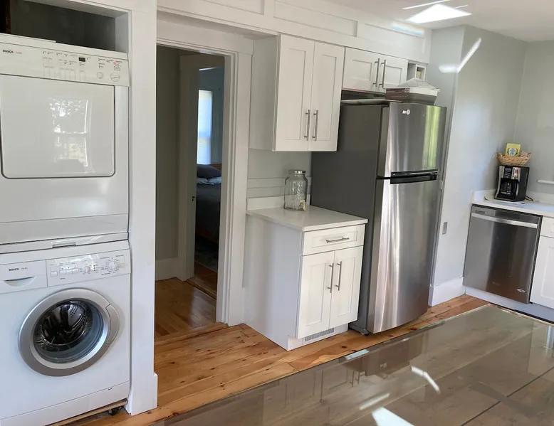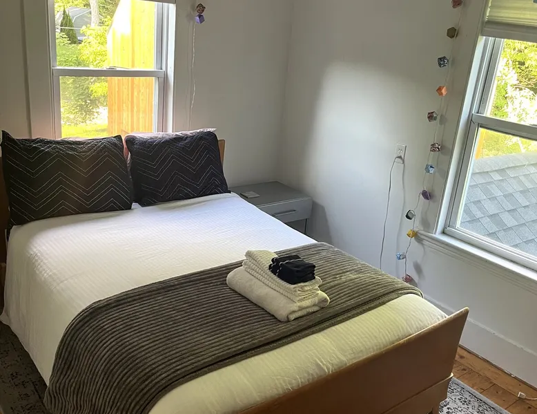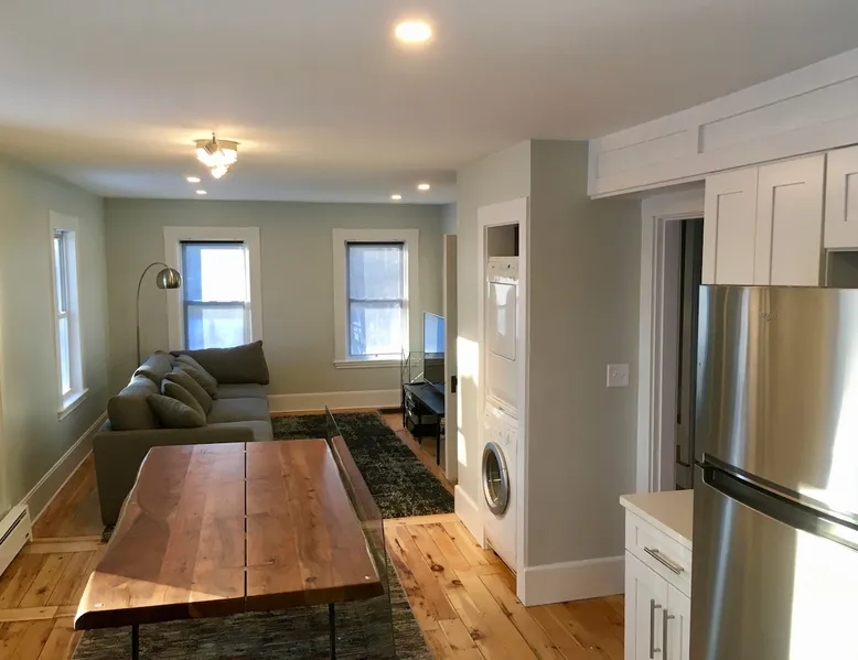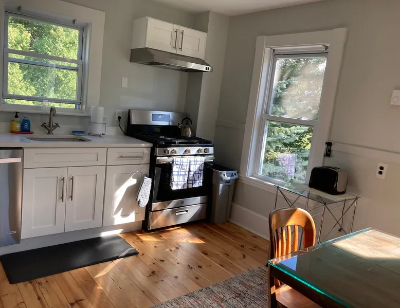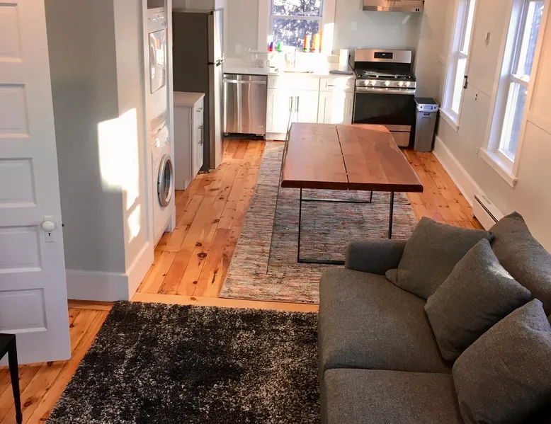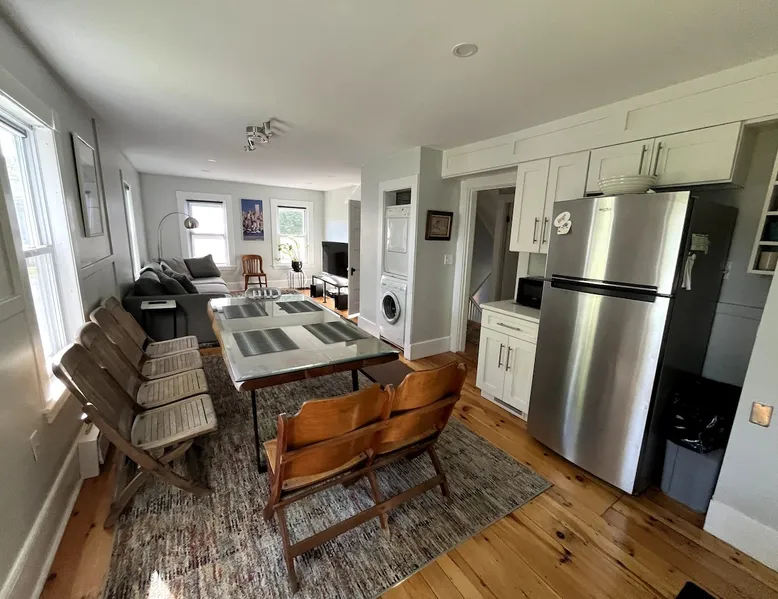 Walk to the charm, culture and water views of Portsmouth and Kittery from this newly renovated house on a quiet side street. Huge yard for grilling and relaxing. Wake with coffee and a croissant at our excellent local bakeries or fresh fruit at Golden Harvest. Award winning dining options (Black Birch, Anju, Black Trumpet etc) are close by. Work off the fresh lobster with a hike at our state parks or a stroll down the beach. Excellent biking and kayaking nearby. Outlets are minutes away. The space We renovated this house as if we were going to live in it ourselves - because that's the long term plan. An open concept common area flows to a modern kitchen with tasteful shaker style cabinetry. Other features include an oversized, high-end sofa that is super comfy as an alternate sleep space, (if four bedrooms aren't enough!), a large brand new flat screen tv, new mattresses made in the USA (Maine in some cases) gleaming hardwood floors, new tile in bathrooms (one is marble). House has tons of windows so it gets great light, and views of the iconic church steeple in Market Square in some seasons. *Compact* washer dryer and dishwasher on site. Few rentals in the area offer the outdoor space we have - we were lucky to find a place with a double lot that backs up against a wooded hillside. Picnic table is ready for your lobster or bbq feast. Leave your car in the drive -- you can walk to the best of Portsmouth, New Hampshire and Kittery, Maine from the house! NOTE: This unit is the top two floors of the house. Guest access We do not live on site. Access is via the first staircase on left side of house that leads to second floor. Once inside the door walk up the half flight of stairs into the unit. If you are not comfortable with stairs, you might want to explore other options. Other things to note We take the public health situation extremely seriously (one of our parents is a physician) and have reviewed the enhanced cleaning policies suggested by airbnb to ensure we are doing all we can to ensure a safe visit. We ask that you be considerate with regard to Covid-19 when making plans to travel to Maine and follow state guidelines. We're all in this together. This property is unique in the sense that you will not easily find a property as conveniently located, with a yard that can accommodate spacial distancing as well as ours -- previous owners had the foresight to secure an additional lot to create a buffer around the house. Which is particularly useful right now. We have a cleaning fee of 150.