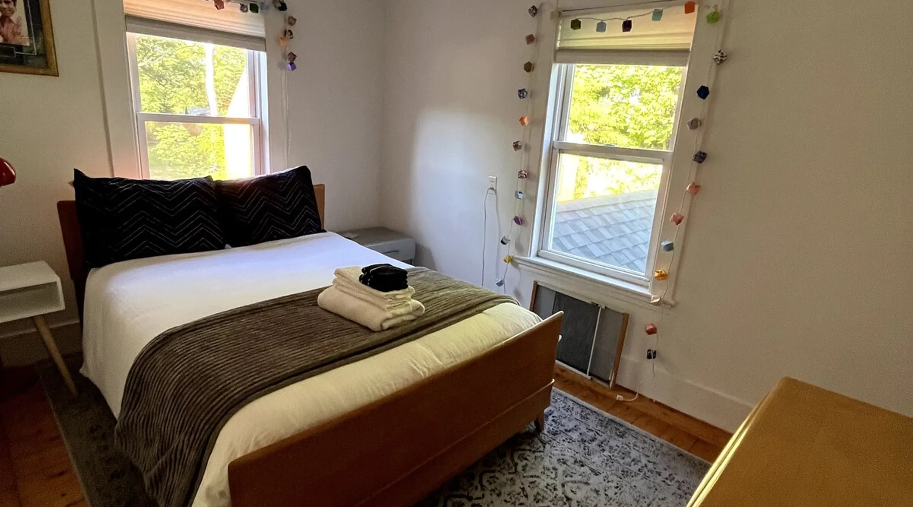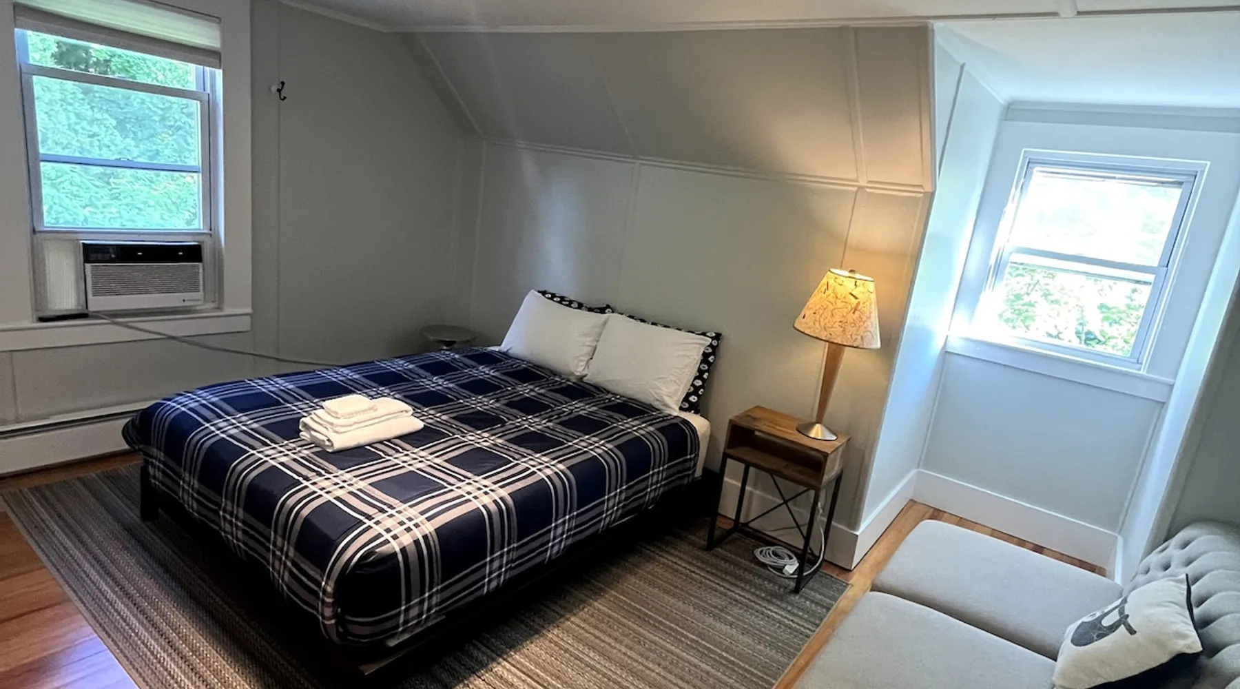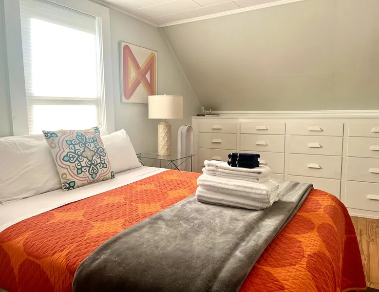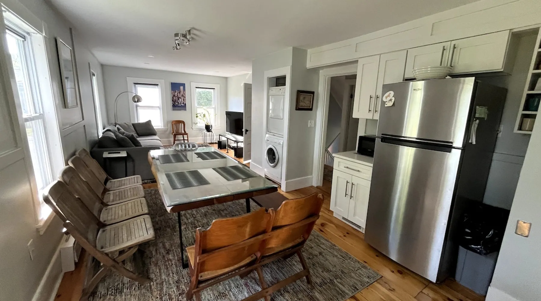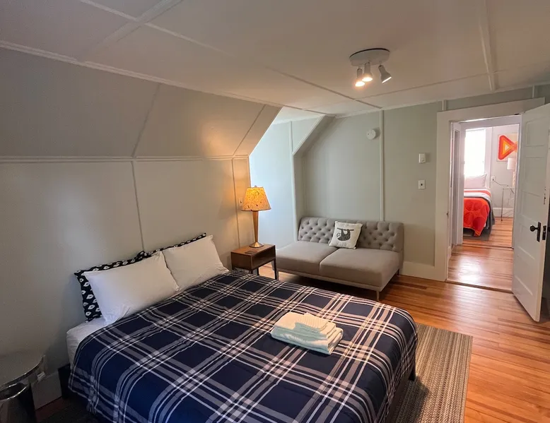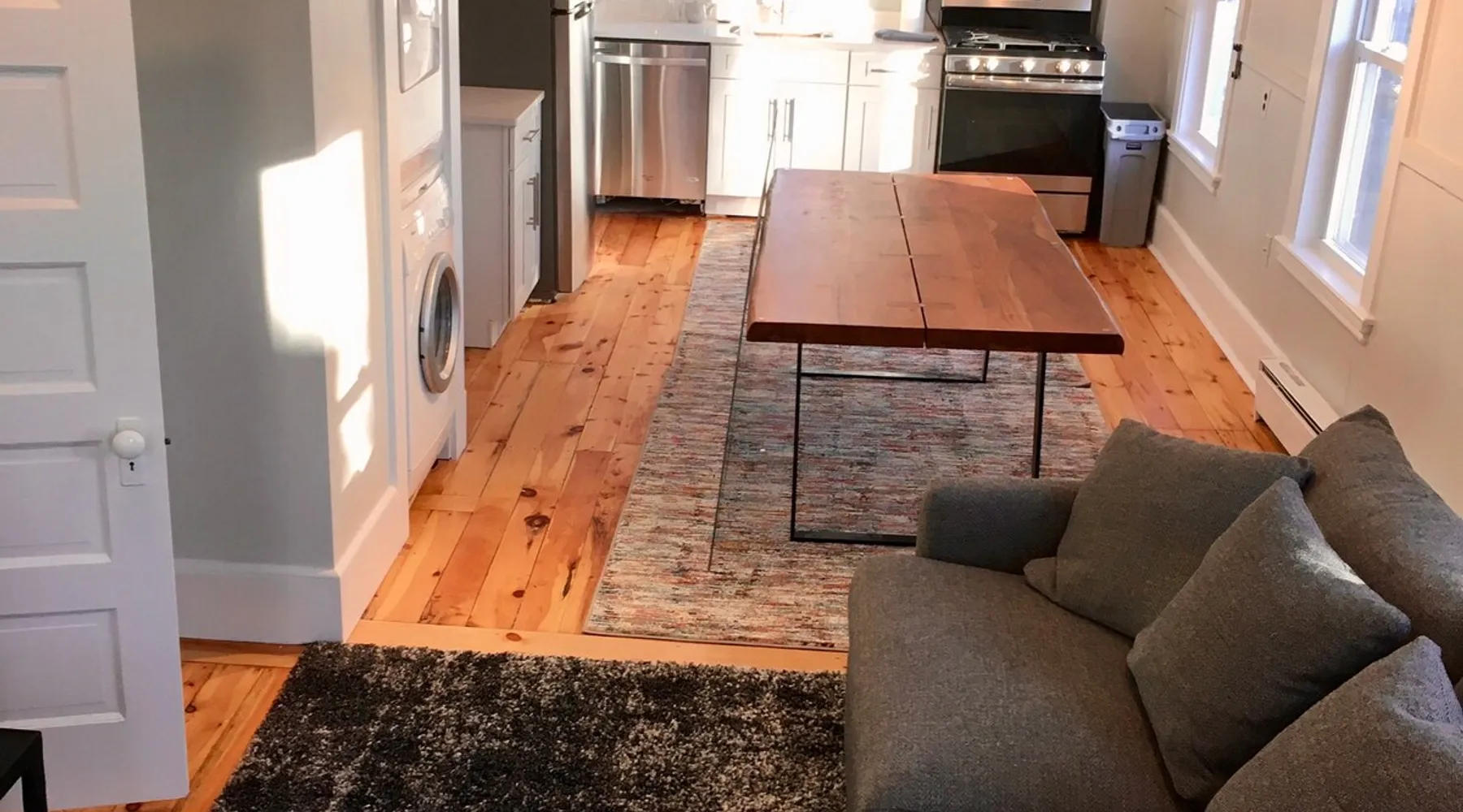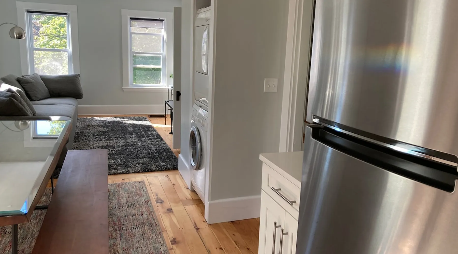 Walk to the charm, culture and water views of Portsmouth and Kittery from this newly renovated house on a quiet side street. Huge yard for grilling and relaxing. Wake with coffee and a croissant at our excellent local bakeries or fresh fruit at Golden Harvest. Award winning dining options (Black Birch, Anju, Black Trumpet etc) are close by. Work off the fresh lobster with a hike at our state parks or a stroll down the beach. Excellent biking and kayaking nearby. Outlets are minutes away. The space We renovated this house as if we were going to live in it ourselves - because that's the long term plan. An open concept common area flows to a modern kitchen with tasteful shaker style cabinetry. Other features include an oversized, high-end sofa that is super comfy as an alternate sleep space, (if four bedrooms aren't enough!), a large brand new flat screen tv, new mattresses made in the USA (Maine in some cases) gleaming hardwood floors, new tile in bathrooms (one is marble). House has tons of windows so it gets great light, and views of the iconic church steeple in Market Square in some seasons. *Compact* washer dryer and dishwasher on site. Few rentals in the area offer the outdoor space we have - we were lucky to find a place with a double lot that backs up against a wooded hillside. Picnic table is ready for your lobster or bbq feast. Leave your car in the drive -- you can walk to the best of Portsmouth, New Hampshire and Kittery, Maine from the house! NOTE: This unit is the top two floors of the house. Guest access We do not live on site. Access is via the first staircase on left side of house that leads to second floor. Once inside the door walk up the half flight of stairs into the unit. If you are not comfortable with stairs, you might want to explore other options. Other things to note We take the public health situation extremely seriously (one of our parents is a physician) and have reviewed the enhanced cleaning policies suggested by airbnb to ensure we are doing all we can to ensure a safe visit. We ask that you be considerate with regard to Covid-19 when making plans to travel to Maine and follow state guidelines. We're all in this together. This property is unique in the sense that you will not easily find a property as conveniently located, with a yard that can accommodate spacial distancing as well as ours -- previous owners had the foresight to secure an additional lot to create a buffer around the house. Which is particularly useful right now. We have a cleaning fee of 150.