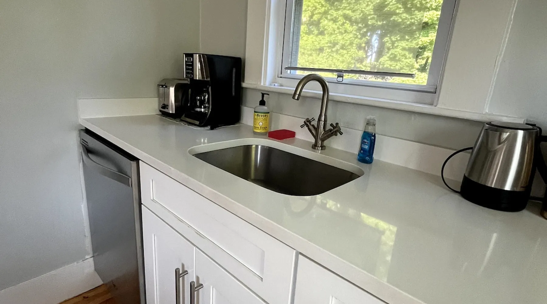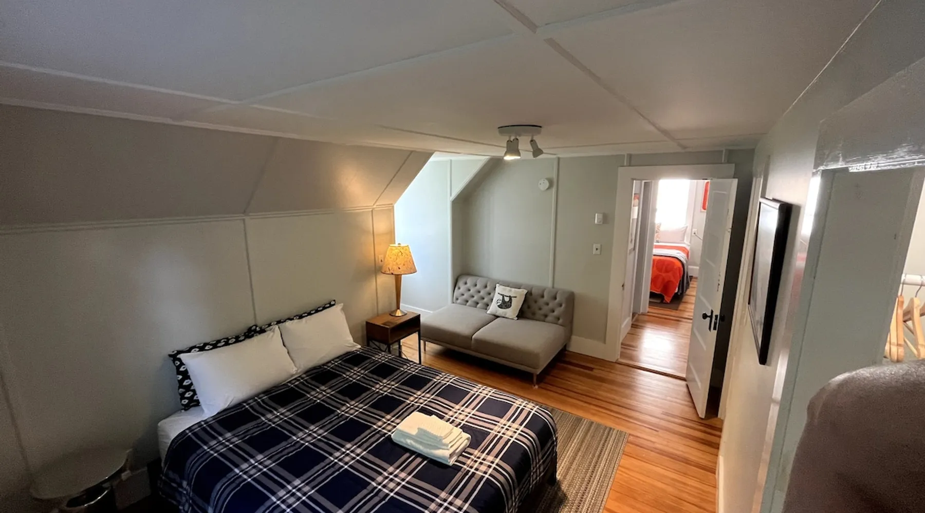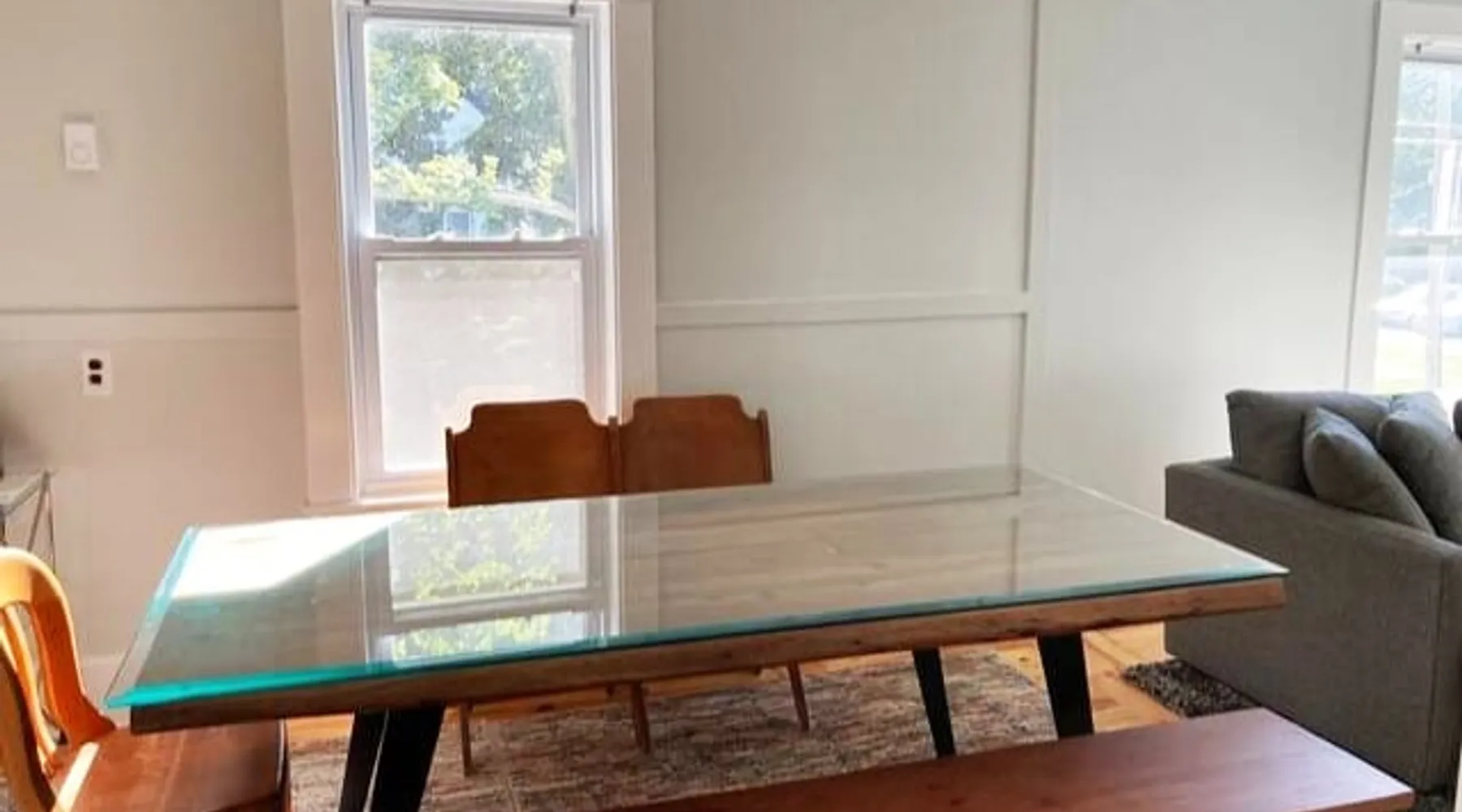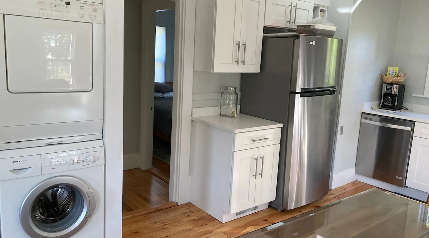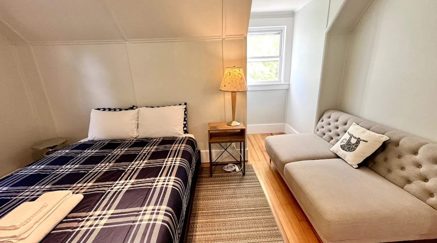 Walk to the charm, culture and water views of Portsmouth and Kittery from this newly renovated house on a quiet side street. Huge yard for grilling and relaxing. Wake with coffee and a croissant at our excellent local bakeries or fresh fruit at Golden Harvest. Award winning dining options (Black Birch, Anju, Black Trumpet etc) are close by. Work off the fresh lobster with a hike at our state parks or a stroll down the beach. Excellent biking and kayaking nearby. Outlets are minutes away. The space We renovated this house as if we were going to live in it ourselves - because that's the long term plan. An open concept common area flows to a modern kitchen with tasteful shaker style cabinetry. Other features include an oversized, high-end sofa that is super comfy as an alternate sleep space, (if four bedrooms aren't enough!), a large brand new flat screen tv, new mattresses made in the USA (Maine in some cases) gleaming hardwood floors, new tile in bathrooms (one is marble). House has tons of windows so it gets great light, and views of the iconic church steeple in Market Square in some seasons. *Compact* washer dryer and dishwasher on site. Few rentals in the area offer the outdoor space we have - we were lucky to find a place with a double lot that backs up against a wooded hillside. Picnic table is ready for your lobster or bbq feast. Leave your car in the drive -- you can walk to the best of Portsmouth, New Hampshire and Kittery, Maine from the house! NOTE: This unit is the top two floors of the house. Guest access We do not live on site. Access is via the first staircase on left side of house that leads to second floor. Once inside the door walk up the half flight of stairs into the unit. If you are not comfortable with stairs, you might want to explore other options. Other things to note We take the public health situation extremely seriously (one of our parents is a physician) and have reviewed the enhanced cleaning policies suggested by airbnb to ensure we are doing all we can to ensure a safe visit. We ask that you be considerate with regard to Covid-19 when making plans to travel to Maine and follow state guidelines. We're all in this together. This property is unique in the sense that you will not easily find a property as conveniently located, with a yard that can accommodate spacial distancing as well as ours -- previous owners had the foresight to secure an additional lot to create a buffer around the house. Which is particularly useful right now. We have a cleaning fee of 150.