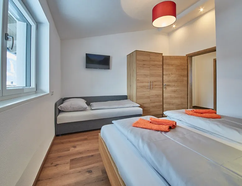The space The penthouse accommodates up to 10 people and is perfect for your vacation. It features 3 bedrooms, a modern bathroom, a spacious living and kitchen area, and a 30 sqm sun terrace with a lounge and grill. Ideal for both summer and winter sports. A carport, three parking spaces, a bike wash station, and free Wi-Fi are included.