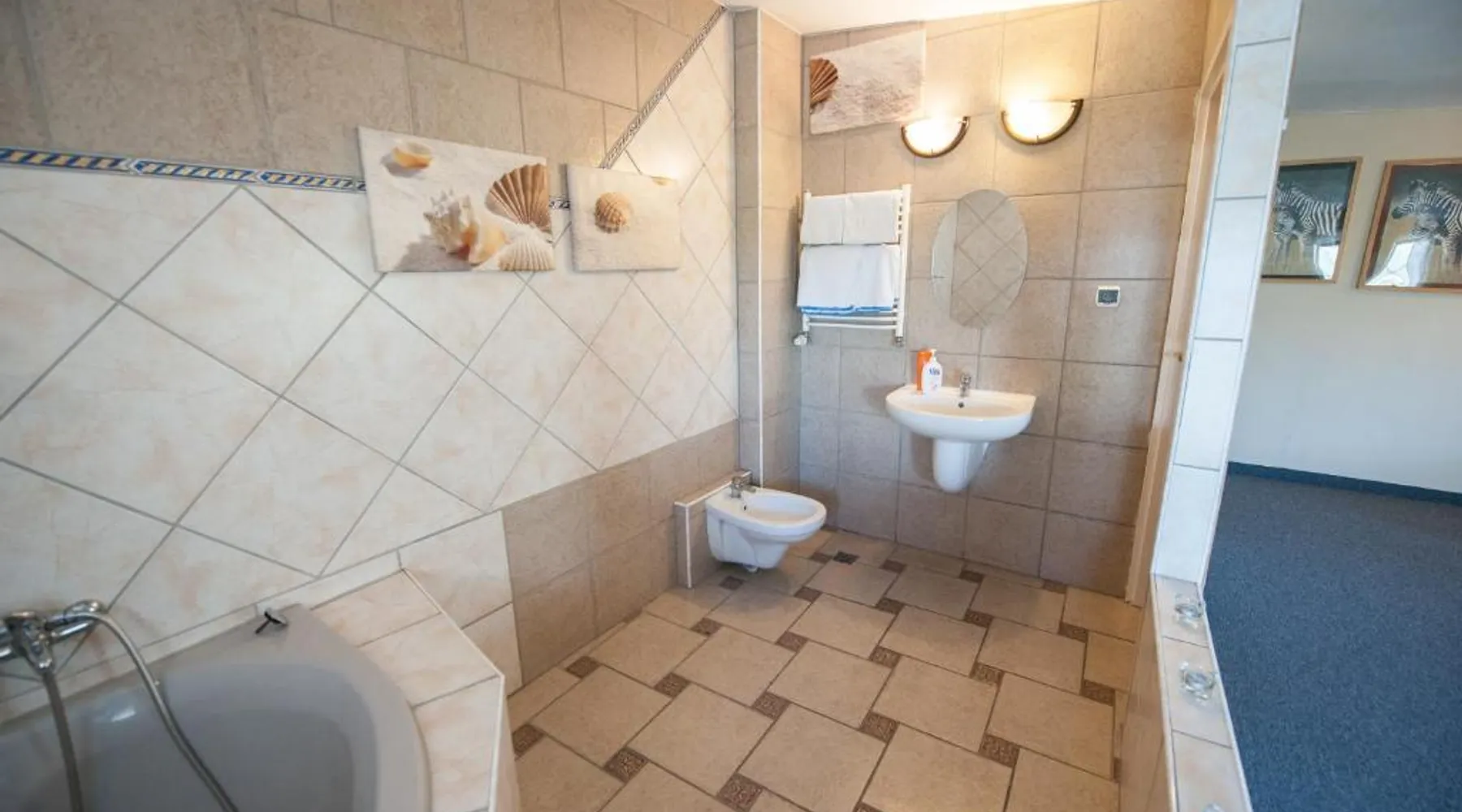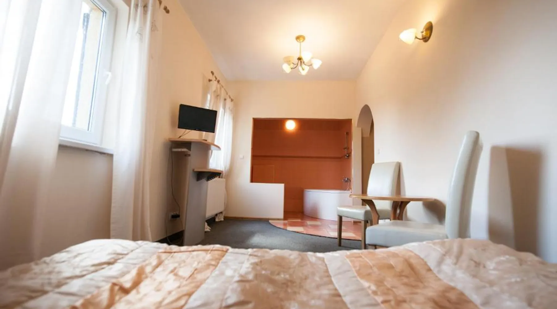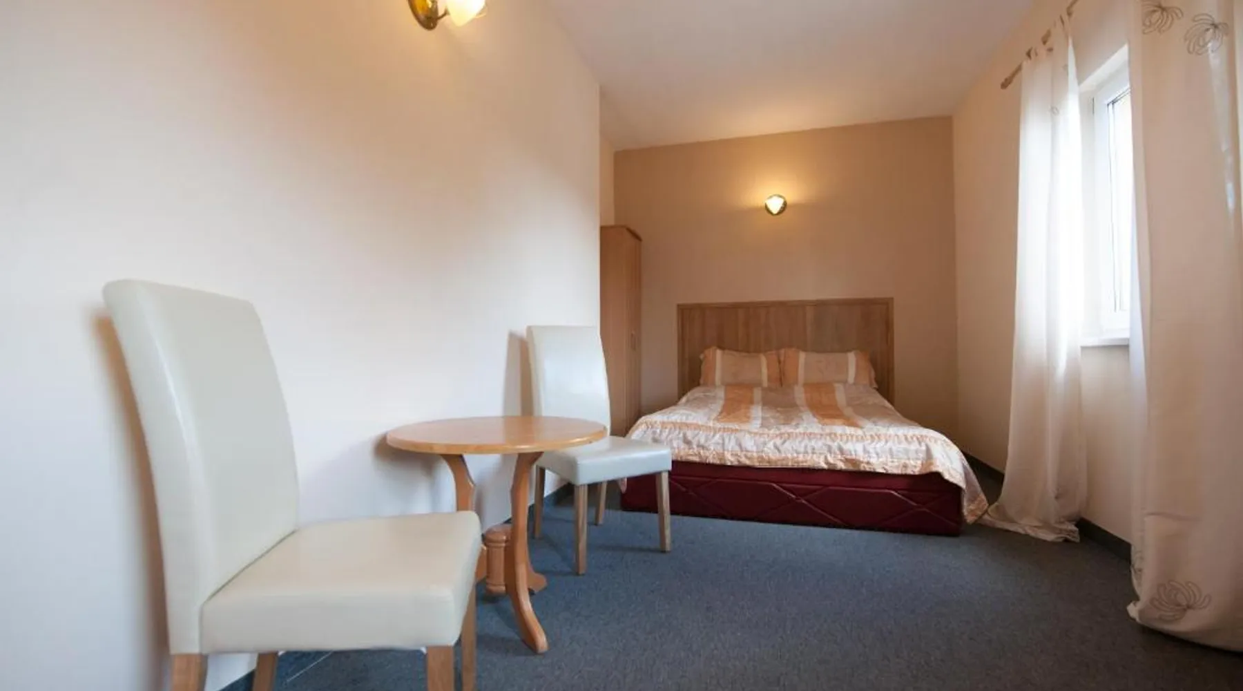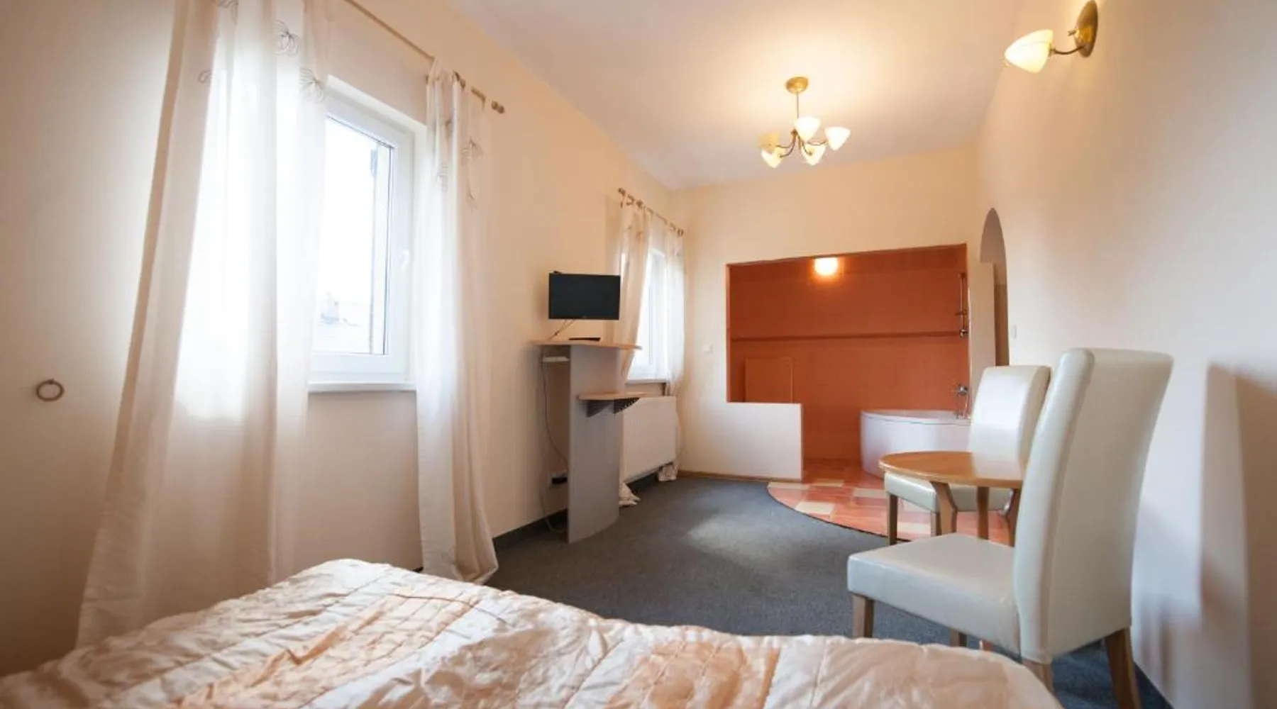 Comfortable Accommodations: Gościniec Pod Furą in Pustków Wilczkowski offers comfortable rooms with private bathrooms, dining tables, work desks, and free toiletries. Each room includes a TV, wardrobe, and carpeted floors. Exceptional Facilities: Guests can enjoy a garden, terrace, restaurant, bar, and free WiFi. Additional amenities include a lounge, 24-hour front desk, room service, and free on-site private parking. Dining Experience: The family-friendly restaurant serves Polish and local cuisines for lunch and dinner in a traditional ambiance. Private check-in and check-out services ensure a smooth arrival and departure. Local Attractions: Located 19 mi from Copernicus Wrocław Airport, the property is near attractions such as Kolejkowo (17 mi) and Wrocław Main Market Square (19 mi). Guests can participate in walking, bike, and cycling tours. Featuring free toiletries, this double room includes a private bathroom with a bath or a shower. The double room features a flat-screen TV with satellite channels, a wardrobe, a carpeted floor and heating. The unit has 2 beds.