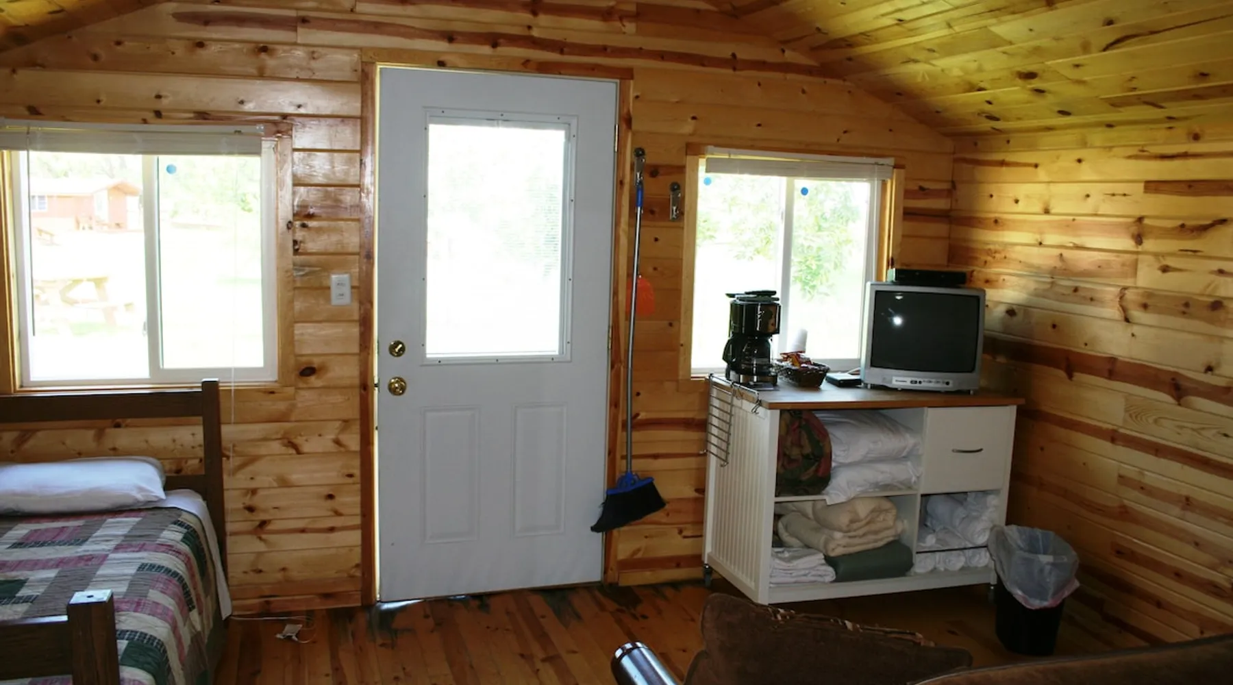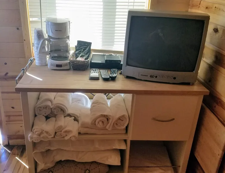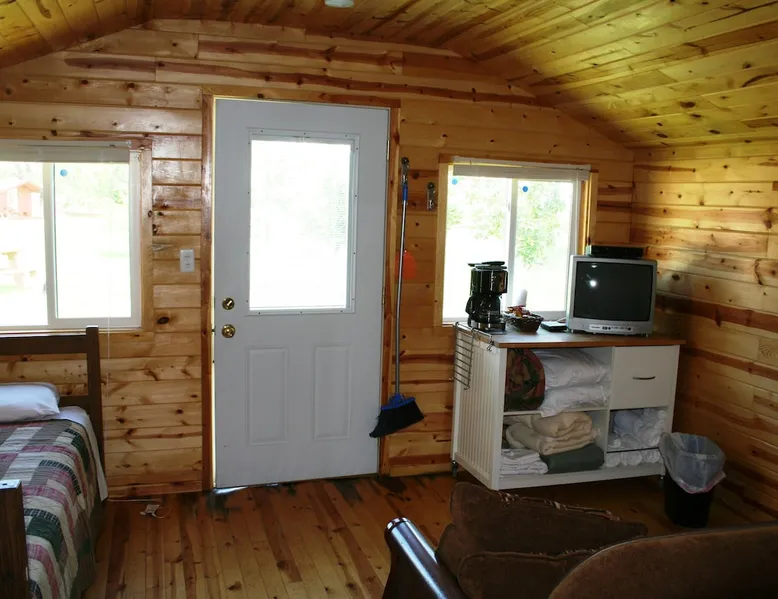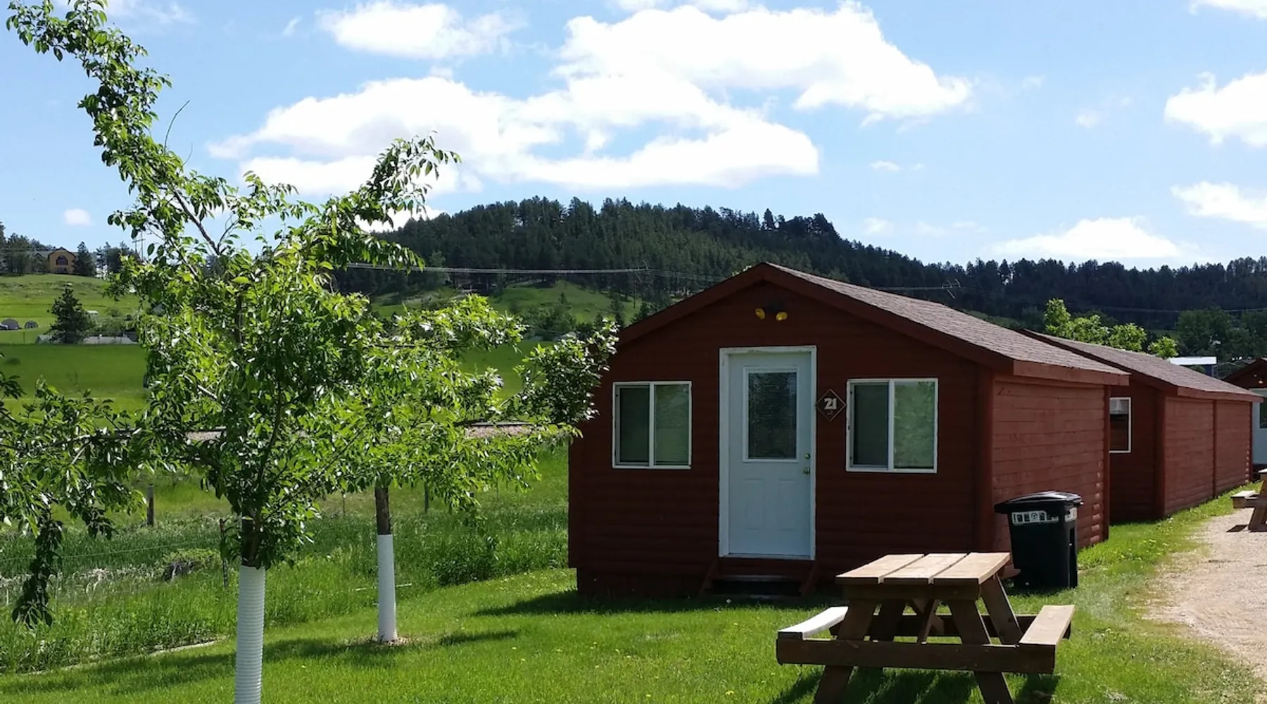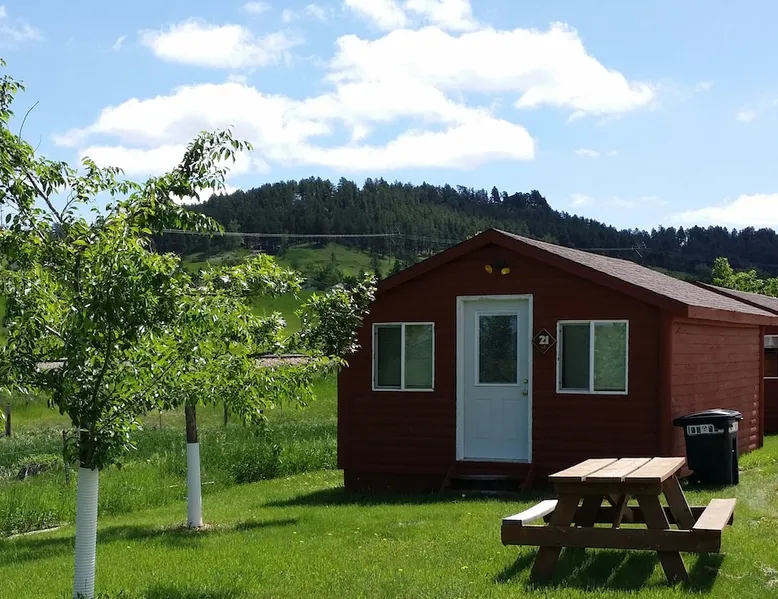 Come enjoy a peaceful stay in this cozy cabin. The cabin is located near the bath/shower houses, the bar and grill and a short walk to the pool. The space Cabin 21 is equipped with 2 queen beds, futon that folds out into a full and a set of bunk beds. A dorm fridge, microwave, coffee pot (with condiments, coffee and cups), cable TV, pillows and air conditioning is also included. This cabin comes with professionally pressed linens and towels for a fresh, clean feel. You will also have your own picnic table to enjoy meals on as well as a tree for shade! THIS CABIN DOES NOT HAVE A BATHROOM BUT IS LOCATED WITHIN WALKING DISTANCE TO THE BATHHOUSE. Guest access During your stay at our campground, enjoy all of the amenities we have to offer, including breakfast (fees apply) a heated pool, above-ground hot tub, playground area, WIFI, coin-operated laundry facilities, shower house and bathhouse, on-site propane services, pool table, dart board, bar area and community natural gas fire pit. We also border the Black Hills National Forest giving you access to miles of hiking, biking and 4-wheeling trails. During your stay Our campground is open from May to October. We live here on the premises and are available at all times. Other things to note FYI...We do have a train that comes thru twice a day, once in the morning and again in the evening. Some guests claim it a nuisance where as others never even hear it.