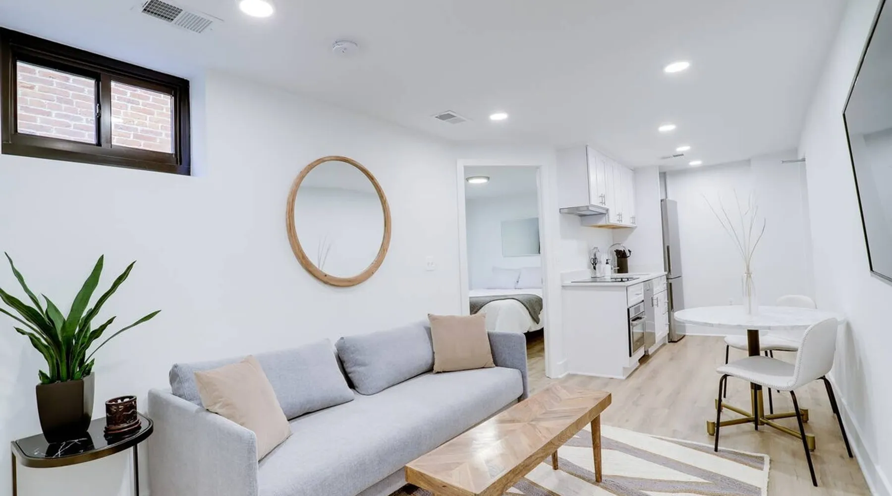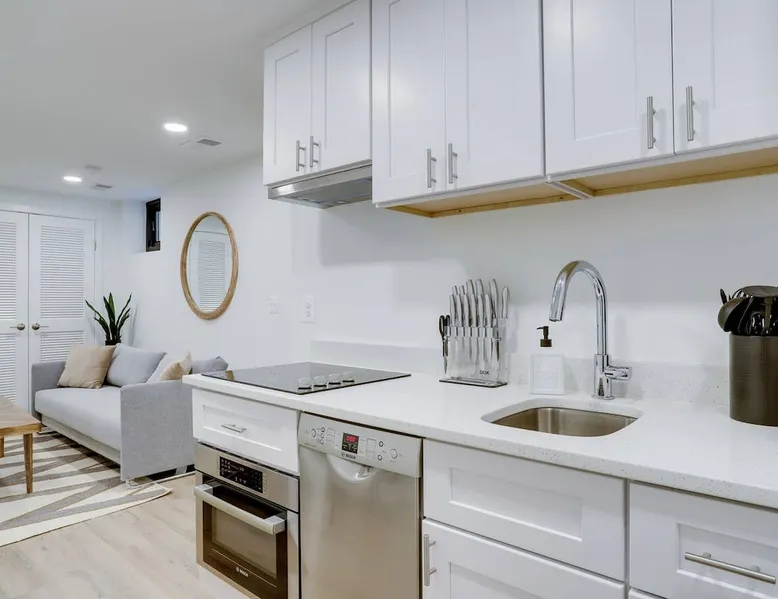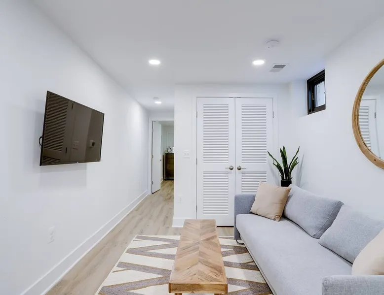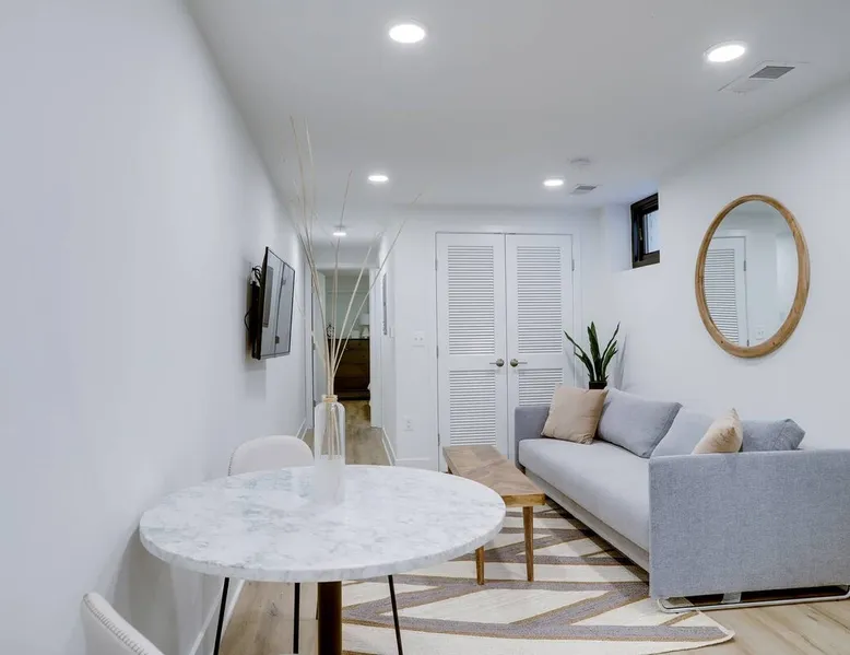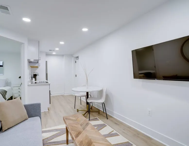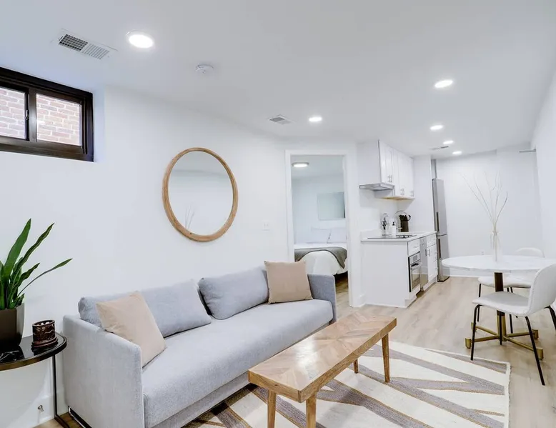 Bright, comfortable and modern describe this fully appointed garden level 2 bedroom. Located in the epicenter of DC's hippest restaurant scene, this is the urban dwellers perfect abode. The home features 2 queen beds, comfortable sofa, modern finishes, custom interior design, Bosche appliances, private business speed WiFi, in unit washer and dryer and central heat and air and the cherry on top is 2 zip cars on site and available for guest use with a zip car membership. The space All Sojourn cleaners are certified in cleaning practices based on guidelines from The World Health Organization, Center for Disease Control and Prevention, US Occupational Safety and Health Administration, and the US Food and Drug Administration. Sojourn, A Turnkey Luxury Experience. We’ve hosted over 10,000 guests in 50+ spaces with an average rating of 4.8 stars. Each space is handpicked, in unbeatable locations and is designed and run by us. A Sojourn space is carefully curated, thoughtfully designed, complete with beautiful and comfortable furniture. Sojourn, at our core hospitality. All Sojourn homes come with: - 24/7 support via text, email, or phone - Coffee, fresh towels, and bathroom essentials provided - Immaculately clean homes - Self check-in - Fully-equipped kitchen - Superior quality mattresses - The most comfortable, welcoming linens you have ever slept on - Blackout shades or curtains in every room - Giga Blast Business Speed WiFi Guest access Our home is contactless seamless and easy self check in. A code will be set for you and shared 48 hours before your arrival. At Sojourn we take your happiness and comfort seriously. No request is too big or too small for our team and we strive to make your stay as comfortable and memorable as possible. Don't hesitate to ask. Other things to note We are looking forward to hosting you but there are a few things you need to do in order to make sure that you, and all of our guests, are safe and that everyone can enjoy their respective stays! This message also includes other useful information about pets, baby gear and parking: 1) Our properties are protected by SUPERHOG. Please note that if you book a short-term rental (under 30 days), you will be contacted by SUPERHOG directly to verify yourself. Please make sure this is completed prior to check-in. 2) Please confirm that you accept the following House Rules and Responsibilities on behalf of yourself and guests. A violation of the House Rules can result in an immediate termination of your reservation without refund. For the comfort of our guests, residents and members of the Sojourn team, smoking of any kind (marijuana, cigarettes, or vaping) is not permitted anywhere in the interior of our building or within thirty (50) feet of our building, including outdoor spaces. Should our team or neighbors report the odor of smoke we will contact the booking service, terminate your stay, claim any and all damages and post the appropriate review. Parties and events are strictly prohibited. All Sojourn homes are equipped with noise monitoring devices (decibel readers), your privacy is safe however, noise levels exceeding normal levels are grounds for ending your stay and are strictly enforced. In the event we are notified of any excess noise, music, gathering or parties a Sojourn representative will respond and your reservation will be terminated without refund. Please also note that all Sojourn buildings and homes are equipped with some type of exterior camera that records the exterior and common areas to include all entries to the building. What NOT to Flush Down the Toilet or put down drains or in the garbage disposal - If found that these cause plumbing issues Sojourn can and will charge the guest. * Cooking Grease/Food/Coffee grinds should never be poured down any drain, period. ... * Feminine Products. Tampons and other feminine hygiene products are not supposed to be flushed down the toilet. * Baby Wipes/Wet Wipes/Cleaning Pads * Dental Floss * Q-tips/Cotton Balls * Diapers * Pills * Paper Towels/Tissues *Coffee grounds 3) If you are booking a flat that allows pets the pet fee is $75 per pet per week. This only applies to pet friendly listings. 4) We are happy to provide both a Pack and Play and/or high chair. These must be reserved in advance and a $25 rental fee will be charged. 5) If you are booking a flat in Washington DC, we have several parking options. Please inquire about advanced parking pass or parking space reservations. Registration details Exempt