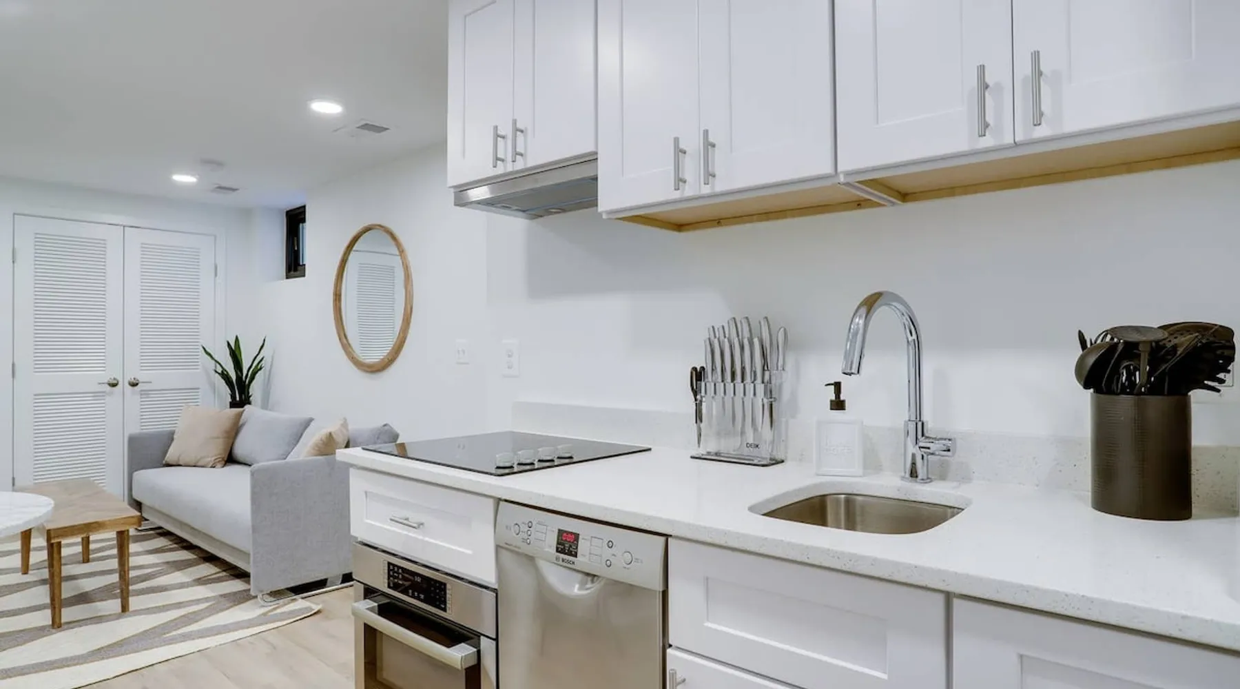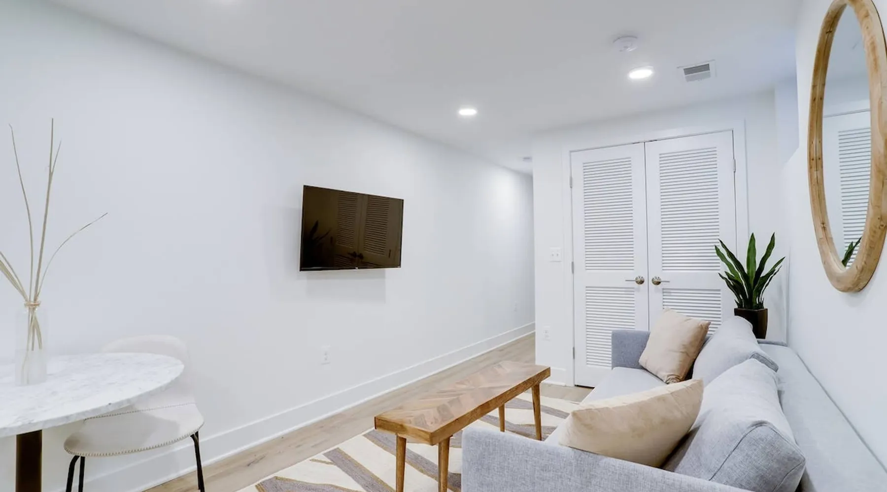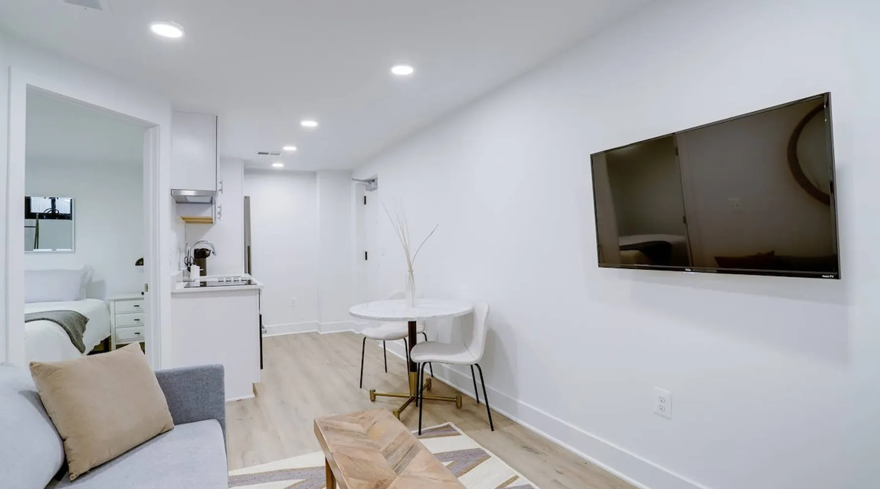 Bright, comfortable and modern describe this fully appointed garden level 2 bedroom. Located in the epicenter of DC's hippest restaurant scene, this is the urban dwellers perfect abode. The home features 2 queen beds, comfortable sofa, modern finishes, custom interior design, Bosche appliances, private business speed WiFi, in unit washer and dryer and central heat and air and the cherry on top is 2 zip cars on site and available for guest use with a zip car membership. The space All Sojourn cleaners are certified in cleaning practices based on guidelines from The World Health Organization, Center for Disease Control and Prevention, US Occupational Safety and Health Administration, and the US Food and Drug Administration. Sojourn, A Turnkey Luxury Experience. We’ve hosted over 10,000 guests in 50+ spaces with an average rating of 4.8 stars. Each space is handpicked, in unbeatable locations and is designed and run by us. A Sojourn space is carefully curated, thoughtfully designed, complete with beautiful and comfortable furniture. Sojourn, at our core hospitality. All Sojourn homes come with: - 24/7 support via text, email, or phone - Coffee, fresh towels, and bathroom essentials provided - Immaculately clean homes - Self check-in - Fully-equipped kitchen - Superior quality mattresses - The most comfortable, welcoming linens you have ever slept on - Blackout shades or curtains in every room - Giga Blast Business Speed WiFi Guest access Our home is contactless seamless and easy self check in. A code will be set for you and shared 48 hours before your arrival. At Sojourn we take your happiness and comfort seriously. No request is too big or too small for our team and we strive to make your stay as comfortable and memorable as possible. Don't hesitate to ask. Other things to note We are looking forward to hosting you but there are a few things you need to do in order to make sure that you, and all of our guests, are safe and that everyone can enjoy their respective stays! This message also includes other useful information about pets, baby gear and parking: 1) Our properties are protected by SUPERHOG. Please note that if you book a short-term rental (under 30 days), you will be contacted by SUPERHOG directly to verify yourself. Please make sure this is completed prior to check-in. 2) Please confirm that you accept the following House Rules and Responsibilities on behalf of yourself and guests. A violation of the House Rules can result in an immediate termination of your reservation without refund. For the comfort of our guests, residents and members of the Sojourn team, smoking of any kind (marijuana, cigarettes, or vaping) is not permitted anywhere in the interior of our building or within thirty (50) feet of our building, including outdoor spaces. Should our team or neighbors report the odor of smoke we will contact the booking service, terminate your stay, claim any and all damages and post the appropriate review. Parties and events are strictly prohibited. All Sojourn homes are equipped with noise monitoring devices (decibel readers), your privacy is safe however, noise levels exceeding normal levels are grounds for ending your stay and are strictly enforced. In the event we are notified of any excess noise, music, gathering or parties a Sojourn representative will respond and your reservation will be terminated without refund. Please also note that all Sojourn buildings and homes are equipped with some type of exterior camera that records the exterior and common areas to include all entries to the building. What NOT to Flush Down the Toilet or put down drains or in the garbage disposal - If found that these cause plumbing issues Sojourn can and will charge the guest. * Cooking Grease/Food/Coffee grinds should never be poured down any drain, period. ... * Feminine Products. Tampons and other feminine hygiene products are not supposed to be flushed down the toilet. * Baby Wipes/Wet Wipes/Cleaning Pads * Dental Floss * Q-tips/Cotton Balls * Diapers * Pills * Paper Towels/Tissues *Coffee grounds 3) If you are booking a flat that allows pets the pet fee is $75 per pet per week. This only applies to pet friendly listings. 4) We are happy to provide both a Pack and Play and/or high chair. These must be reserved in advance and a $25 rental fee will be charged. 5) If you are booking a flat in Washington DC, we have several parking options. Please inquire about advanced parking pass or parking space reservations. Registration details Exempt
