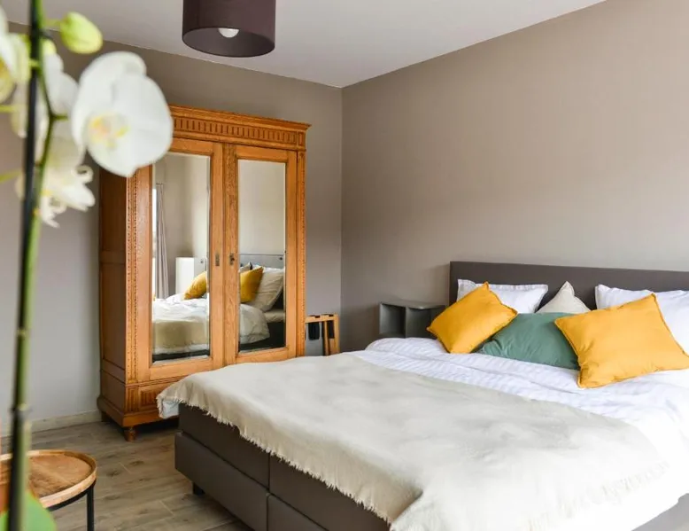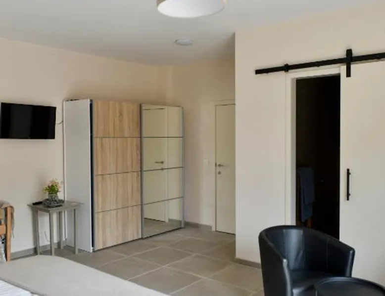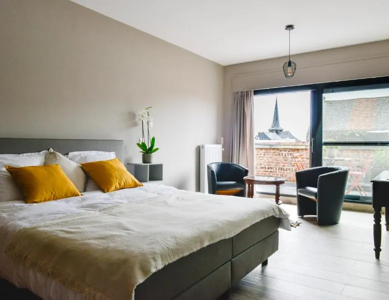 Comfortable Accommodations: B&B O Chocolat Cho in Sint-Pieters-Leeuw offers private bathrooms with walk-in showers, tea and coffee makers, and garden views. Each room includes a work desk, seating area, and wardrobe. Outdoor Spaces: Guests can relax in the garden or on the terrace, enjoying outdoor furniture and a bar. Free WiFi is available throughout the property. Convenient Amenities: The bed and breakfast provides free on-site private parking, a balcony, and a ground-floor unit. Additional amenities include a TV, electric kettle, and tiled floors. Prime Location: Located 18 mi from Brussels Airport, the property is near attractions such as Bruxelles-Midi (6.8 mi) and Grand Place (8.7 mi). Highly rated for its breakfast, terrace, and room cleanliness. The triple room features a tea and coffee maker, a seating area, a terrace with garden views as well as a private bathroom boasting a walk-in shower. The unit has 2 beds.