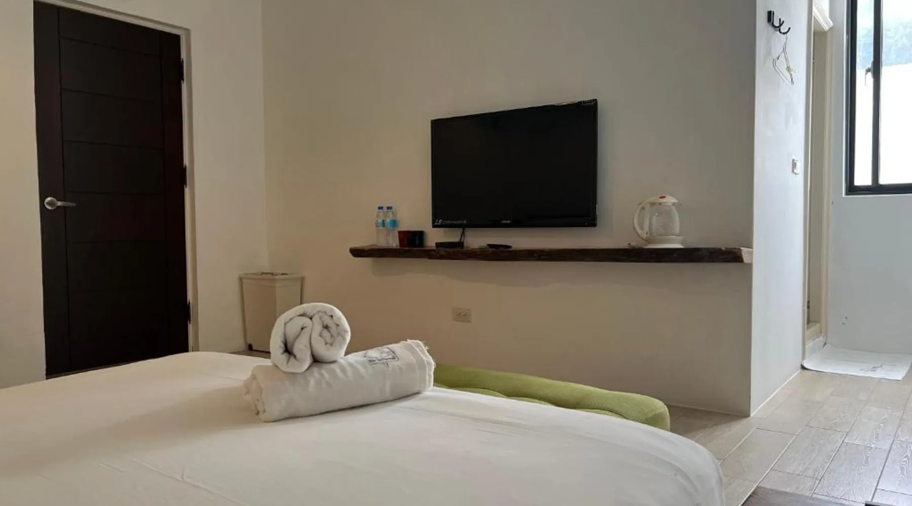 Beachfront Location: 永勝客棧 in Manzhou offers direct beachfront access and a sun terrace. Guests can enjoy sea views and relax on the beach. Comfortable Accommodations: Rooms feature air-conditioning, private bathrooms, and free WiFi. Additional amenities include balconies, terraces, and sea views. Leisure Facilities: The property provides a bar, lounge, games room, and outdoor seating area. Free bicycles are available for exploring the surroundings. Local Attractions: Gangkou Beach is just a few steps away, while Jialeshuei Scenic Area lies 328 feet nearby. Other attractions include Eluanbi Lighthouse and Kenting Night Market. Guest Services: Private check-in and check-out, paid shuttle, concierge, and tour desk services are available. Free parking and breakfast with continental, vegetarian, and gluten-free options are provided. Room features air conditioning, a double beds, a flat-screen cable TV and private bathroom with shower facilities.