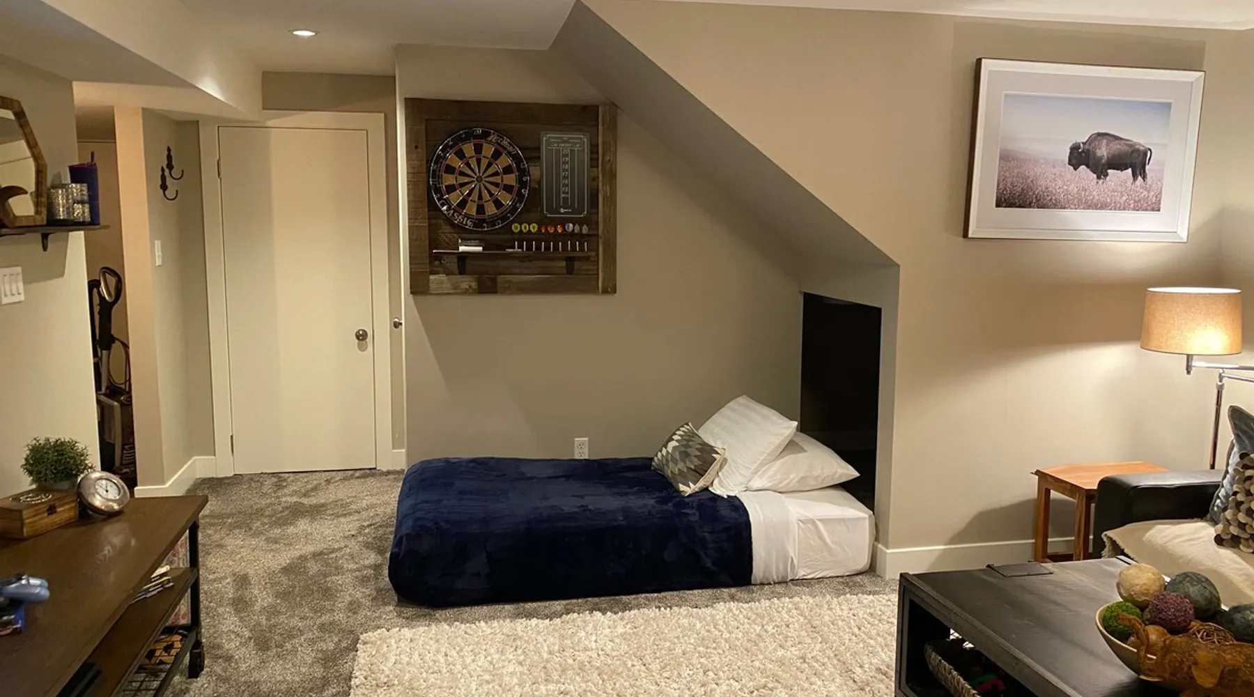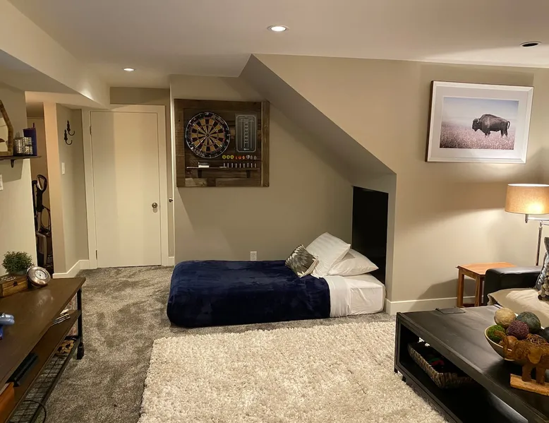 Our small family is happy to share our newly remodeled basement and bedroom with your family and friends. Our house lies in a family friendly neighborhood and is just a hop and a skip away from you finding your first tracks in the snow. We hope you can make yourself at home with a private entrance, a relaxing & fun living area, and a large hot tub. The space We do live in the house upstairs and you might hear a few pitter patters from our 5 year old. As well, we have a 15 year old standard poodle that might wander out in the back yard occasionally to stretch her legs, but don’t worry she is a sweetheart. You will have your own private entrance through the back basement door. Or preferably through the garage door using the key pad or garage door opener. (Please do not lose the garage door opener. A fee of $45 will be charged if lost) The hot tub is professionally serviced and is designate for your use only during your stay. FREE early check in or late check out when available. Sleeps up to 4 very comfortably....Can sleep 5 Remodeled Basement 1Bedroom / 1Bath / Large Living space HOT TUB, BBQ, Sony PS4, Dart board, and Mini Ping Pong Table. Centrally located! Ideal for ski vacations, small families with or without kids, corporate business trips, or convention groups. Only 7 miles to the ski canyon entrance! (Snowbird, Alta, Solitude, Brighton) Also just minutes from downtown Salt Lake City. This inviting 1 Bedroom basement is a great place to relax and watch movies, play board games, Sony Play Station, darts, or mini ping pong. The bedroom could sleep two comfortably in the queen bed and has a separate TV. Outdoors you'll find a hot tub, BBQ, and a few chairs to soak up the sun in a fenced yard. Sleeping Arrangements Bedroom: Queen Bed (Sleeps 2); This bed will be prepared on arrival Living Space: 2 Twin Mattress + 2 Luxury Foam Sleeping Matts + Couch = (Sleeps 5 Total) The twin mattresses and sleeping pads are stored in the nook. It will be your responsibility to prepare your bed. Clean sheets and blankets will be stored in the shelves in the laundry room. Guest access The lower level of the house has been designated for your full private access and use. This includes the living space, bedroom, full bath, laundry/breakfast area. As well as the back yard were the hot tub is located. (we hope you are ok with our dog occasionally saying hello) Access to the basement is through the south front gate into the back yard and around to into basement entrance. But we prefer you use the garage to enter and to come and go. This will be more convenient for you. Out of respect to our neighbors we would Please park your car in the garage. If you have two cars Winter parking: Please park one car in the garage and one car on left side of the driveway. This will provide 2 spaces for 2 cars. Non-winter parking: Park both cars in the garage. Or one in the garage and the other on the left side of the driveway. Please be respectful of the neighbors and neighborhood. Other things to note More than anything please be respectful of the neighbors and neighborhood. Thank you Please message us with any questions, were are more than helpful to make your stay enjoyable and clarify any details.