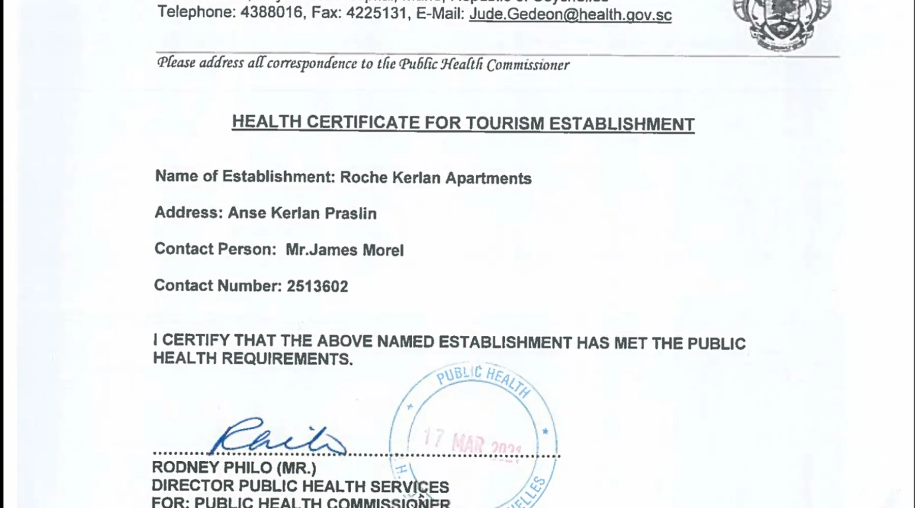 Ideal little semi-detached bungalow on Praslin island, ideally located on the coastal side within 50 metres walk to the sea. Our bungalow offers guests a charming, comfortable and fully equipped self-catering accommodation experience to feel right at home & relax! Book with 100% confidence! We offer a licensed tourism accommodation registered as Roche Kerlan Apartments & are fully approved. Please read about the newly launched Tourism Levy below. The space This one bedroom apartment is called "Aride" named after one of the northernmost granitic islands of Seychelles. It is part of our 4 apartment property where we have 2 one bedroom apartments and 2 two bedroom apartments. Everything is in great condition in the apartment. It has been tastefully decorated to suit everyone and has everything you need for a very comfortable stay during your holiday. There is a large open plan kitchen with dining table and living room area and there is also an outdoor space for you to enjoy cooking up a little BBQ. There is a double bed in the bedroom which is fully equipped with air-conditioning.We can add an extra single foldable bed for a 3rd guest in the living room with fan, or we can add a baby cot in the bedroom. WE OFFER 24 HOUR FREE UNLIMITED WIFI & FREE UNLIMITED LOCAL CALLS in all our apartments for guests. Guest access Guests have access to the entire apartment just to themselves. The apartment is located in a semi-detached building on the ground floor level which has 2 apartments per building, one to the left and one to the right. We are on a small private property and each apartment has it's own private entrance and its own veranda at the front and private outdoor area in the back where you can suntan, have a BBQ etc. Guests have access to parking spaces for 1 car per bungalow on the property. Other things to note TOURISM LICENCE: Please note that the property has a tourism licence under the name Roche Kerlan Apartments and offers certified accommodation to tourists and local guests. TOURISM ENVIRONMENTAL SUSTAINABILITY LEVY 2). Please be advised that there is a new mandatory Tourism Environmental Sustainability Levy/Tax introduced by the Seychelles Government since August 2023. You can contact your embassy for more information or consult the Seychelles Ministry of Tourism website to read about it. It is payable in cash only in Seychelles Rupees and our small licensed accommodation falls under the category which is charged at 25 SCR (Seychelles Rupees) per person per night (Children of ages 0 - 12 yrs old do not pay the levy). We will collect the levy from you once you are here and give you a receipt which you will need to keep with you as you may need to present it at the airport upon your departure from Seychelles. COVID-RELATED TOURISM HEALTH CERTIFICATE: We are pleased to announce that we are fully certified by the Ministry of Health to operate as an approved tourism establishment under the new Covid regulations, so please be assured that you can book with us with 100% confidence for a hassle free arrival and stay. (Please see a copy of our health certificate uploaded in the photos section, thank you.) UPDATED CLEANING POLICY: Please note that we still offer to do the cleaning of your bungalow after every 3 nights and change the towels and bed sheets on those days. If you personally do not wish to have us come into your bungalow for cleaning during your stay and you prefer to do your own cleaning, just let us know and all materials for cleaning will be provided in the bungalow as well as extra bed linen and towels so that you can organise yourselves independently. Just let us know your preference on arrival, thank you!