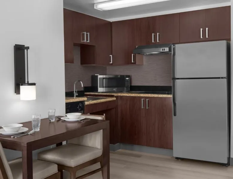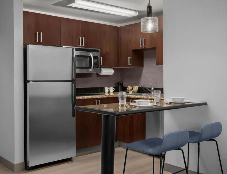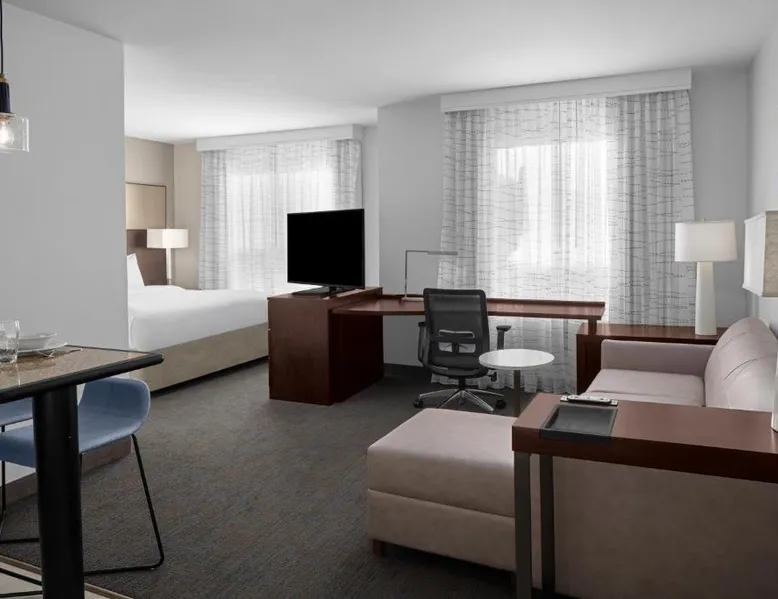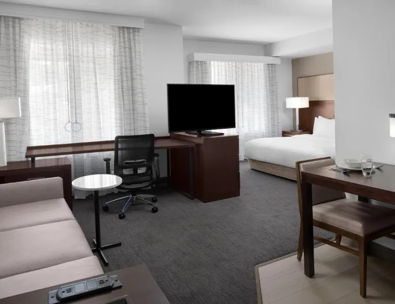 Comfortable Accommodations: Residence Inn by Marriott Santa Clarita Valencia in Santa Clarita offers spacious rooms with air-conditioning, private bathrooms, and fully equipped kitchens. Guests enjoy free WiFi, streaming services, and modern amenities such as a work desk and sofa bed. Leisure Facilities: The hotel features a fitness center, tennis court, outdoor swimming pool, and free bicycles. Additional facilities include a hot tub, 24-hour front desk, business area, and free on-site parking. Convenient Location: Located 17 mi from Hollywood Burbank Airport, the property is near attractions like Nethercutt Museum (9.3 mi) and Universal Studios Hollywood (22 mi). Guests appreciate the room comfort, kitchen, and breakfast provided by the hotel. Boasting a private entrance, this spacious suite also includes 1 bedroom, a seating area and 1 bathroom with a bath or a shower and a hairdryer. In the kitchen, guests will find a refrigerator, a dishwasher, kitchenware and a microwave. This air-conditioned suite consists of a dining area, a flat-screen TV with streaming services a tea and coffee maker and a wardrobe. The unit has 3 beds.