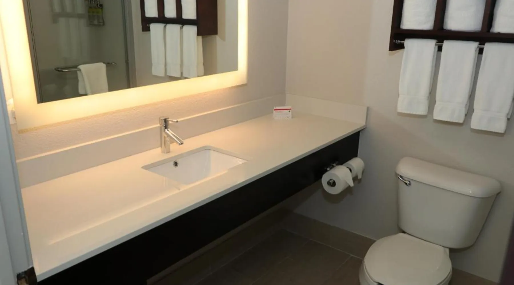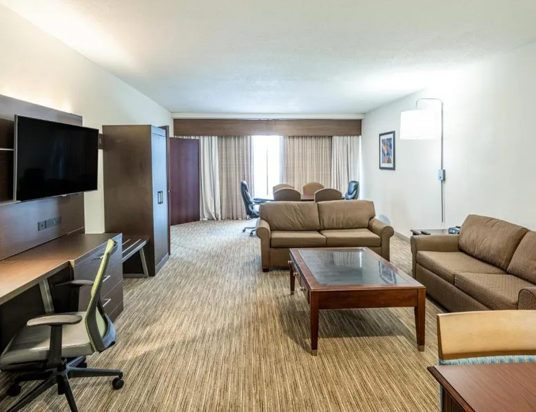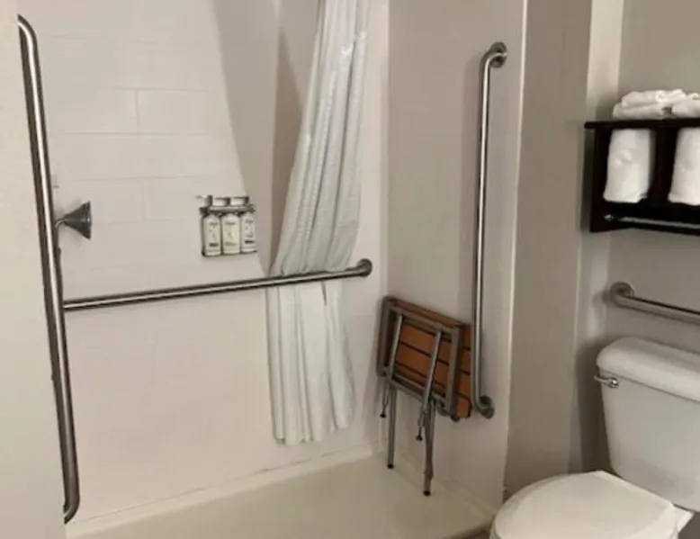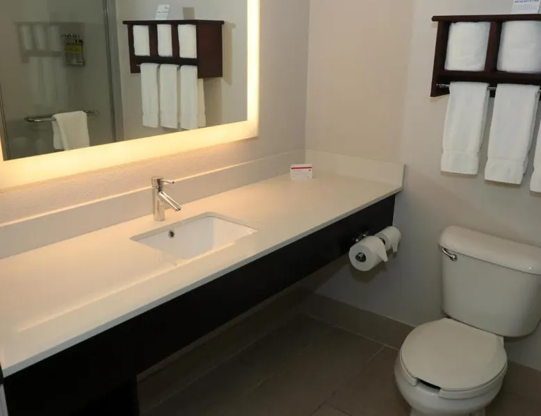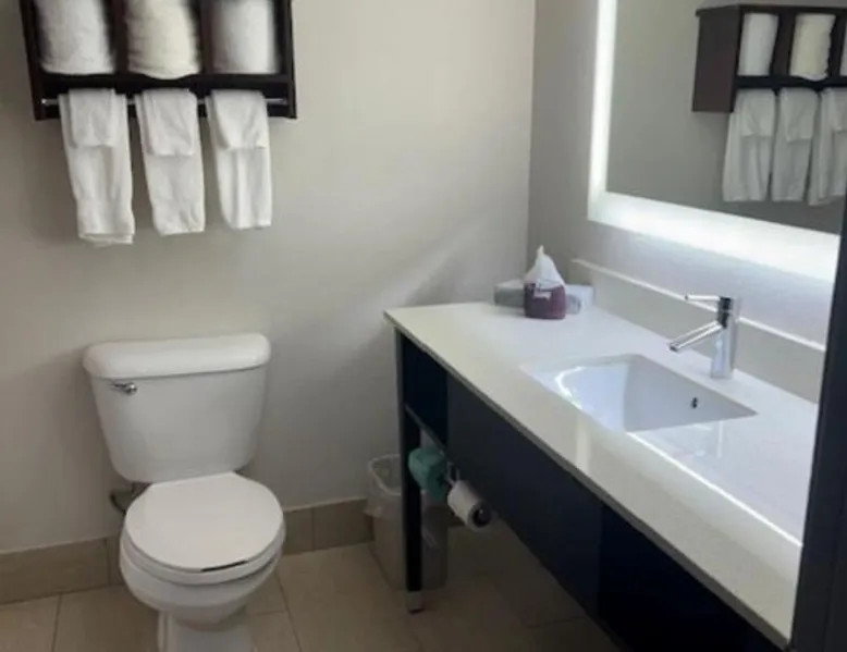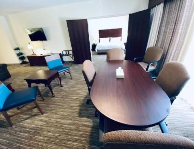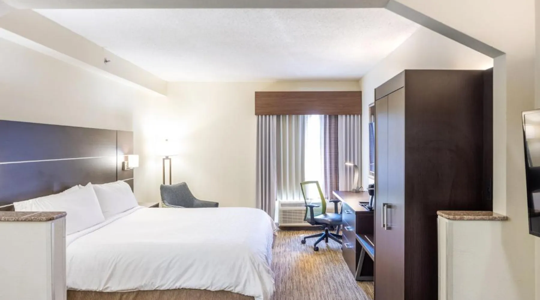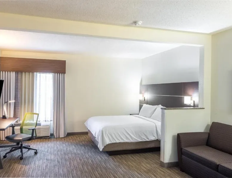 Comfortable Accommodations: Holiday Inn Express Hotel & Suites Fort Payne by IHG in Fort Payne offers rooms with air-conditioning, private bathrooms, and modern amenities. Guests appreciate the room cleanliness and comfort. Leisure Facilities: The hotel features a fitness center, seasonal outdoor swimming pool, and free WiFi. Additional facilities include a lounge, fitness room, elevator, 24-hour front desk, minimarket, business area, outdoor seating area, and luggage storage. Dining Options: A complimentary American buffet breakfast is served daily, including warm dishes, juice, fresh pastries, pancakes, cheese, fruits, and more. Location and Access: Located 61 mi from Chattanooga Metropolitan Airport, the hotel provides free on-site parking. Highly rated for its excellent service and comfortable accommodations. This room features a 50" satellite Smart TV and coffee-making facilities.