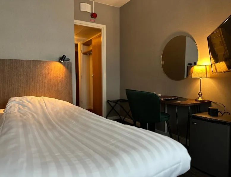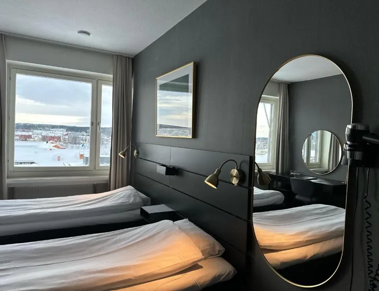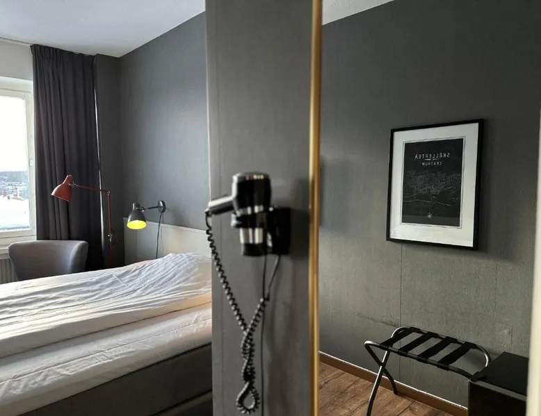 This family-run hotel by Skellefteå’s main square, Möjligheternas Torg, offers free Wi-Fi and rooms with cable TV. Skellefteå Bus Station is just a 3-minute walk away. Hotel Victoria is located on the 6th floor of a large building with various shops and services. Each guest room has a seating area, work desk and private bathroom with shower. Victoria Hotel is located only a 2-minute walk away from Skellefteå’s promenade along the Skelleftea River and 1.2 mi from the Lion Power Bridge. The double room offers a dining area, a wardrobe, as well as a private bathroom boasting a shower and a hairdryer. The double room features a flat-screen TV with streaming services, a washing machine, a private entrance, soundproof walls as well as city views. The unit has 1 bed.