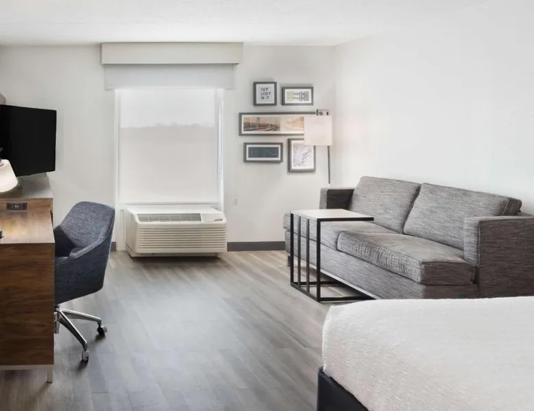 Comfortable Accommodations: Hampton Inn & Suites Lanett/West Point in Lanett offers family rooms with balconies, free WiFi, and amenities such as refrigerators and microwaves. Each room includes a TV, sofa bed, and free toiletries. Leisure Facilities: Guests can enjoy an indoor swimming pool, sun terrace, and fitness room. The property features a 24-hour front desk, minimarket, and outdoor seating area. Dining Experience: A complimentary American buffet breakfast is served daily, including warm dishes, fresh pastries, cheese, and fruits. Convenient Location: Located 38 mi from Columbus Airport, the hotel is near attractions like Auburn University (24 mi) and The Gallery on Railroad (17 mi). Free on-site parking is available. Boasting a balcony, this studio also features a tea and coffee maker and a TV. The unit has 1 bed.
