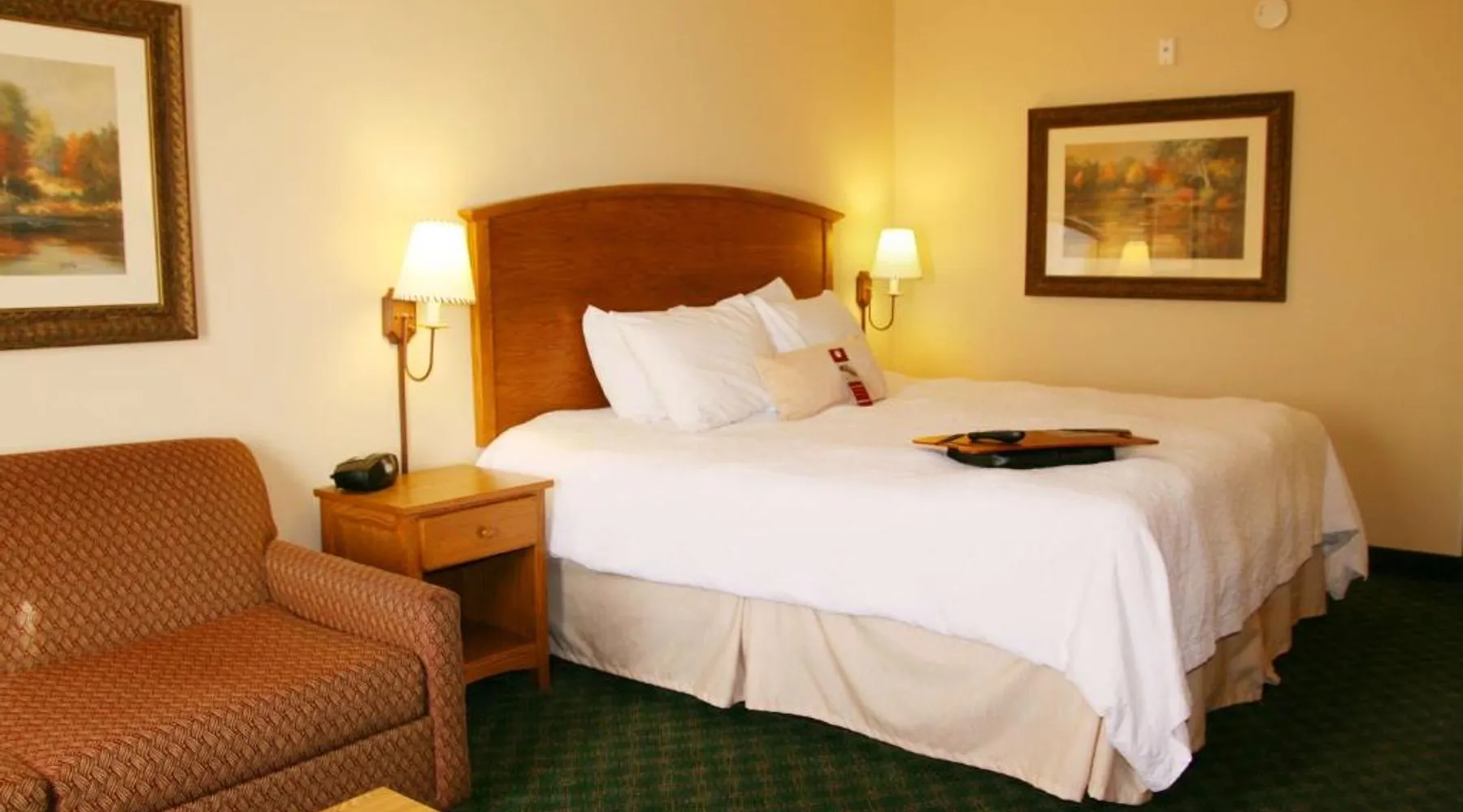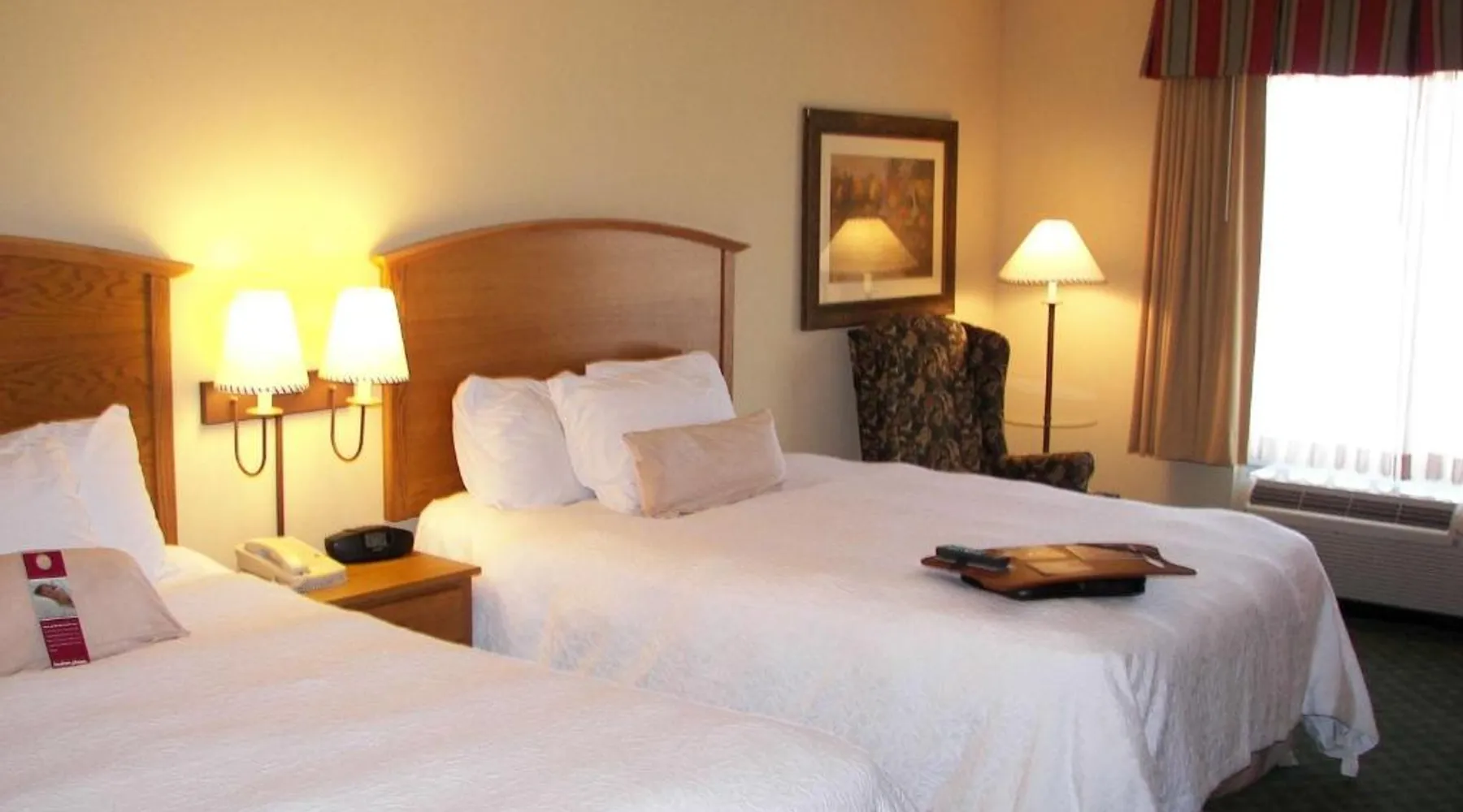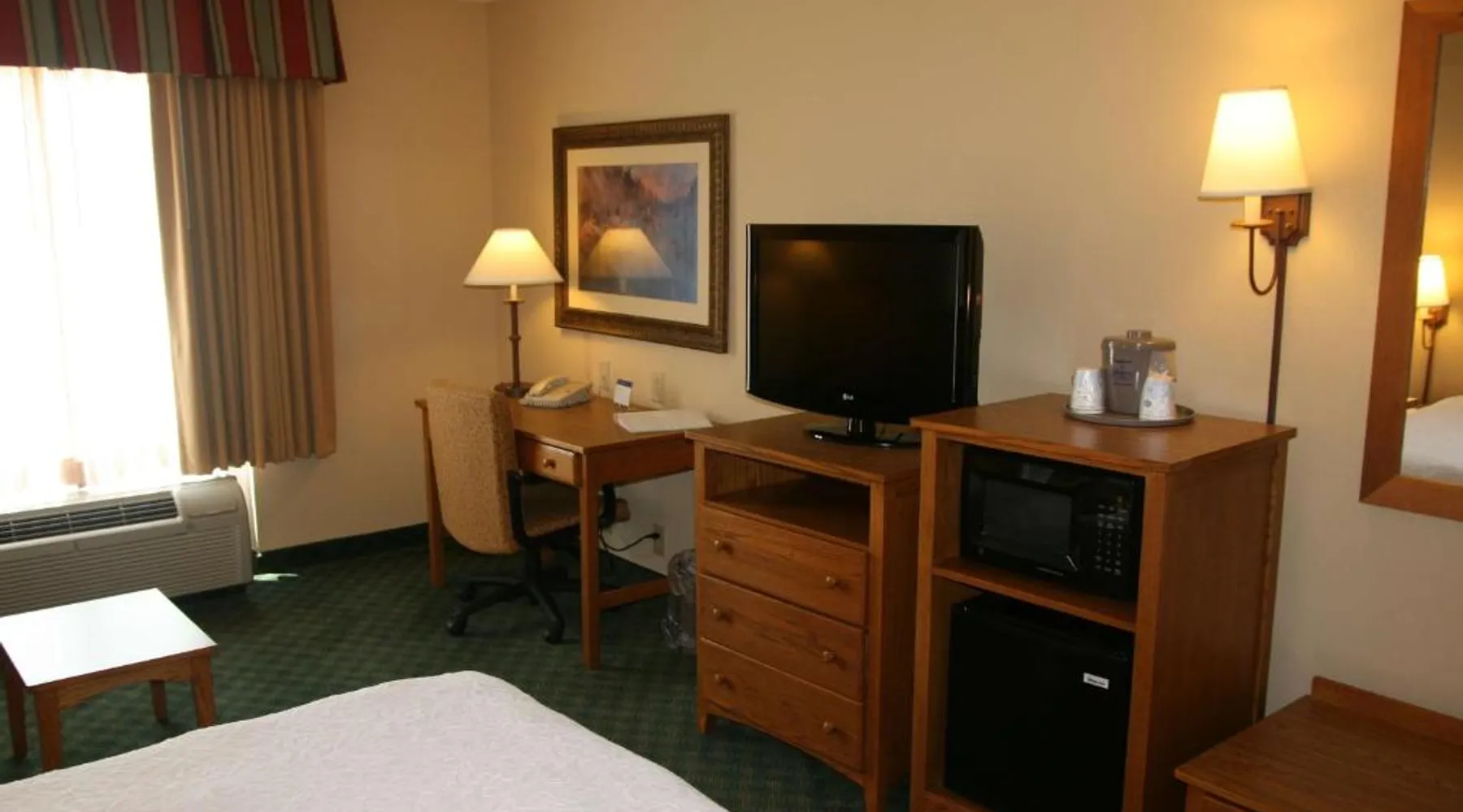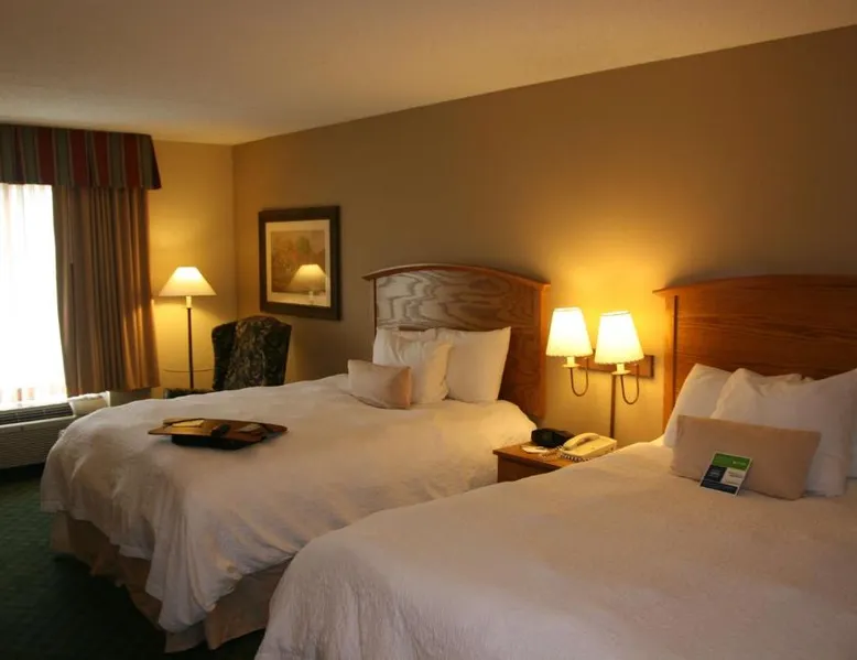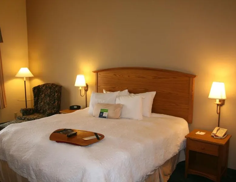 Comfortable Accommodations: Hampton Inn Guntersville in Guntersville offers comfortable rooms with air-conditioning, free WiFi, and modern amenities including a work desk and TV. Leisure Facilities: Guests can enjoy a year-round outdoor swimming pool, a lush garden, and a fitness room. Free on-site parking is available. Breakfast and Dining: A complimentary American buffet breakfast is served daily, featuring fresh pastries, fruits, and juices. Convenient Location: Located 53 mi from Huntsville International Airport, the hotel is highly rated for its convenient location and excellent service. This room offers a microwave, refrigerator, and a 32-inch flat-screen TV with cable.