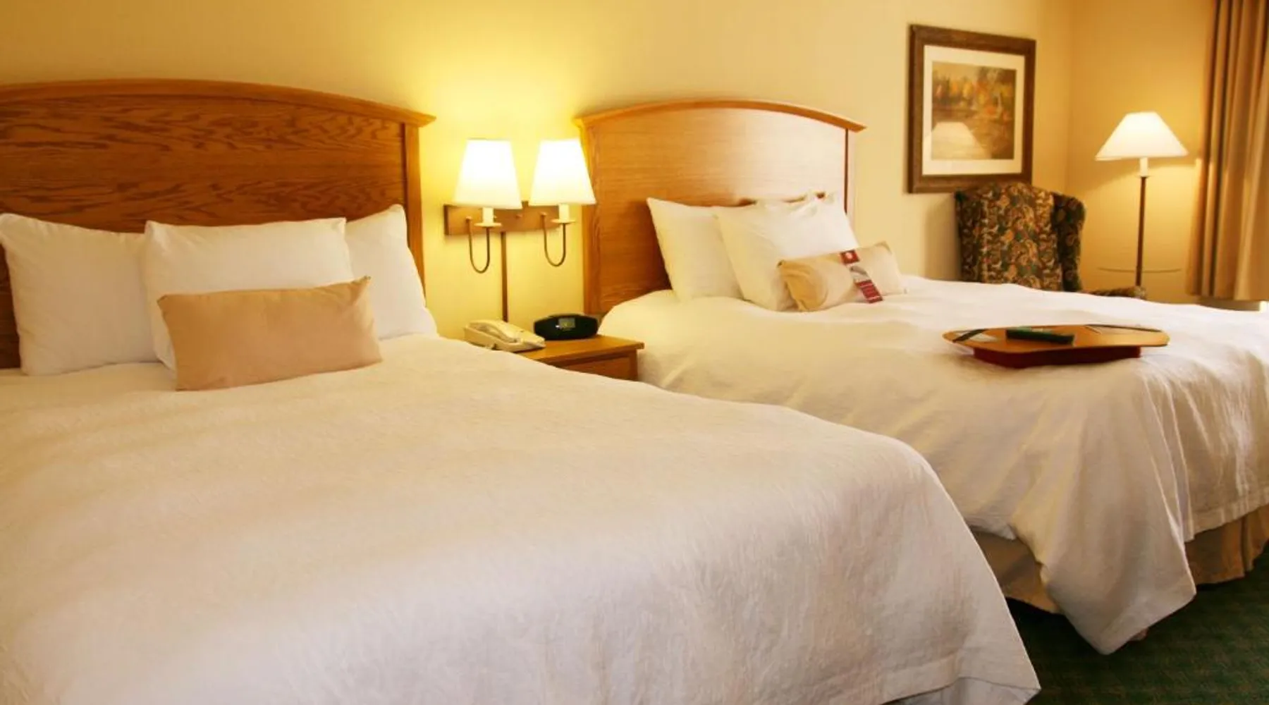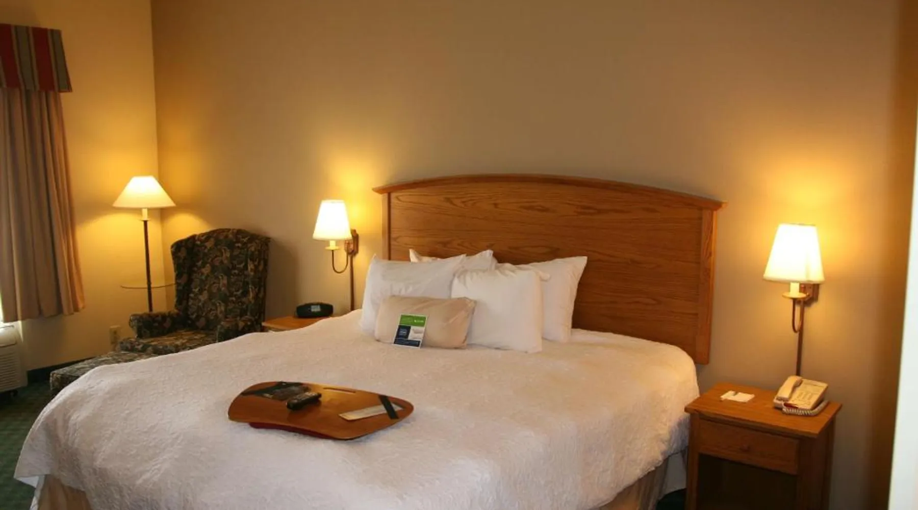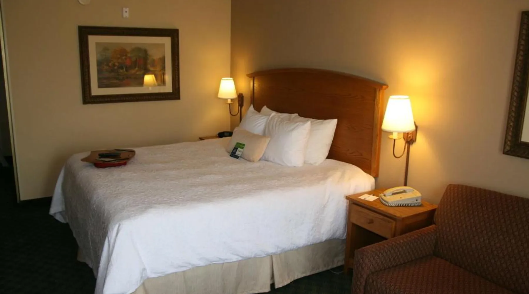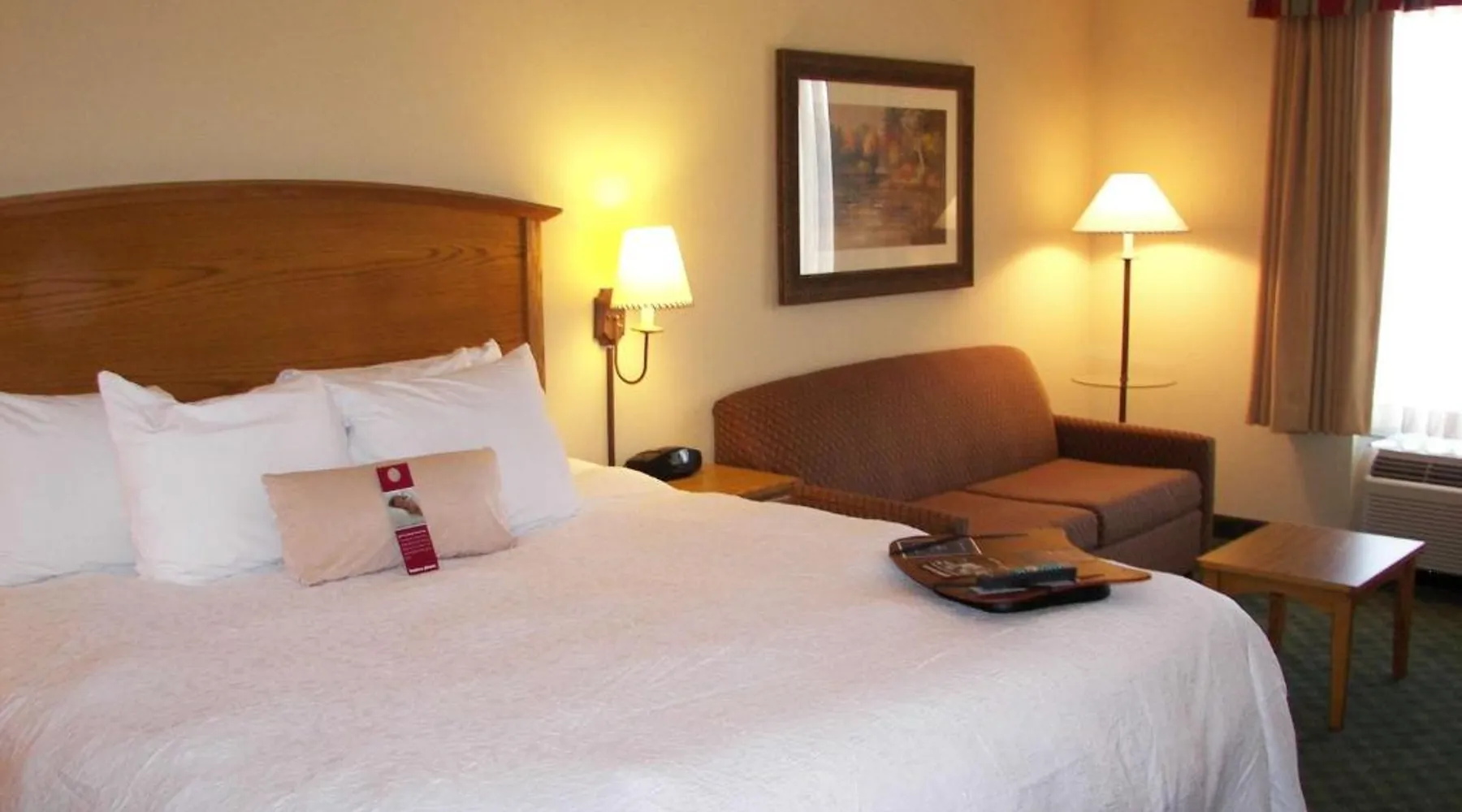 Comfortable Accommodations: Hampton Inn Guntersville in Guntersville offers comfortable rooms with air-conditioning, free WiFi, and modern amenities including a work desk and TV. Leisure Facilities: Guests can enjoy a year-round outdoor swimming pool, a lush garden, and a fitness room. Free on-site parking is available. Breakfast and Dining: A complimentary American buffet breakfast is served daily, featuring fresh pastries, fruits, and juices. Convenient Location: Located 53 mi from Huntsville International Airport, the hotel is highly rated for its convenient location and excellent service. This room offers a microwave, refrigerator, and a 32-inch flat-screen TV with cable.