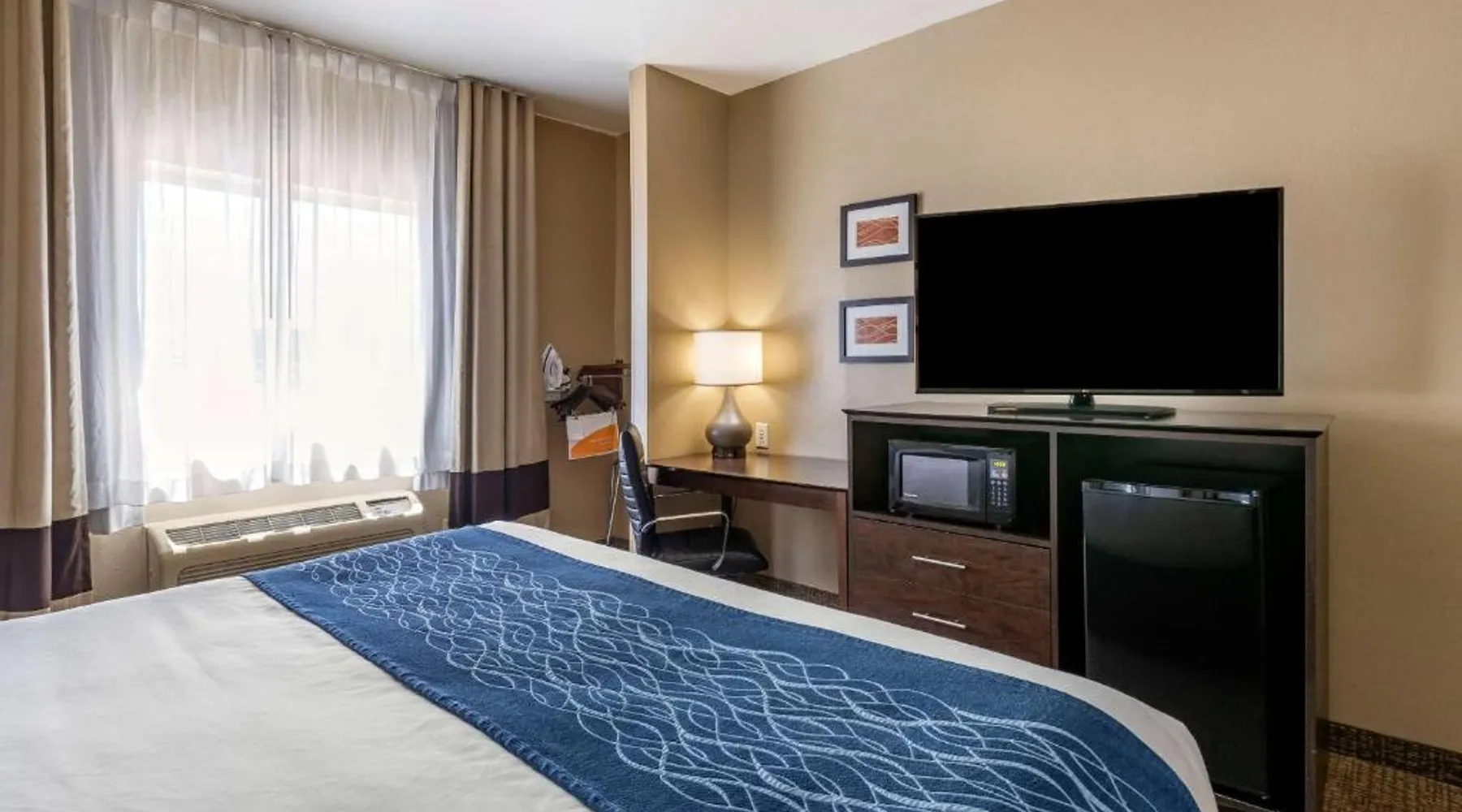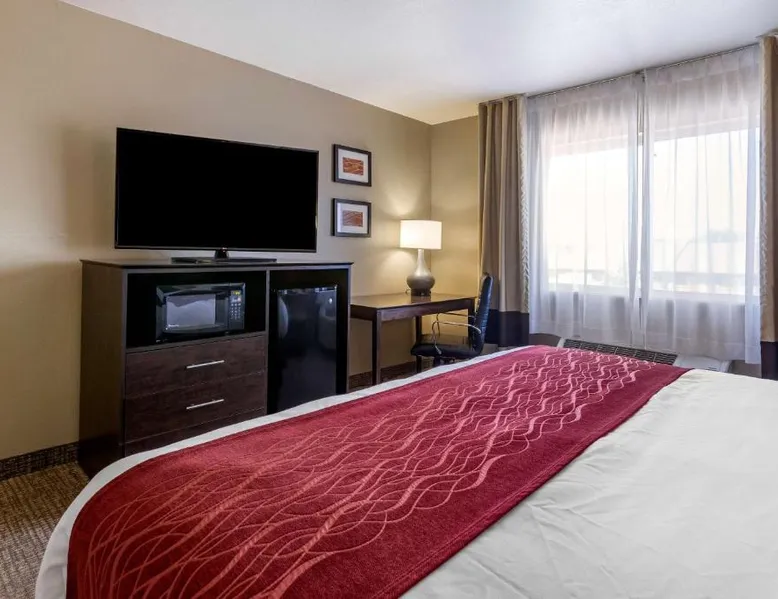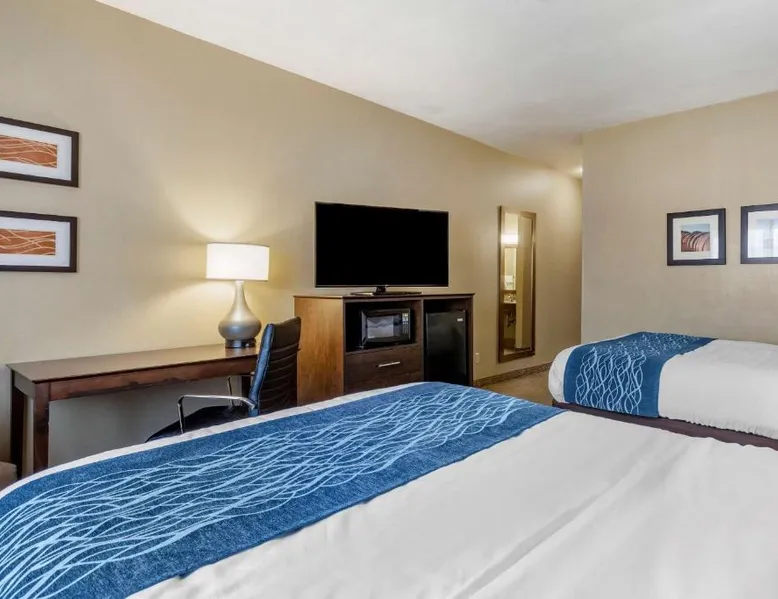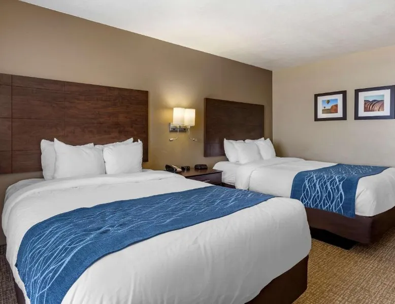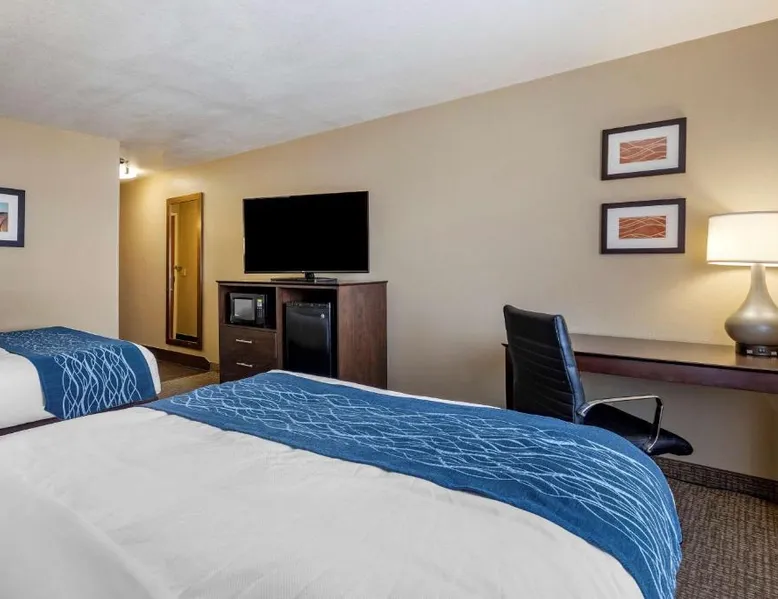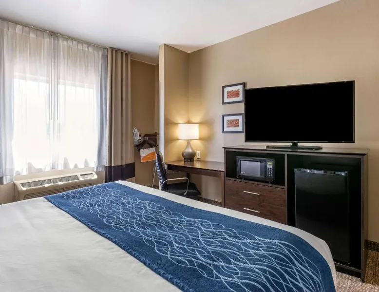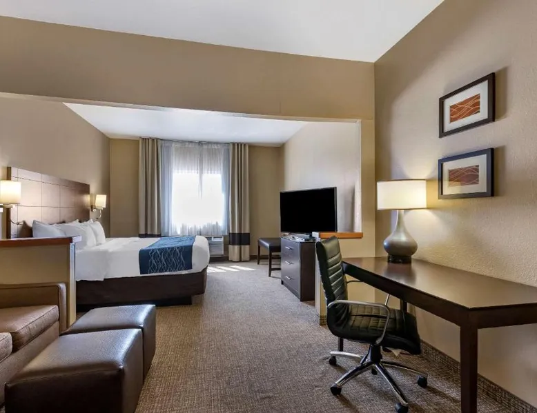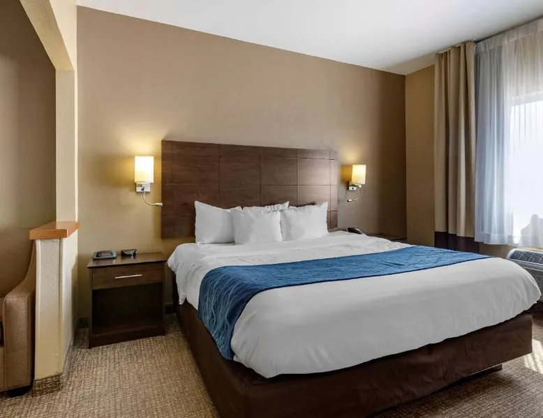 Comfortable Accommodations: Comfort Inn & Suites Waterloo - Cedar Falls in Waterloo offers air-conditioned rooms with private bathrooms, tea and coffee makers, and free WiFi. Each room includes a refrigerator, work desk, and TV. Leisure Facilities: Guests can enjoy an indoor swimming pool and a sofa bed in the seating area. Additional amenities include a microwave, free toiletries, and a wardrobe. Convenient Location: Located 7.5 mi from Waterloo Regional Airport, the hotel is a 5-minute walk from Crossroads Mall. Nearby attractions include Gallagher Bluedorn Performing Arts Center (9.3 mi) and Built Then Burnt (8.1 mi). Guest Services: The property staff provide excellent service support, and a complimentary breakfast is provided by the hotel. Offering free toiletries, this double room includes a private bathroom with a bath or a shower and a hairdryer. The spacious double room offers air conditioning, a private entrance, a tea and coffee maker, a wardrobe, as well as a flat-screen TV with satellite channels. The unit offers 1 bed.