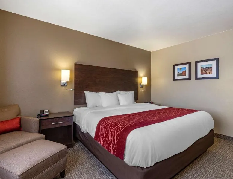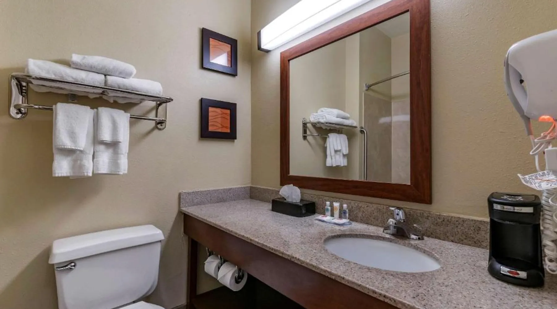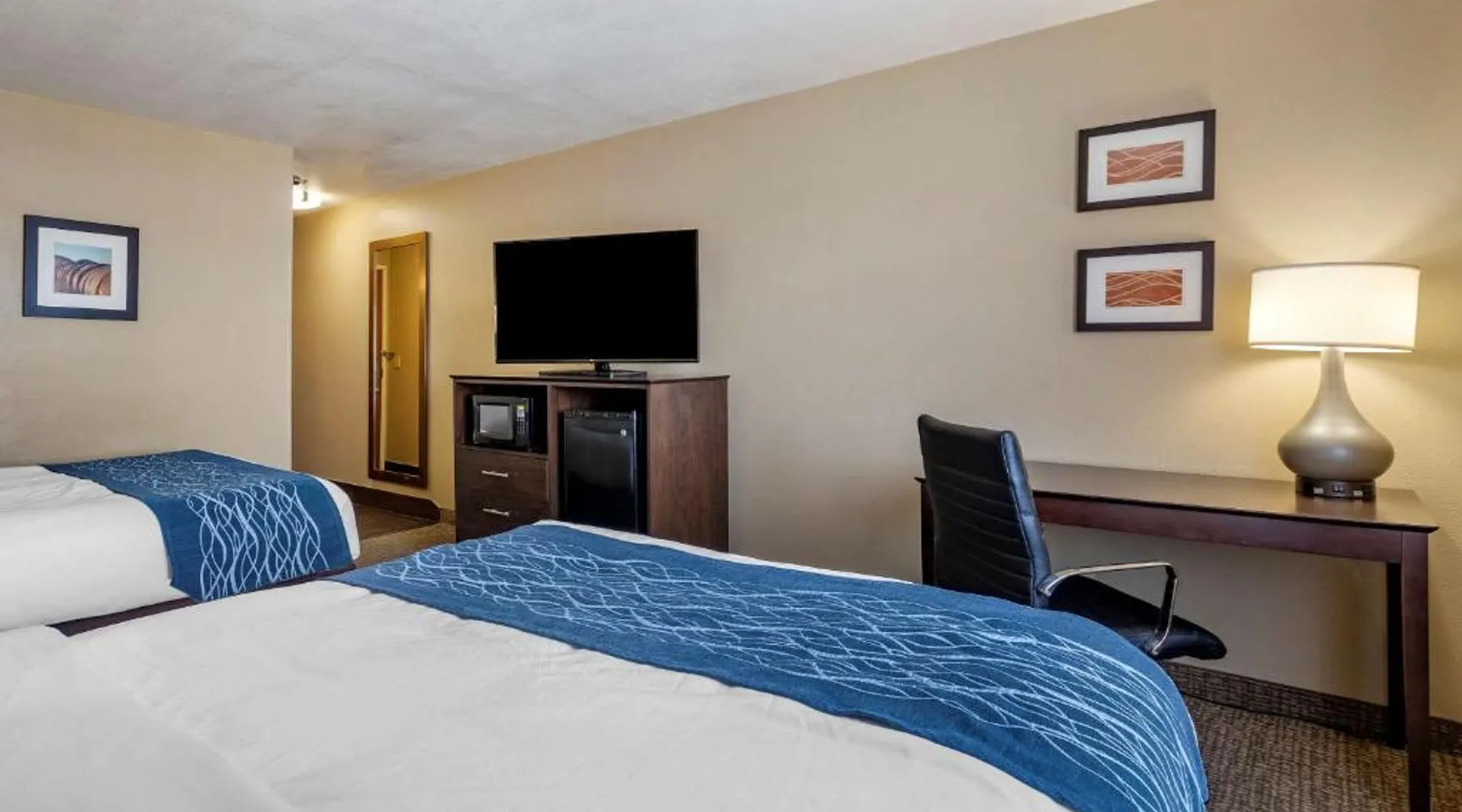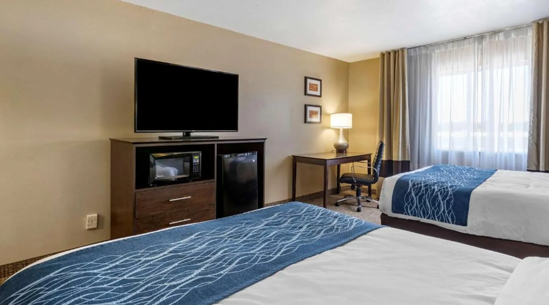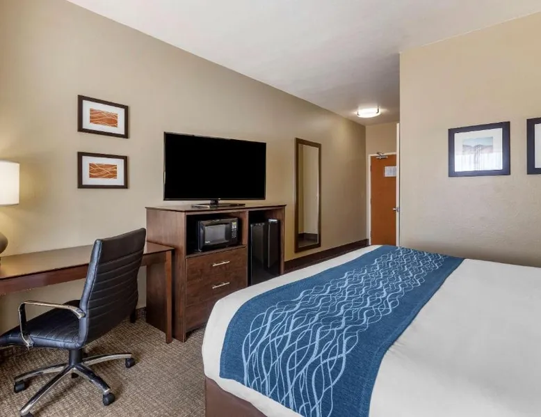 Comfortable Accommodations: Comfort Inn & Suites Waterloo - Cedar Falls in Waterloo offers air-conditioned rooms with private bathrooms, tea and coffee makers, and free WiFi. Each room includes a refrigerator, work desk, and TV. Leisure Facilities: Guests can enjoy an indoor swimming pool and a sofa bed in the seating area. Additional amenities include a microwave, free toiletries, and a wardrobe. Convenient Location: Located 7.5 mi from Waterloo Regional Airport, the hotel is a 5-minute walk from Crossroads Mall. Nearby attractions include Gallagher Bluedorn Performing Arts Center (9.3 mi) and Built Then Burnt (8.1 mi). Guest Services: The property staff provide excellent service support, and a complimentary breakfast is provided by the hotel. Offering free toiletries, this double room includes a private bathroom with a bath or a shower and a hairdryer. The spacious double room offers air conditioning, a private entrance, a tea and coffee maker, a wardrobe, as well as a flat-screen TV with satellite channels. The unit offers 1 bed.