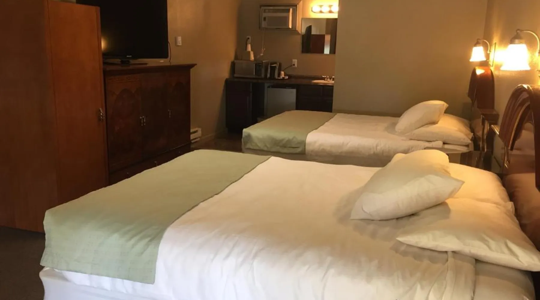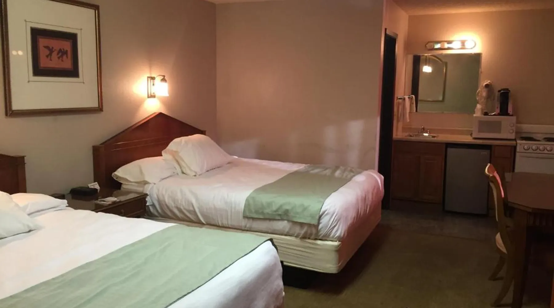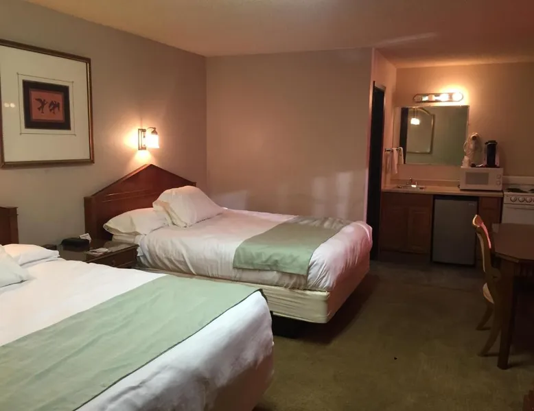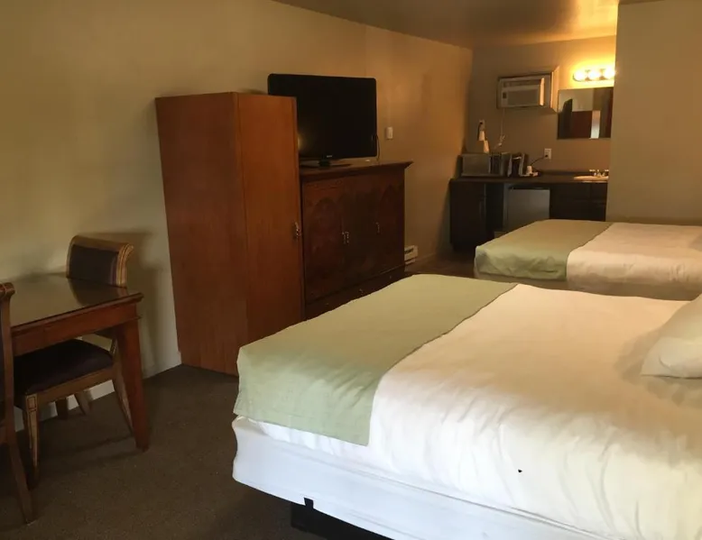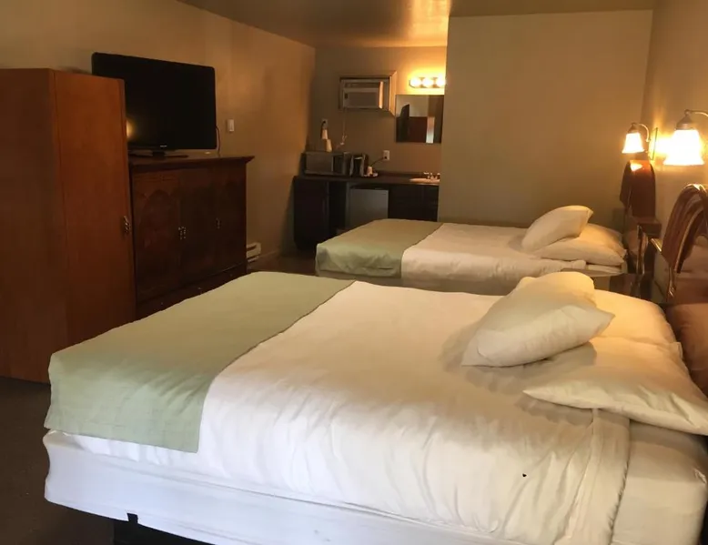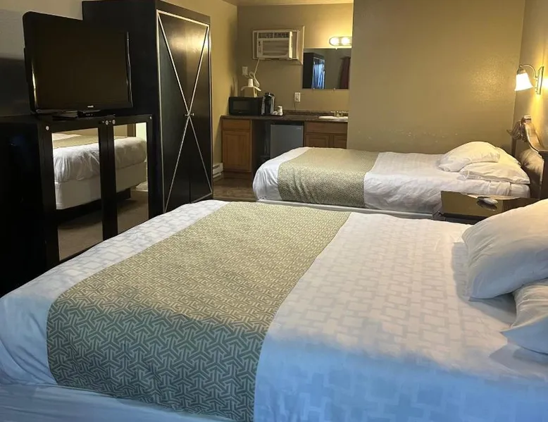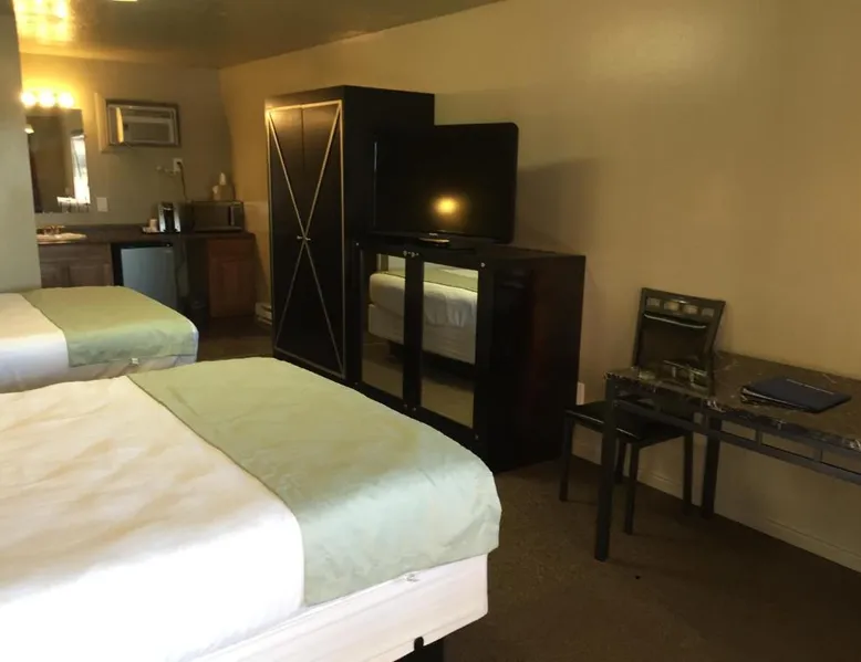 Comfortable Accommodations: Gateway Inn in Lyman offers family rooms with air-conditioning, private bathrooms, and free WiFi. Each room includes a kitchenette with a coffee machine, refrigerator, and microwave. Convenient Facilities: Guests benefit from private and express check-in and check-out services, daily housekeeping, and free on-site parking. Additional amenities include a work desk, TV, and free toiletries. Guest Satisfaction: Visitors appreciate the room comfort, attentive staff, and comfortable beds. The property ensures a pleasant stay with its excellent service support. Location and Access: Located 75 mi from Rock Springs County Airport, Gateway Inn provides easy access to local attractions. The spacious double room features air conditioning, a coffee machine, as well as a private bathroom boasting a bath and a shower. Meals can be prepared in the well-fitted kitchenette, which features a stovetop, a refrigerator, kitchenware and an oven. The double room provides a flat-screen TV with satellite channels, a wardrobe, a carpeted floor and heating. The unit has 2 beds.