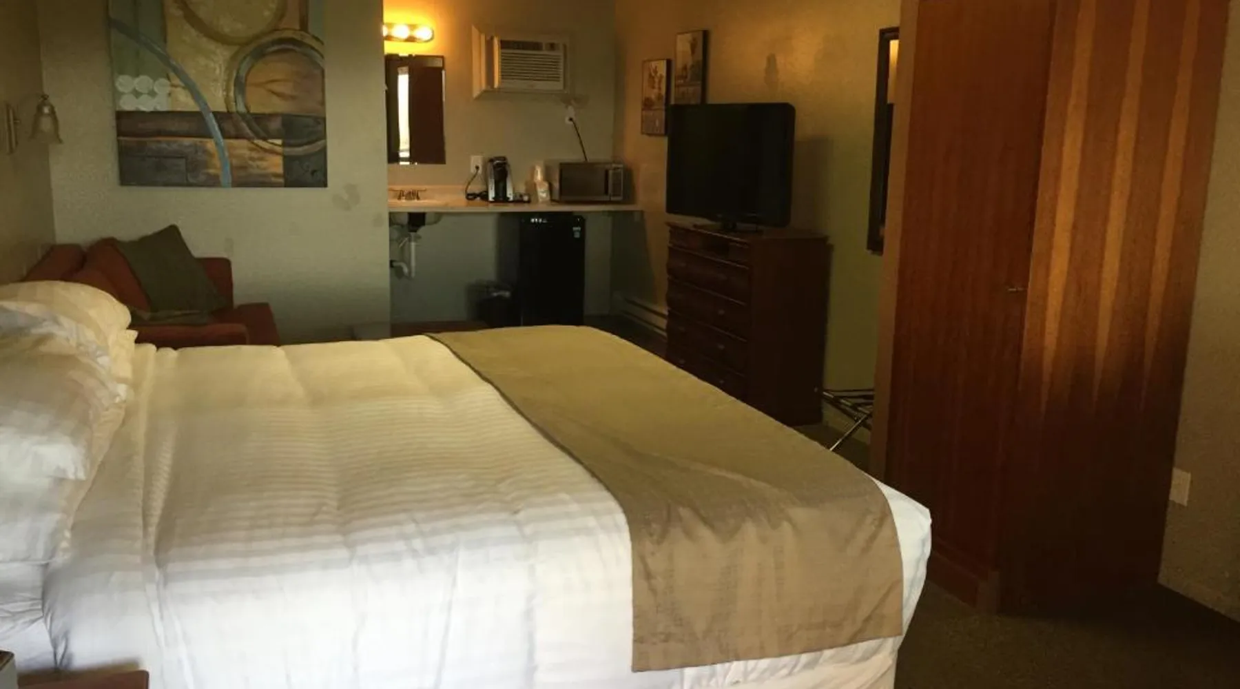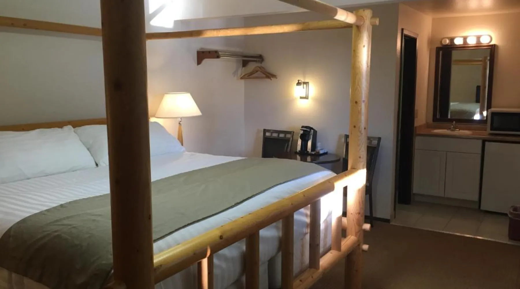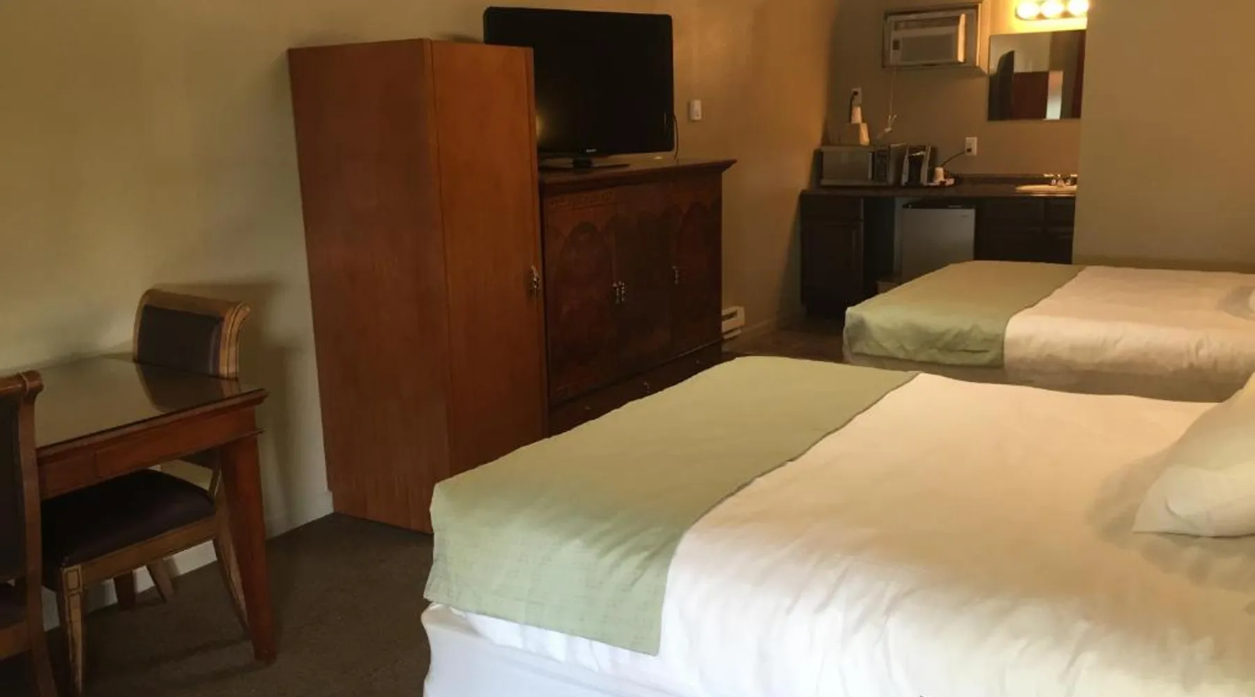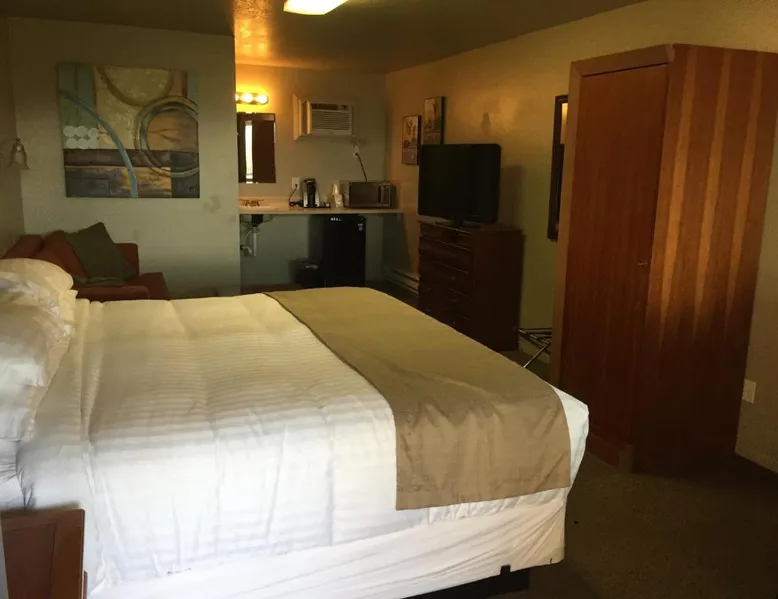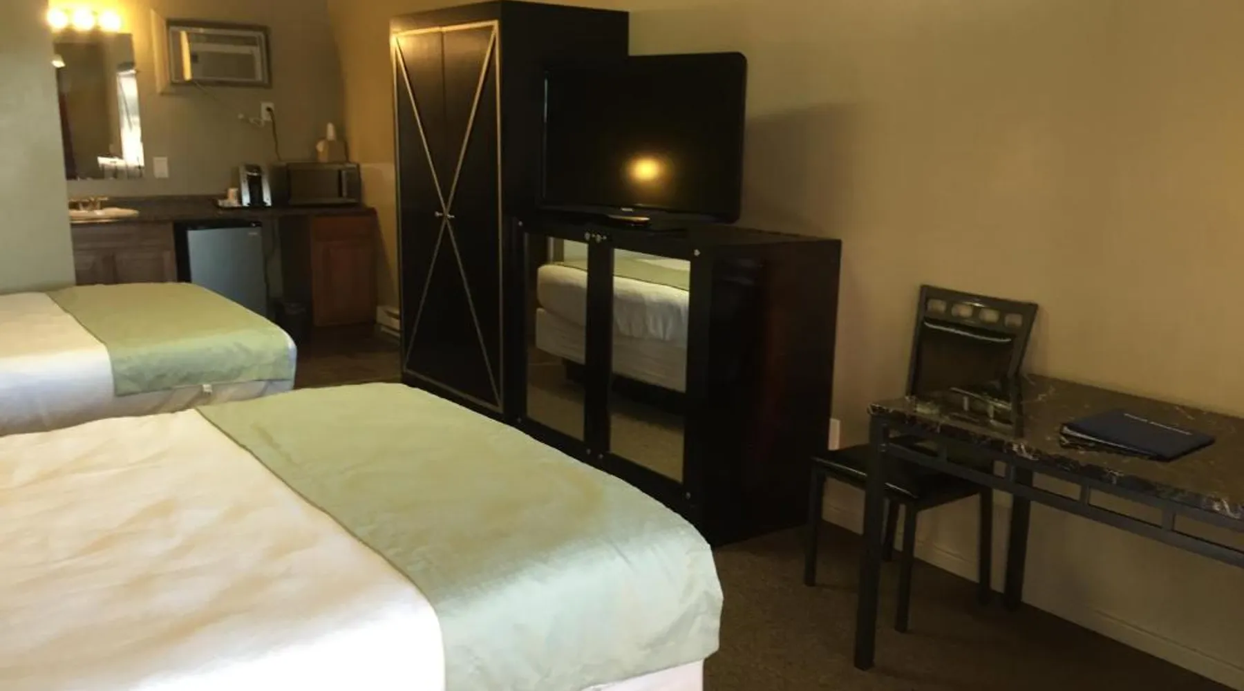 Comfortable Accommodations: Gateway Inn in Lyman offers family rooms with air-conditioning, private bathrooms, and free WiFi. Each room includes a kitchenette with a coffee machine, refrigerator, and microwave. Convenient Facilities: Guests benefit from private and express check-in and check-out services, daily housekeeping, and free on-site parking. Additional amenities include a work desk, TV, and free toiletries. Guest Satisfaction: Visitors appreciate the room comfort, attentive staff, and comfortable beds. The property ensures a pleasant stay with its excellent service support. Location and Access: Located 75 mi from Rock Springs County Airport, Gateway Inn provides easy access to local attractions. The spacious double room features air conditioning, a coffee machine, as well as a private bathroom boasting a bath and a shower. Meals can be prepared in the well-fitted kitchenette, which features a stovetop, a refrigerator, kitchenware and an oven. The double room provides a flat-screen TV with satellite channels, a wardrobe, a carpeted floor and heating. The unit has 2 beds.