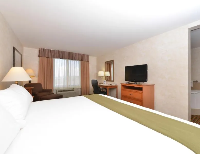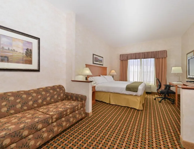 Comfortable Accommodations: Holiday Inn Express Rawlins by IHG in Rawlins offers comfortable rooms with air-conditioning, private bathrooms, and modern amenities. Each room includes a tea and coffee maker, hairdryer, refrigerator, work desk, seating area, free toiletries, microwave, bath or shower, carpeted floors, and a TV. Leisure Facilities: Guests can enjoy an indoor swimming pool, fitness center, hot tub, and spa bath. The hotel provides a elevator, 24-hour front desk, daily housekeeping service, and a business area. Free on-site parking is available. Guest Services: The property offers a highly rated breakfast, room cleanliness, and comfort. Additional services include a 24-hour front desk, daily housekeeping, and a business area. Location and Access: Located 92 mi from Laramie Regional Airport, the hotel is praised for its excellent breakfast, room cleanliness, and comfort. This modern room comes with a cable TV, a microwave, small refrigerator, and a tea/coffee maker. Ironing facilities, a seating area, and a private bathroom with a bath or shower and free toiletries are also included.