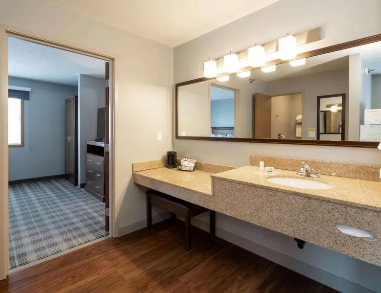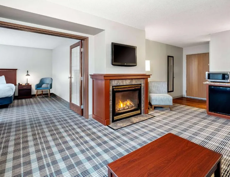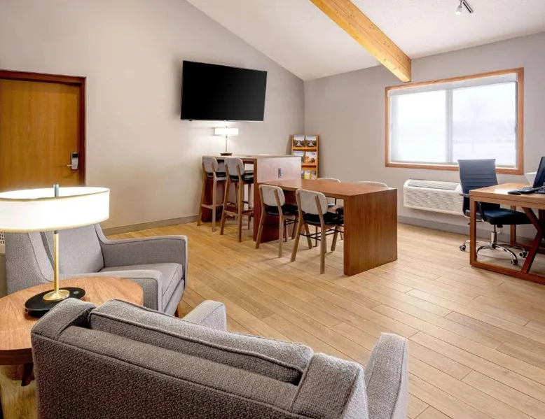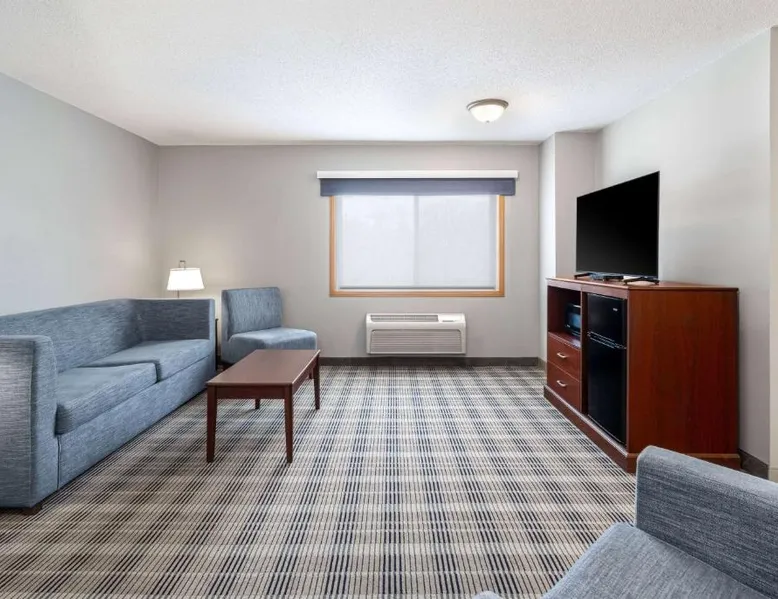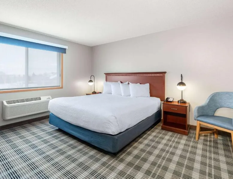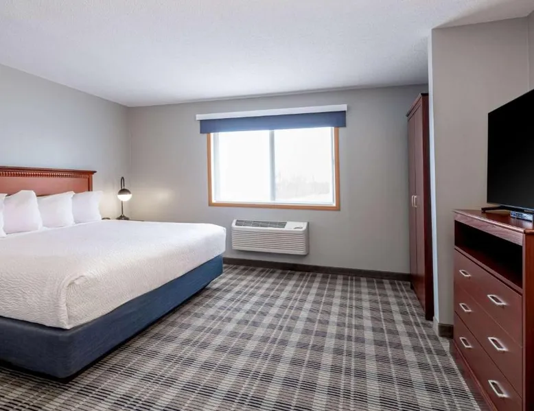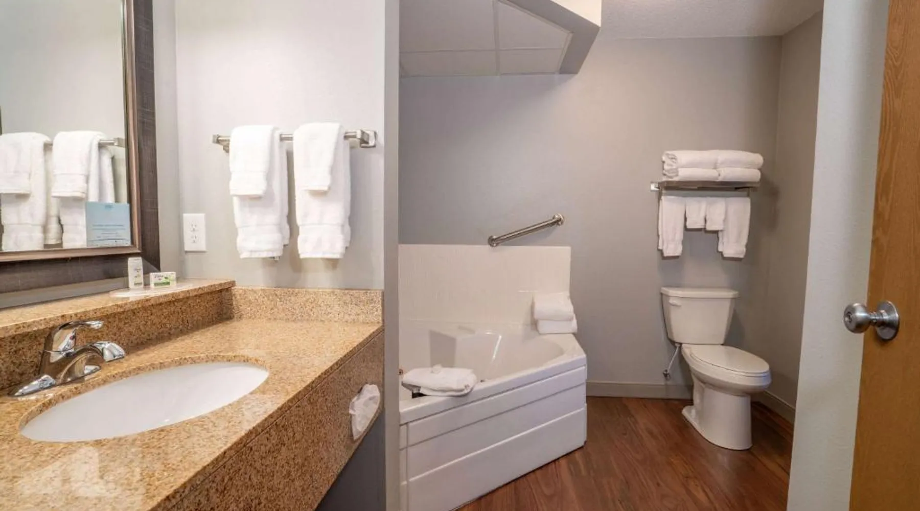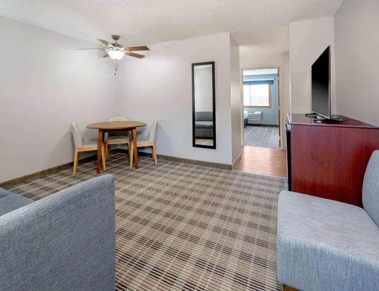 Comfortable Accommodations: AmericInn by Wyndham Valley City Conference Center in Valley City offers family rooms with air-conditioning, private bathrooms, and modern amenities. Each room includes a work desk, free toiletries, and a TV. Exceptional Facilities: Guests can enjoy a sauna, fitness center, indoor swimming pool, and free WiFi. Additional facilities include a hot tub, outdoor fireplace, and a lounge. Dining Experience: The modern restaurant serves American cuisine with vegetarian and gluten-free options. Breakfast includes warm dishes, fresh pastries, and a variety of beverages. Convenient Location: Located 34 mi from Jamestown Regional Airport, the hotel provides free on-site private parking. Nearby attractions include the Valley City Museum and the North Dakota State Fairgrounds. The air-conditioned suite features 1 bedroom and 1 bathroom with a shower and a hairdryer. This wheelchair accessible suite has a tea and coffee maker, a seating area with a flat-screen TV and a toilet with grab rails. The unit offers 1 bed.