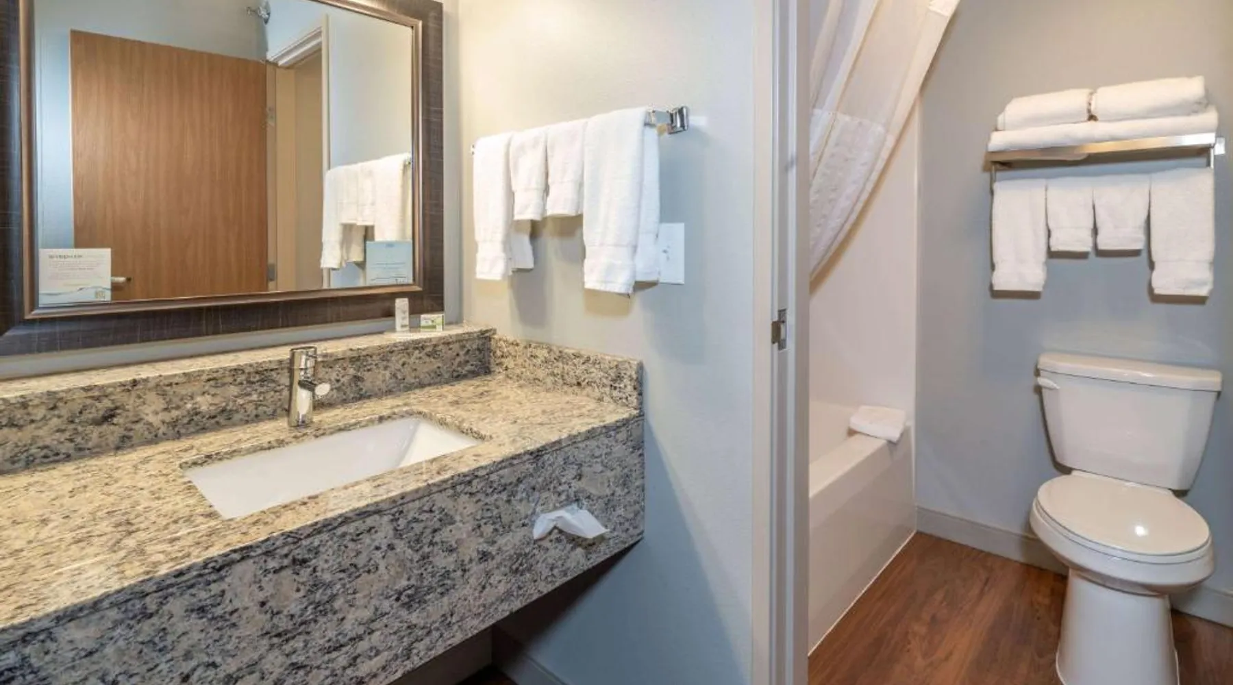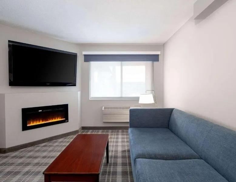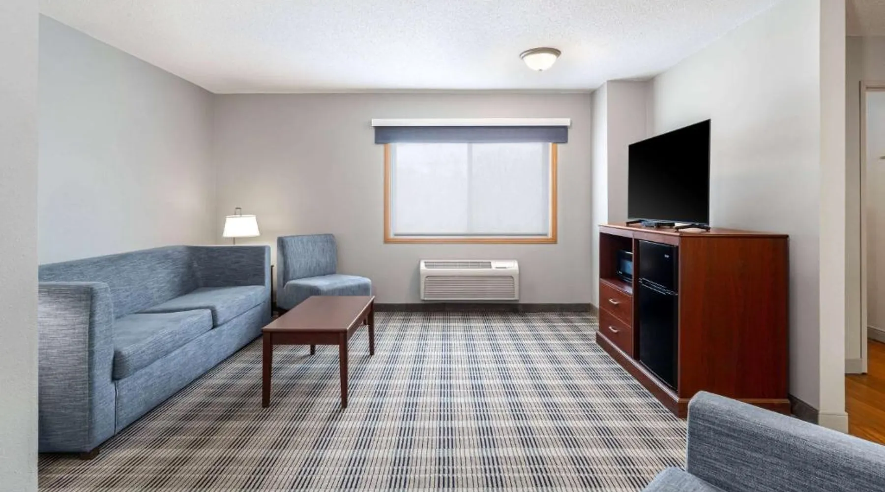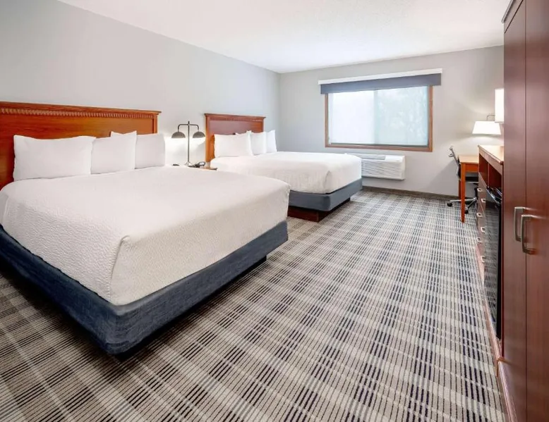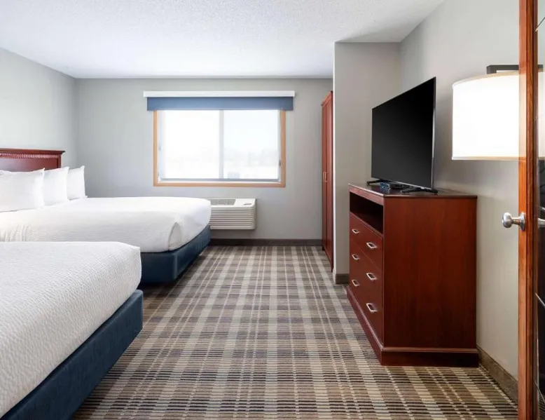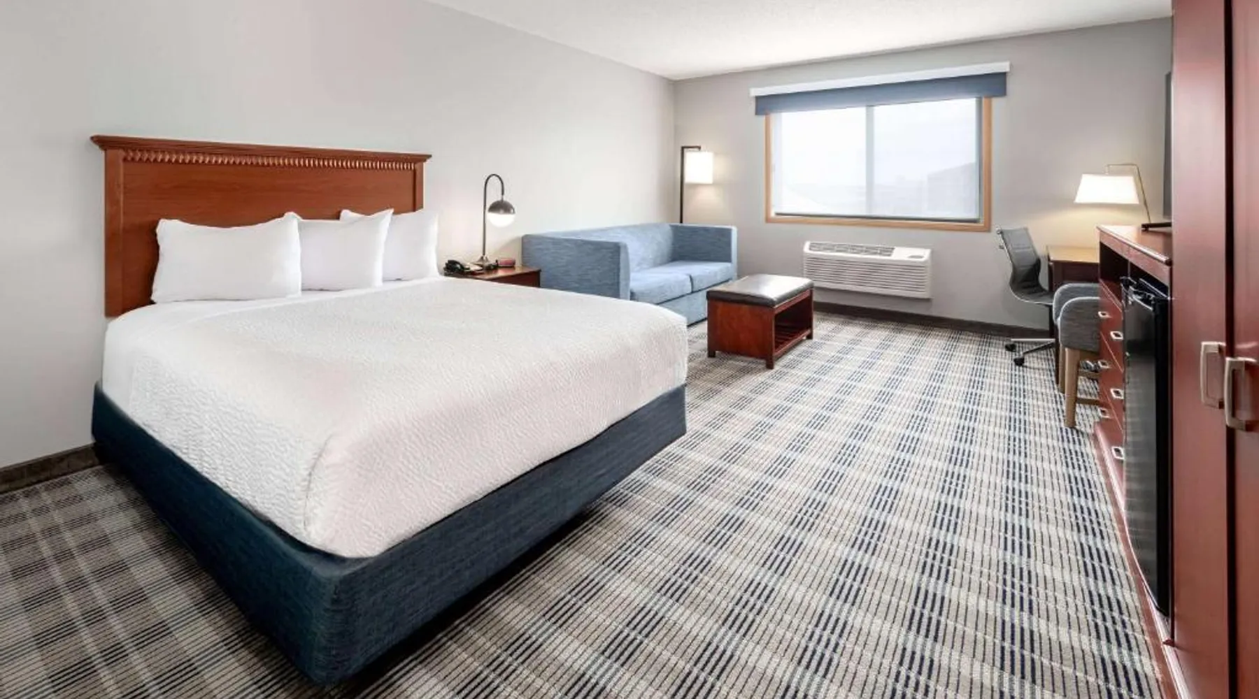 Comfortable Accommodations: AmericInn by Wyndham Valley City Conference Center in Valley City offers family rooms with air-conditioning, private bathrooms, and modern amenities. Each room includes a work desk, free toiletries, and a TV. Exceptional Facilities: Guests can enjoy a sauna, fitness center, indoor swimming pool, and free WiFi. Additional facilities include a hot tub, outdoor fireplace, and a lounge. Dining Experience: The modern restaurant serves American cuisine with vegetarian and gluten-free options. Breakfast includes warm dishes, fresh pastries, and a variety of beverages. Convenient Location: Located 34 mi from Jamestown Regional Airport, the hotel provides free on-site private parking. Nearby attractions include the Valley City Museum and the North Dakota State Fairgrounds. The air-conditioned suite features 1 bedroom and 1 bathroom with a shower and a hairdryer. This wheelchair accessible suite has a tea and coffee maker, a seating area with a flat-screen TV and a toilet with grab rails. The unit offers 1 bed.