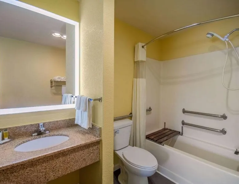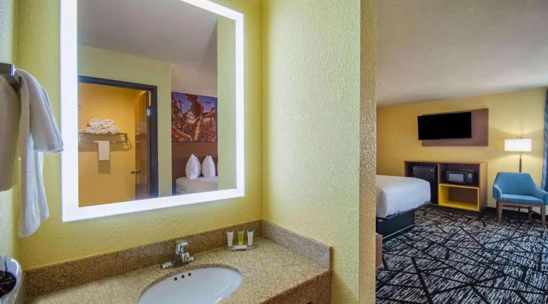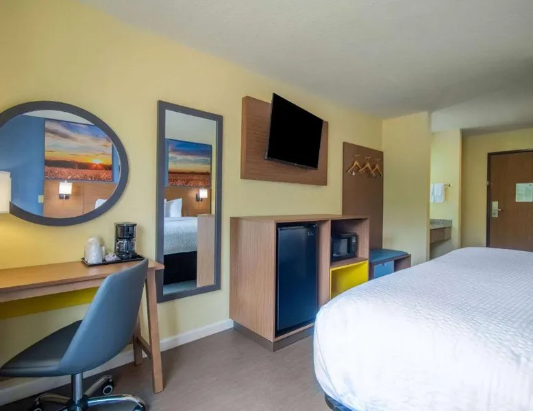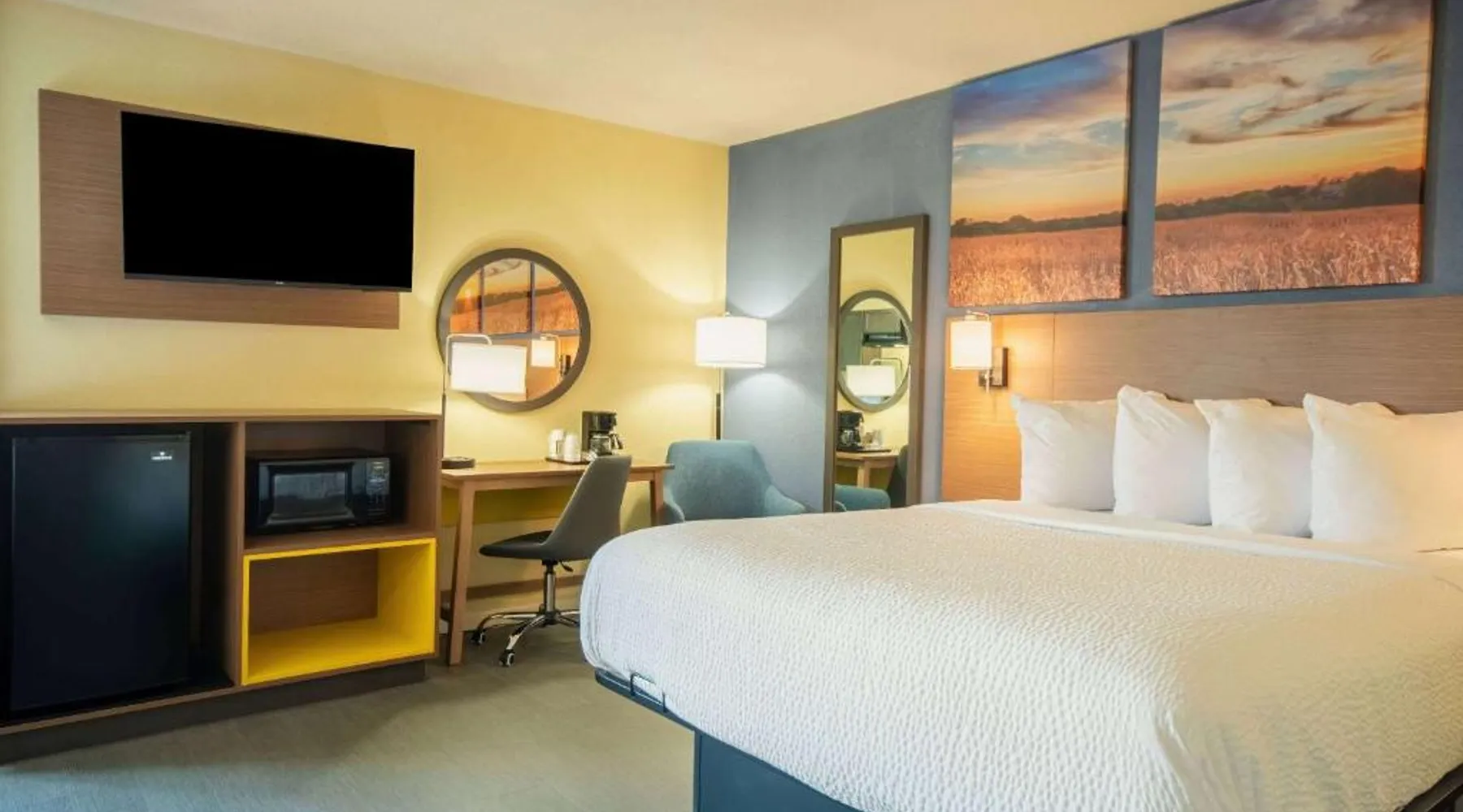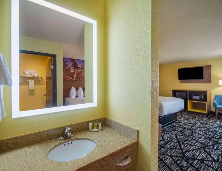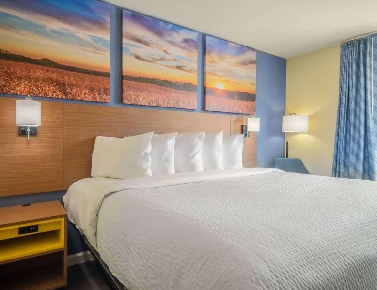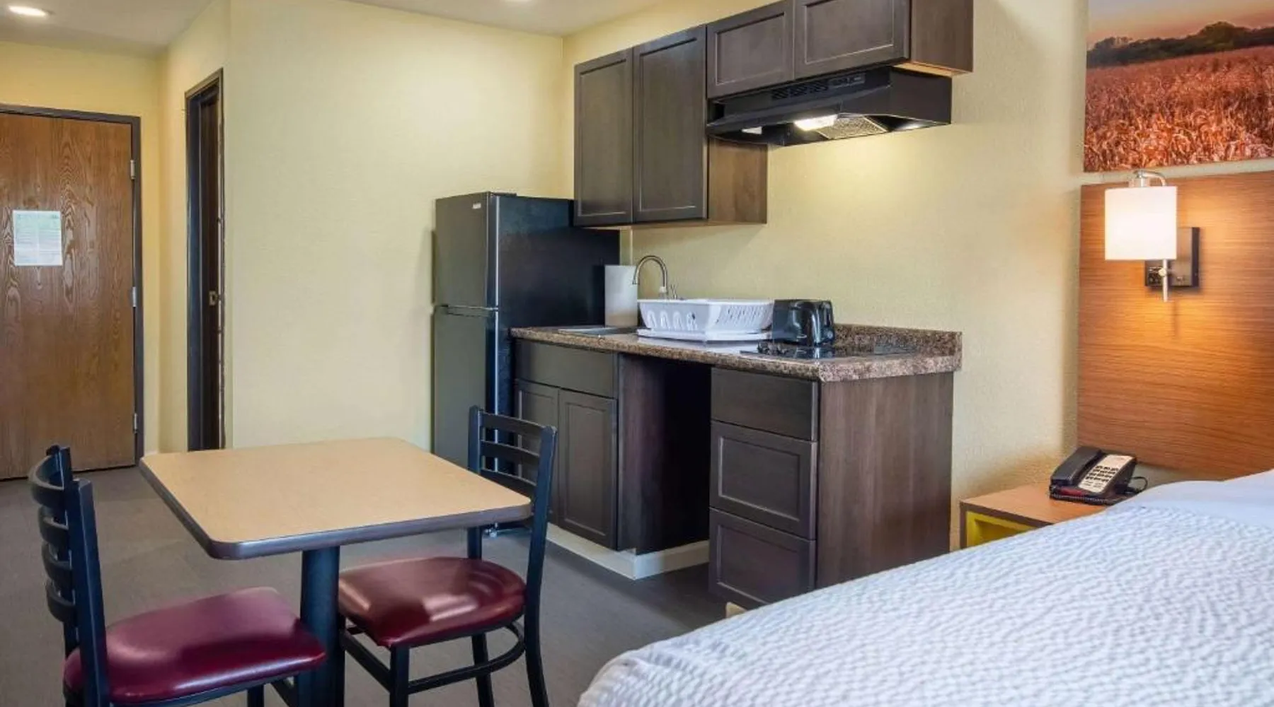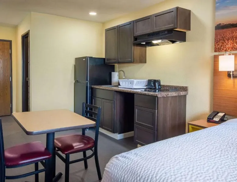 Comfortable Accommodations: Rooms feature air-conditioning, private bathrooms, hairdryers, refrigerators, microwaves, and TVs. Additional amenities include kitchenettes, baths, tea and coffee makers, work desks, and free toiletries. Facilities and Services: Guests can enjoy a fitness center and indoor swimming pool. The hotel offers a 24-hour front desk, daily housekeeping, family rooms, bicycle parking, express check-in and check-out, and luggage storage. Free on-site parking is available. Dining Options: A continental breakfast is served with juice, fresh pastries, cheese, and fruits. Location and Attractions: Located in Evansdale, the hotel is 9.9 mi from Waterloo Regional Airport and 14 mi from Gallagher Bluedorn Performing Arts Center. Guests appreciate the room cleanliness, attentive staff, and quality breakfast. This air-conditioned family room is consisted of a flat-screen TV with cable channels and a private bathroom. The unit has 2 beds.