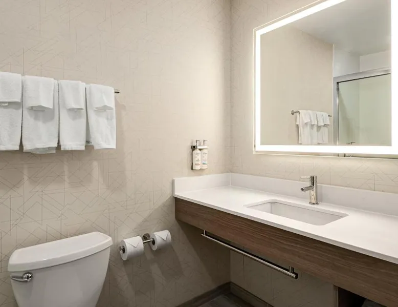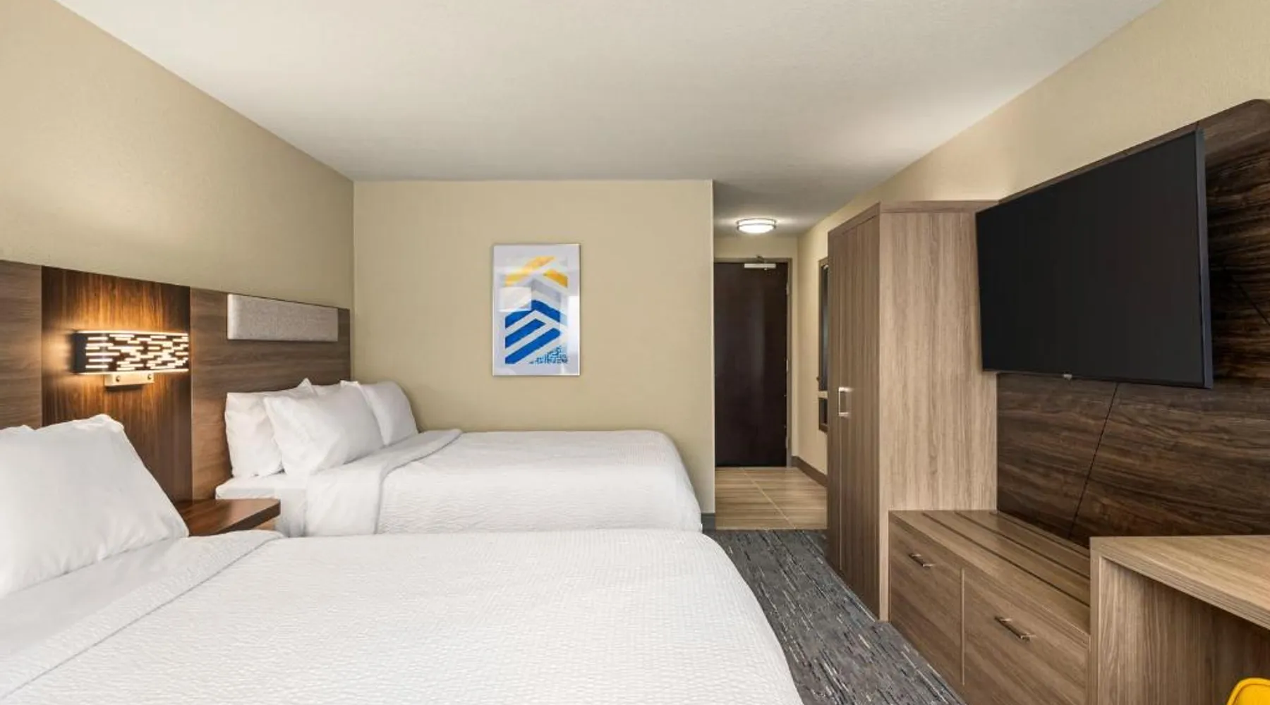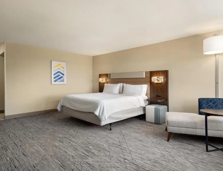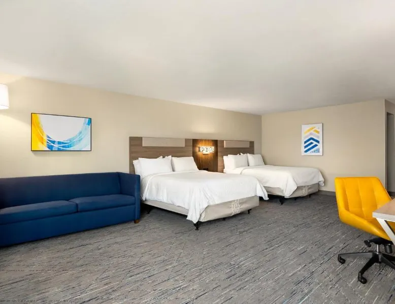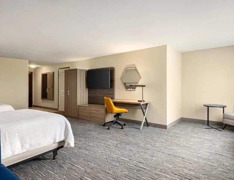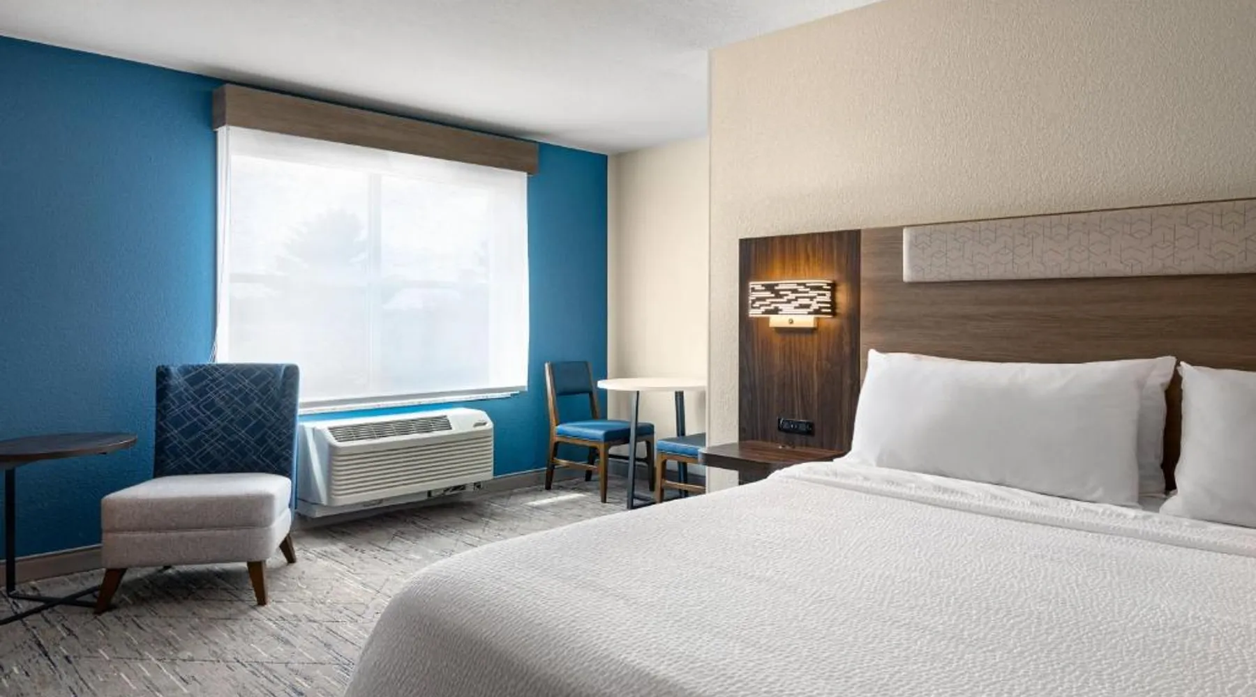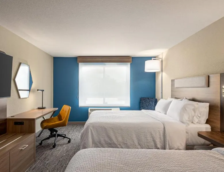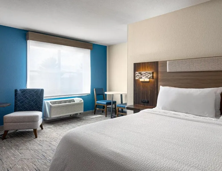 Comfortable Accommodations: Holiday Inn Express Richmond by IHG in Richmond offers air-conditioned rooms with private bathrooms, tea and coffee makers, and free WiFi. Each room includes a work desk, TV, and wardrobe, ensuring a pleasant stay. Facilities and Services: Guests can enjoy a fitness center, indoor swimming pool, and free on-site private parking. Additional amenities include a business area, outdoor seating, and a 24-hour front desk. Free WiFi is available throughout the property. Breakfast and Dining: A complimentary American buffet breakfast is served daily, featuring fresh pastries, pancakes, fruits, and juice. The dining area provides a comfortable space for guests to start their day. Location and Attractions: Located 33 mi from James M. Cox Dayton International Airport, the hotel is near attractions such as Richmond State Park and the Richmond Museum of Art. Guests appreciate the room cleanliness, breakfast provided by the property, and attentive staff. The spacious double room features air conditioning, a tea and coffee maker, as well as a private bathroom boasting a walk-in shower and a hairdryer. The double room offers a wardrobe, a carpeted floor, heating and a flat-screen TV with cable channels. The unit has 1 bed.