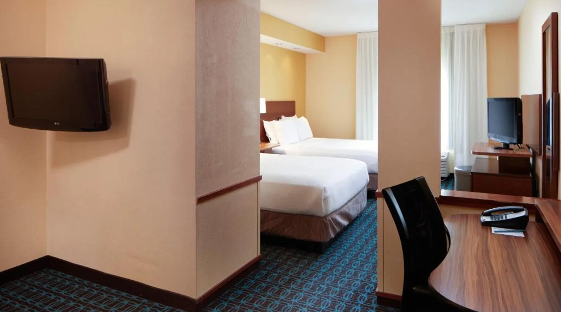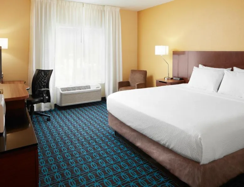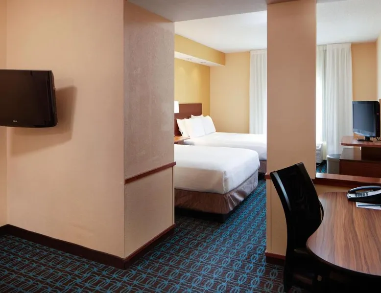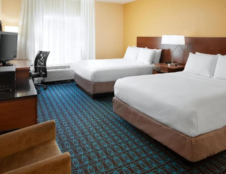 This hotel is located off I-64, 7 miles from Capital City Airport and 20 miles from Lexington. It has an indoor pool, fitness facilities and free Wi-Fi throughout the hotel. All guest bedrooms at Fairfield by Marriott Frankfort are equipped with cable TV and a radio. In addition, each room is equipped with hot drink facilities and a well-lit work desk. A hot breakfast is served each morning in the hotel’s spacious dining room. There are also several restaurants and cafés within a few minutes’ drive of the hotel in the center of Frankfort. Fairfield by Marriott Frankfort is located 3.5 miles from Kentucky State University. It is 15 miles from Keeneland Race Track and 2 miles from Lakeview Springs Golf Club. The spacious double room features a wardrobe, tumble dryer, as well as a private bathroom boasting a bath and a hairdryer. The unit has 2 beds.