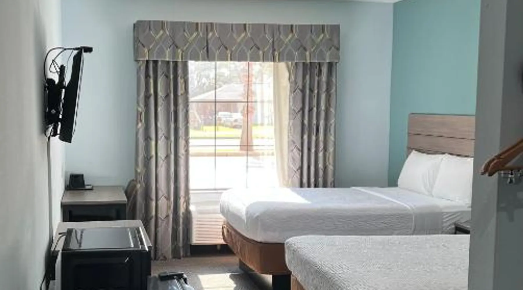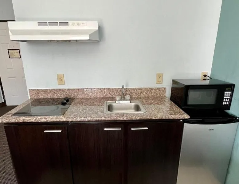 Comfortable Accommodations: Americas Best Value Inn Sulfur in Sulfur offers air-conditioned rooms with private bathrooms, kitchenettes, and free WiFi. Each room includes a hairdryer, tea and coffee maker, refrigerator, work desk, microwave, and kitchenware. Convenient Facilities: Guests benefit from a 24-hour front desk, housekeeping service, and express check-in and check-out. Free on-site parking is available, along with a 14 mi distance from Lake Charles Regional Airport. Local Attractions: Nearby attractions include Isle Of Capri Casino (8.7 mi), Creole Nature Trail All-American Road (9.9 mi), and Prien Lake Park (8.7 mi). Additional points of interest include L'Auberge Casino and Delta Downs Racetrack And Casino. Guest Favorites: Guests appreciate the property staff and service support, ensuring a pleasant stay. This room features free Wi-Fi, a microwave and a small fridge. Tea and coffee-making facilities are available.