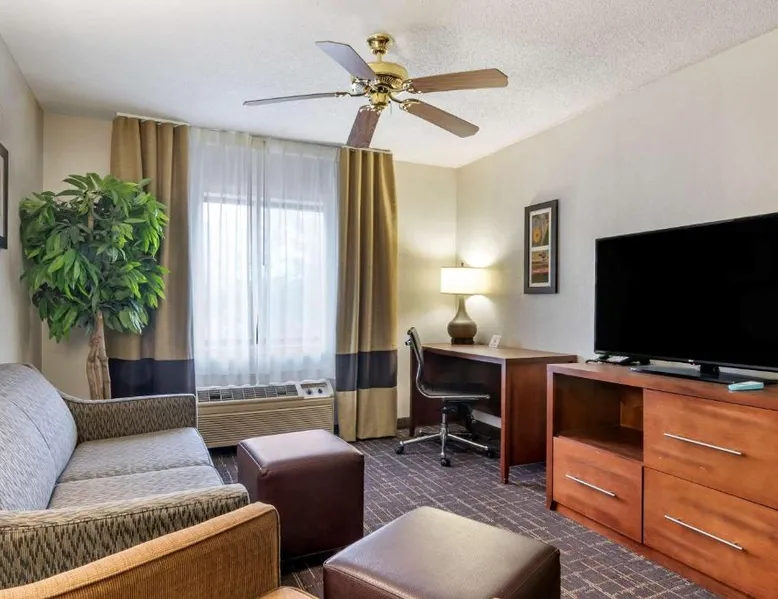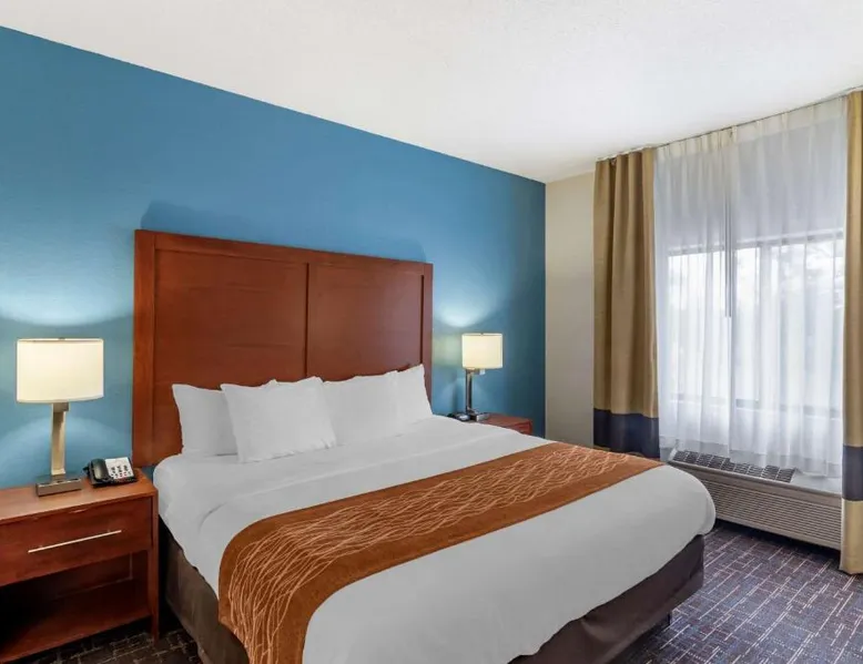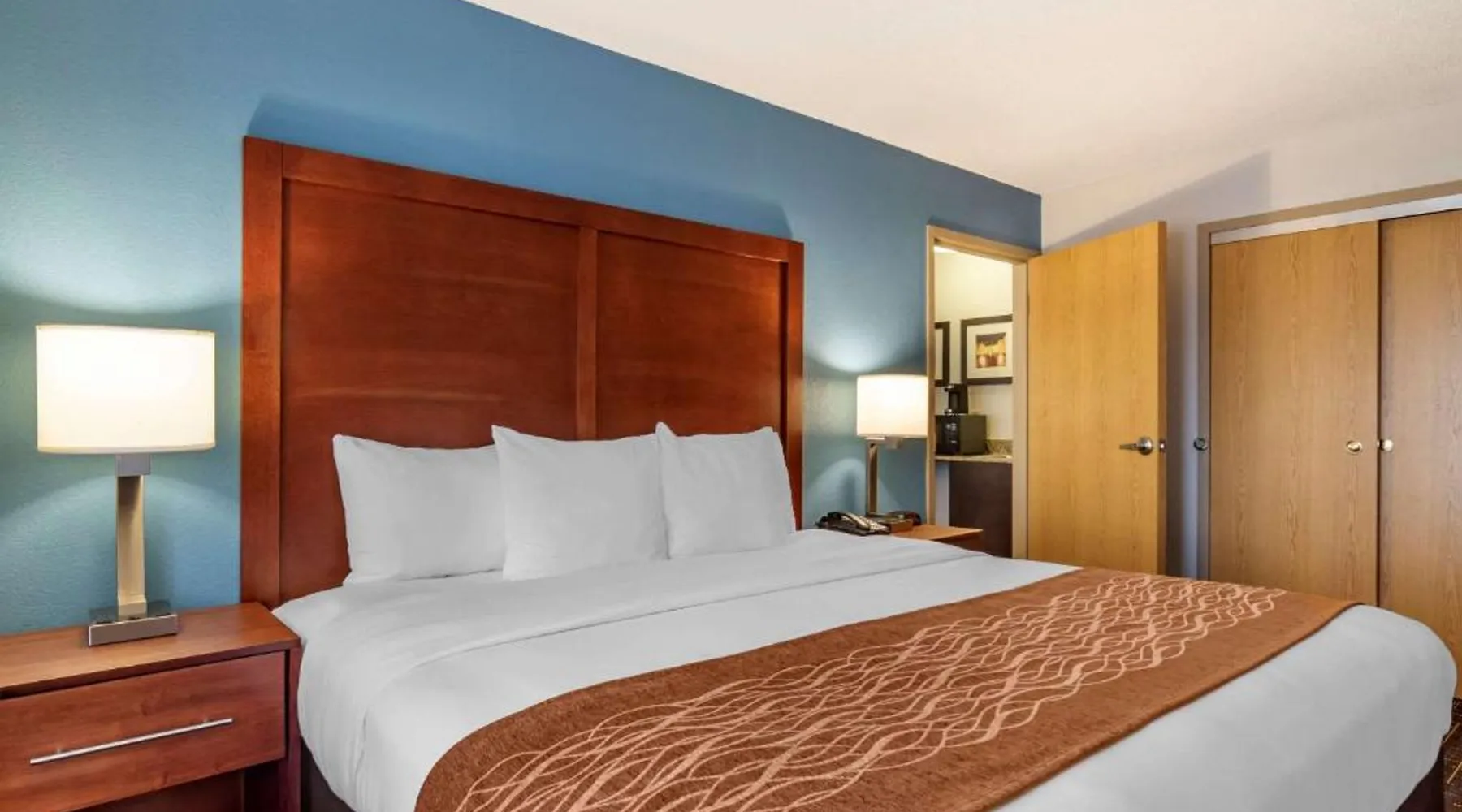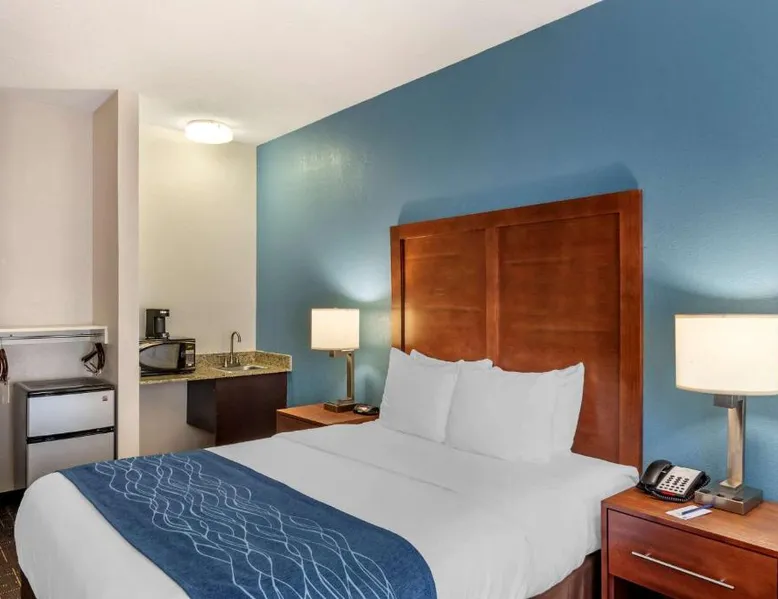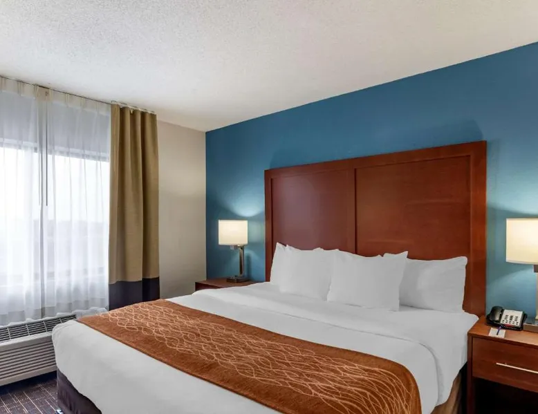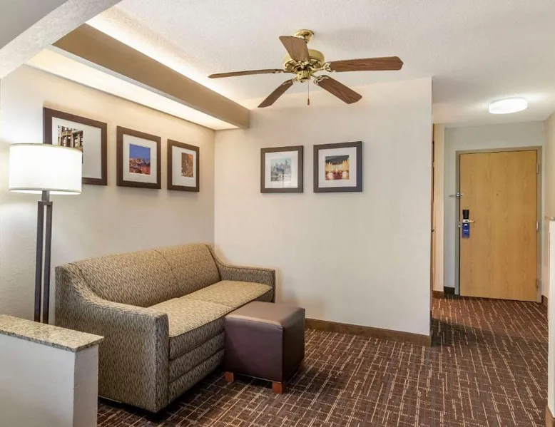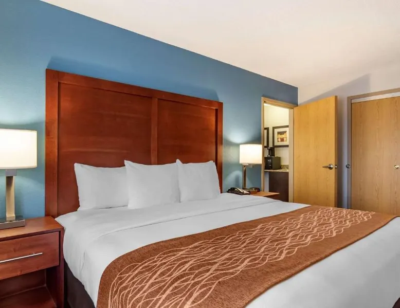 Comfortable Accommodations: Comfort Inn & Suites Lees Summit in Lees Summit offers comfortable rooms with free WiFi, ensuring a pleasant stay. Guests can relax by the indoor swimming pool or maintain fitness in the on-site fitness room. Convenient Facilities: The hotel features a 24-hour front desk, business area, and express check-in and check-out services. Free on-site private parking is available, along with a elevator for easy access. Delicious Breakfast: A continental buffet breakfast is served daily, including juice, fresh pastries, pancakes, and cheese. Room service is also available for added convenience. Prime Location: Located 37 mi from Kansas City International Airport, the hotel is near attractions such as Kauffman Stadium (12 mi) and Union Station Kansas City (19 mi). Guests appreciate the convenient location, comfortable beds, and attentive staff. Boasting free Wi-Fi and a cable TV, this room is equipped with tea and coffee-making facilities.