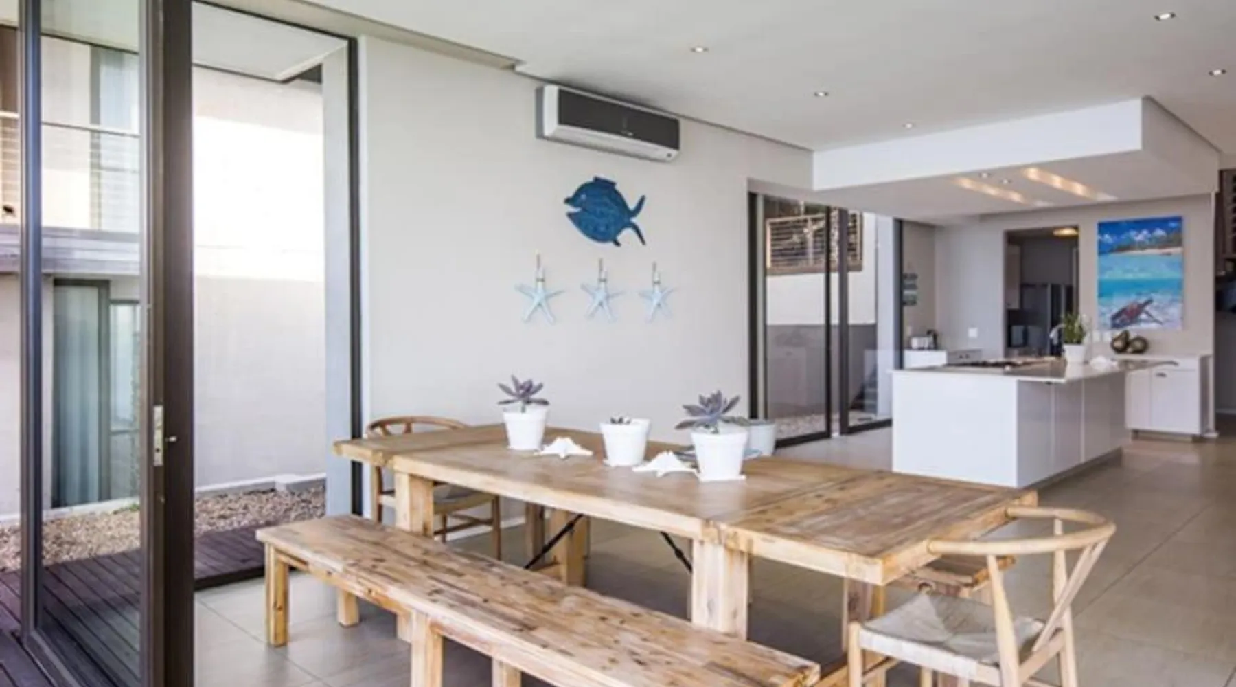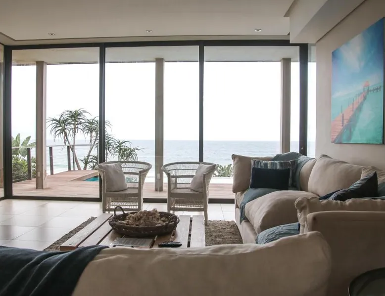 Prime Beachfront Location: 25 Sovereign Sands in KwaDukuza offers a private beach area and direct beachfront access. Guests enjoy sea views and a sun terrace, perfect for relaxation. Exceptional Facilities: The apartment features a year-round outdoor swimming pool, indoor pool, and free WiFi. Additional amenities include an outdoor seating area, family rooms, games room, and barbecue facilities. Comfortable Accommodations: With four bedrooms and four bathrooms, the property includes a living room and kitchenette. Each unit is equipped with air-conditioning, a balcony, and a washing machine. Nearby Attractions: Blythedale Beach is just a few steps away, while King Shaka International Airport is 25 mi distant. Points of interest such as The Official Luthuli Museum and King Shaka Memorial are within 5 mi. Guests will have a special experience as this apartment features a pool with a view. Featuring a private entrance, this air-conditioned apartment is consisted of of 1 living room, 4 separate bedrooms and 4 bathrooms with a walk-in shower and a bath. Guests will find a stovetop, a refrigerator, a dishwasher and kitchenware in the fully equipped kitchen. The apartment also has a barbecue. Boasting a terrace with sea views, this apartment also offers a washing machine and a flat-screen TV with satellite channels. The unit offers 6 beds.