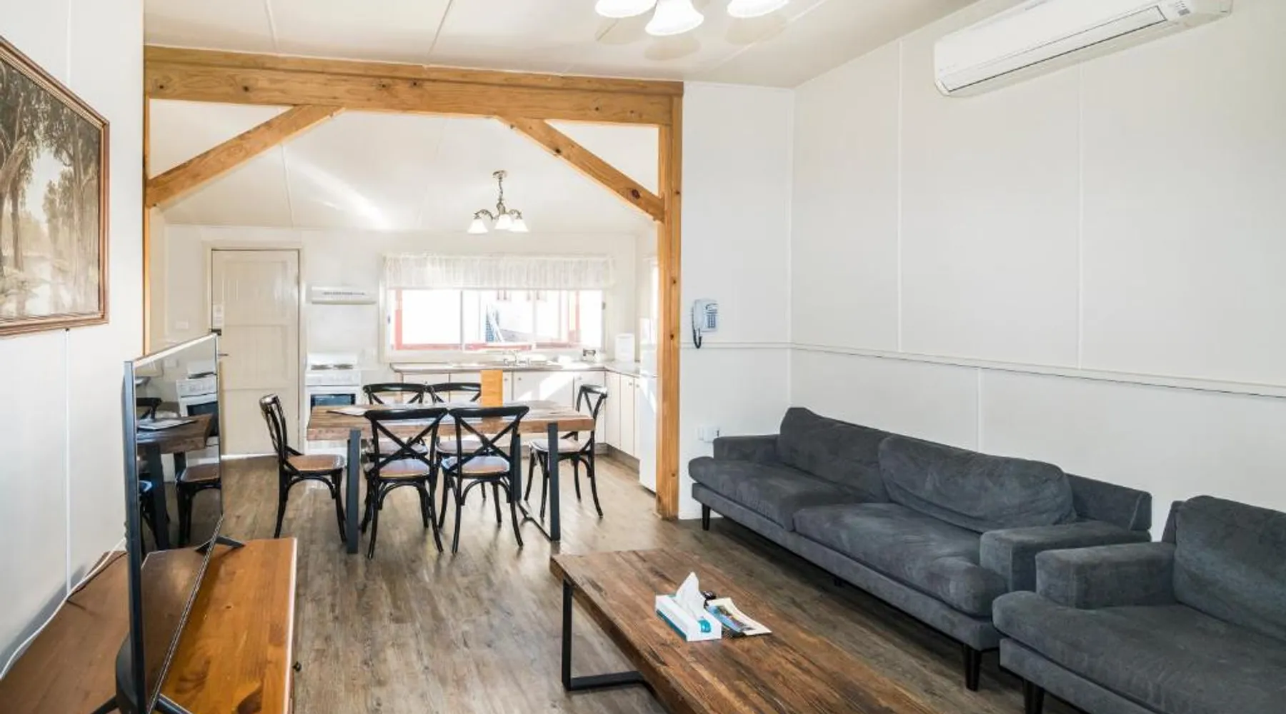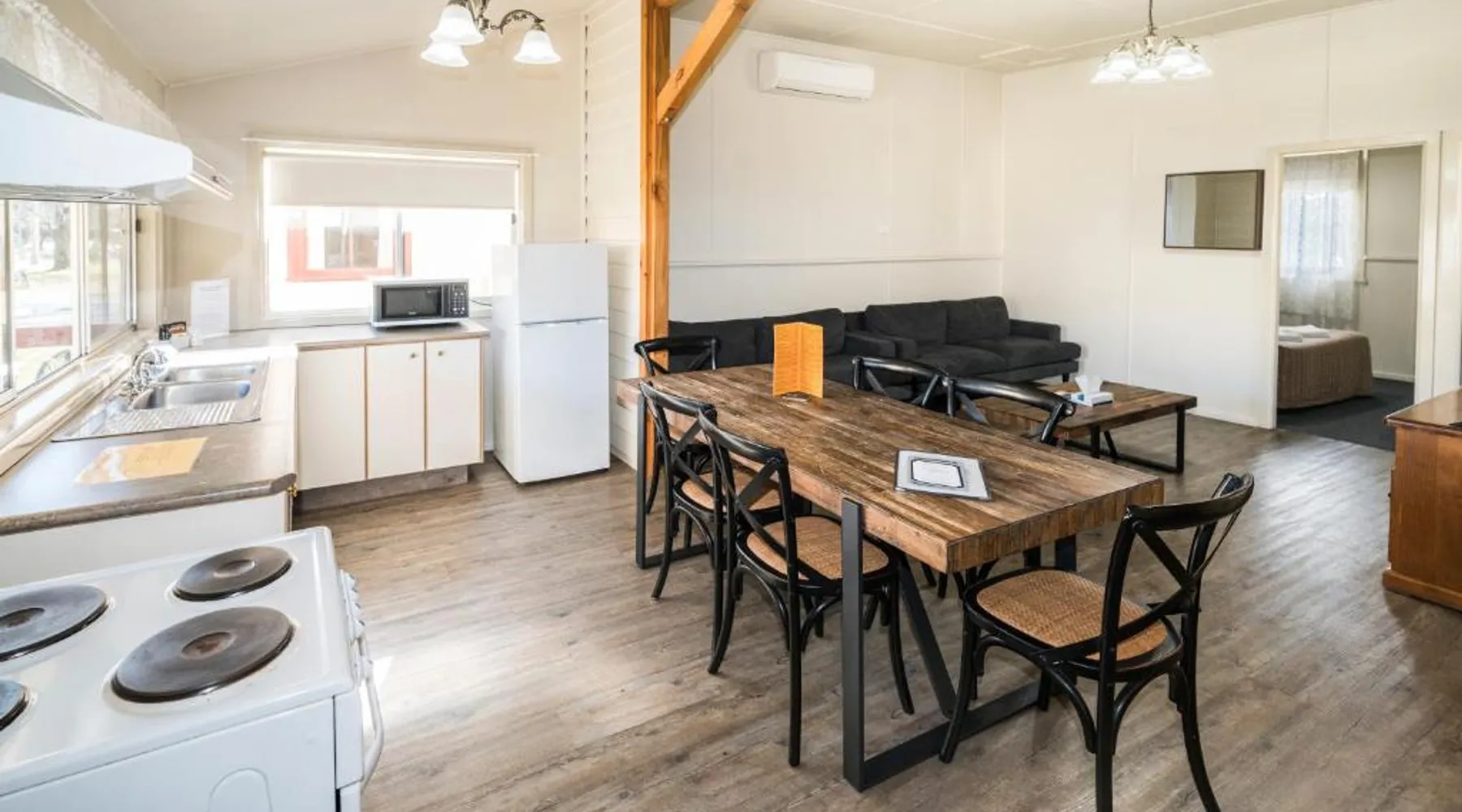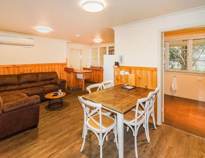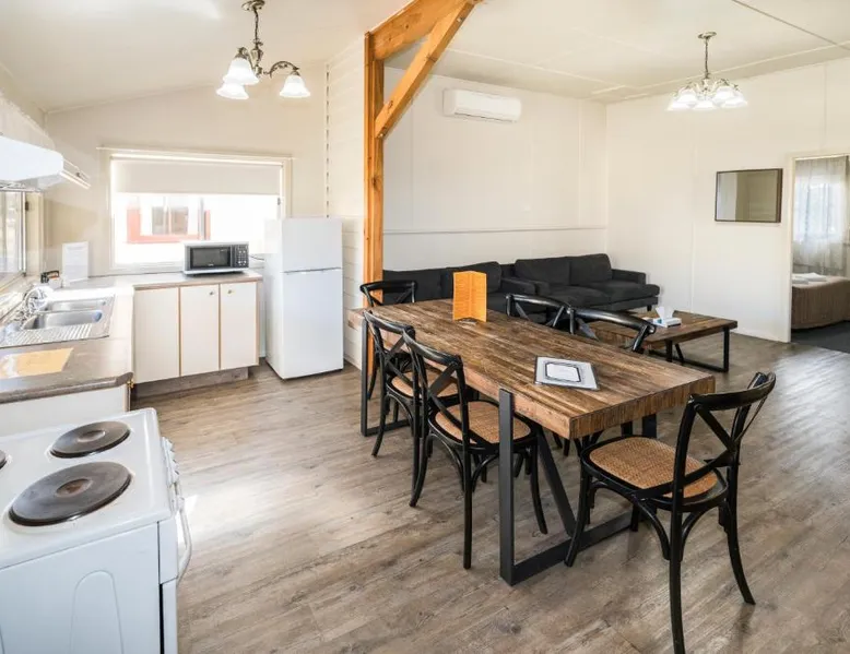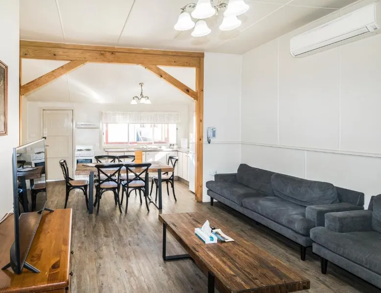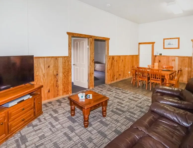 Black Gold Motel offers self-contained motel, cabin and villa accommodations with free Wi-Fi, free parking and BBQ areas. Guests can enjoy modern Australian cuisine at The Crib Room Restaurant and a drink at the bar. All accommodations at Black Gold Motel includes air conditioning, heating and flat-screen TV with DVD player. Each unit has a microwave and mini refrigerator. Villas and holiday cabins with fully equipped kitchen and laundry facilities are available. Lithgow city center is a 15-minute drive away. It is a 3-minute walk to Wallerawang Train Station. Boasting a private entrance, this air-conditioned suite includes 1 living room, 2 separate bedrooms and 1 bathroom with a walk-in shower and a hairdryer. In the fully equipped kitchenette, guests will find a refrigerator, a microwave, a toaster and an electric kettle. The spacious suite offers soundproof walls, a seating area, a dining area, a wardrobe, as well as a flat-screen TV with streaming services. The unit has 4 beds.