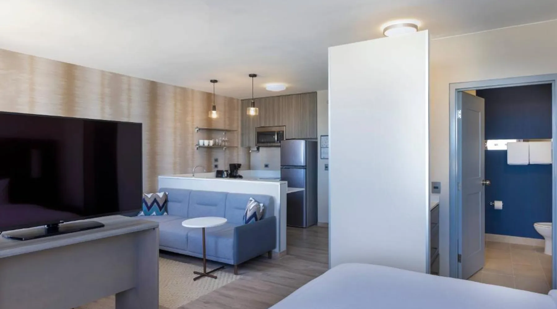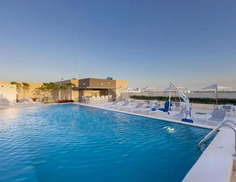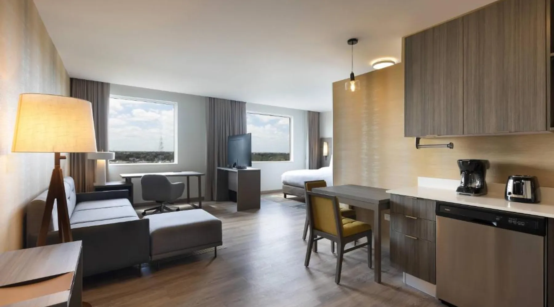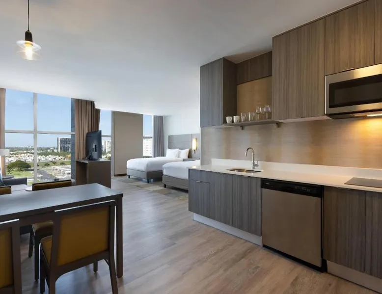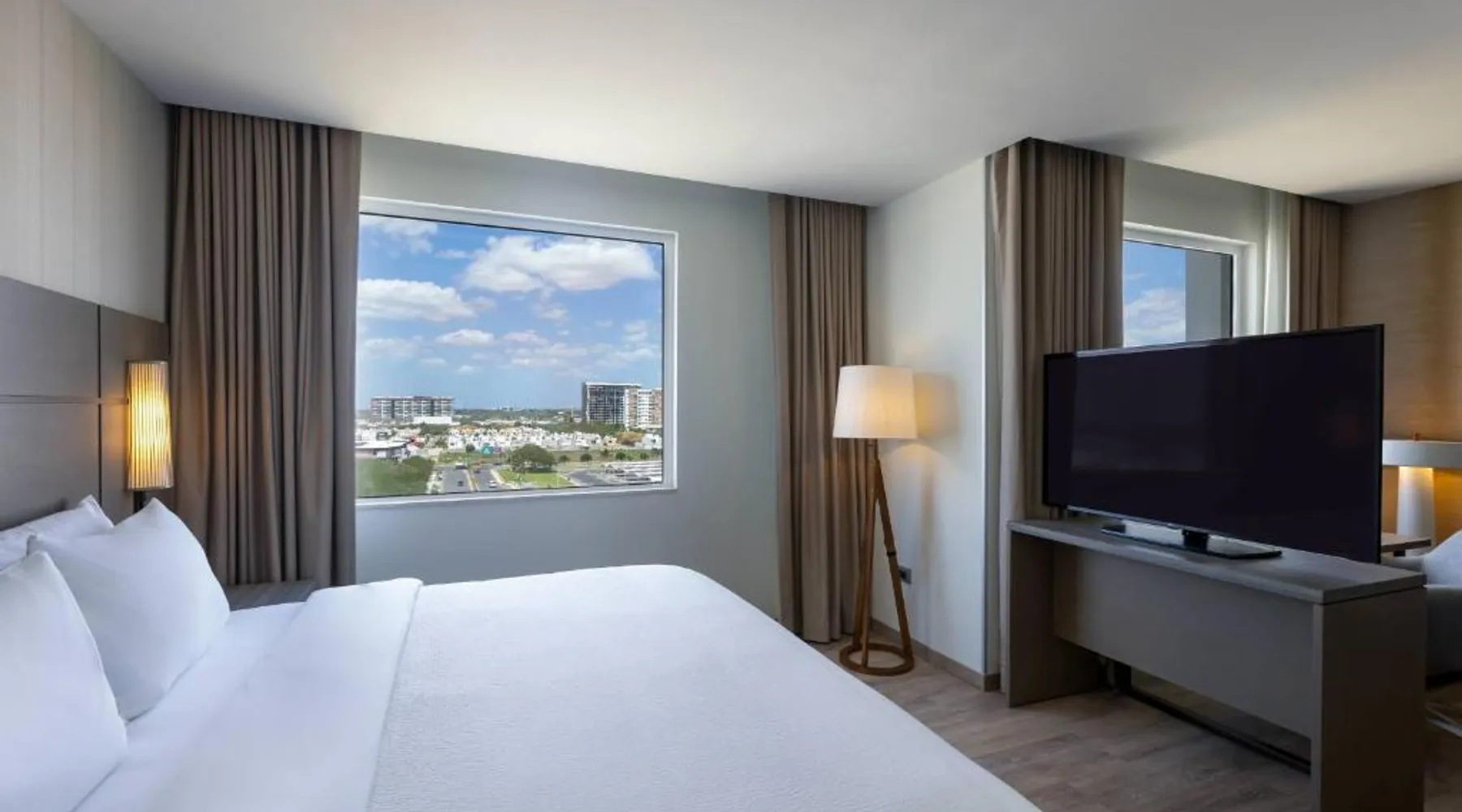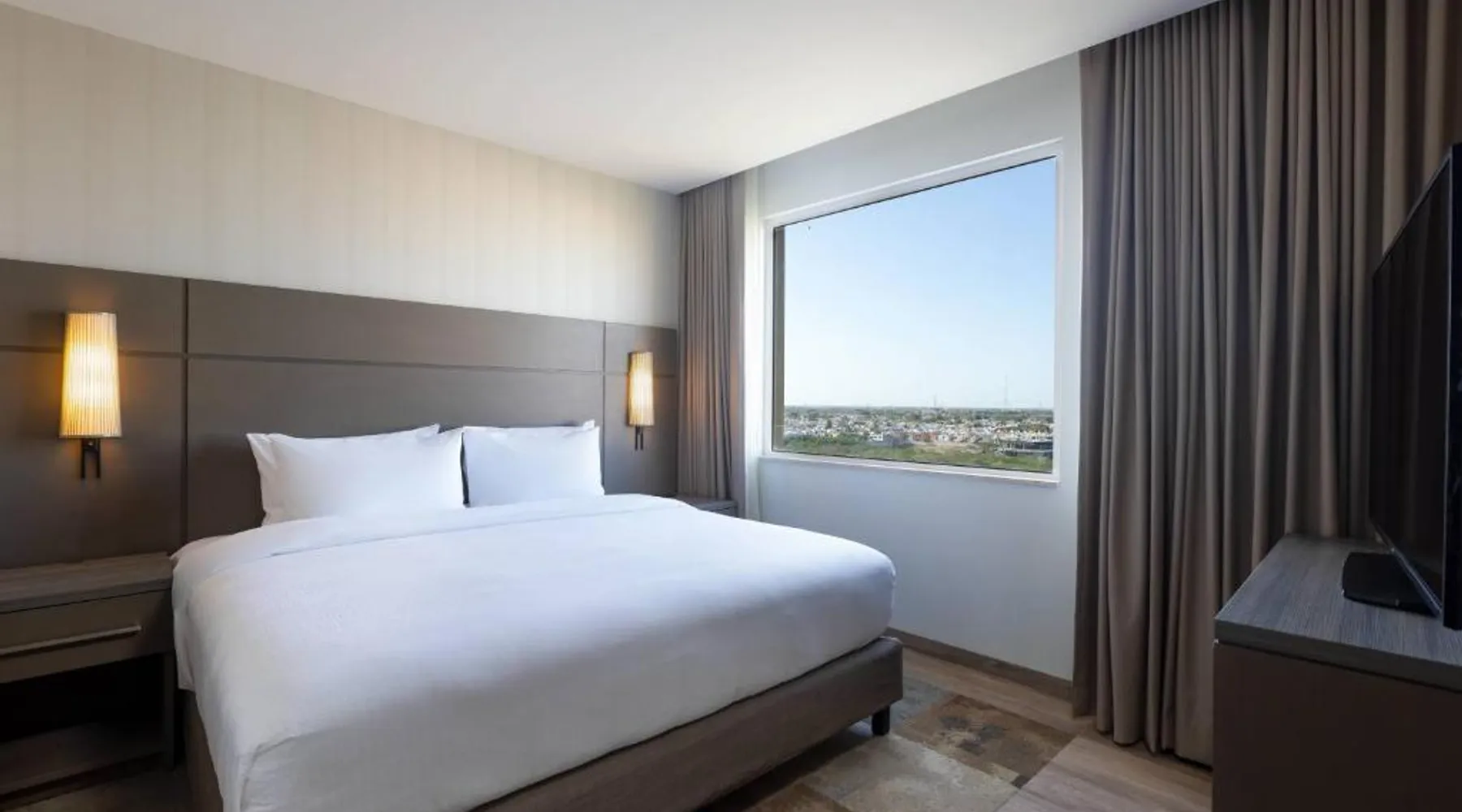 Comfortable Accommodations: Residence Inn by Marriott Merida in Merida offers spacious rooms with air-conditioning, private bathrooms, and modern amenities. Guests appreciate the room comfort, size, and cleanliness. Exceptional Facilities: The hotel features a rooftop swimming pool, fitness center, sun terrace, and free WiFi. Additional facilities include a restaurant, public bath, fitness room, and 24-hour front desk. Dining Experience: A family-friendly restaurant serves local cuisine with an American breakfast. Outdoor seating areas provide a pleasant dining atmosphere. Prime Location: Located 8.7 mi from Manuel Crescencio Rejón International Airport, the hotel is near attractions such as Conventions Center Century XXI and Mundo Maya Museum, both 1.2 mi away. An ice-skating rink is in the surroundings. Featuring free toiletries, this double room includes a private bathroom with a walk-in shower. Guests can make meals in the kitchen that features a stovetop, a refrigerator, a dishwasher and kitchenware. The spacious air-conditioned double room features a flat-screen TV with satellite channels, a private entrance, a tea and coffee maker, a seating area as well as city views. The unit has 2 beds.