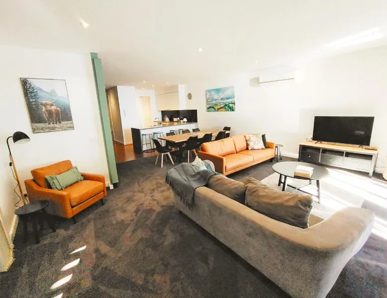 Beachfront Location: Cscape3 in Cowes offers direct beachfront access with stunning sea views. Guests can relax on the terrace or enjoy the balmy coastal air. Modern Amenities: The apartment features free WiFi, air-conditioning, and a fully equipped kitchen. Additional amenities include a washing machine, streaming services, and free toiletries. Comfortable Living: With three bedrooms and two bathrooms, the property provides ample space. The ground-floor unit includes a private entrance and a seating area. Local Attractions: Erehwon Point Beach is a 3-minute walk away, while Phillip Island Wildlife Park lies 1.9 mi from the property. Essendon Fields Airport is 93 mi distant. Guests will find a stovetop, a refrigerator, a dishwasher and an oven in the well-fitted kitchen. The apartment also comes with a barbecue. The air-conditioned apartment features a flat-screen TV with streaming services, a washing machine, a private entrance, a coffee machine as well as sea views. The unit has 6 beds.