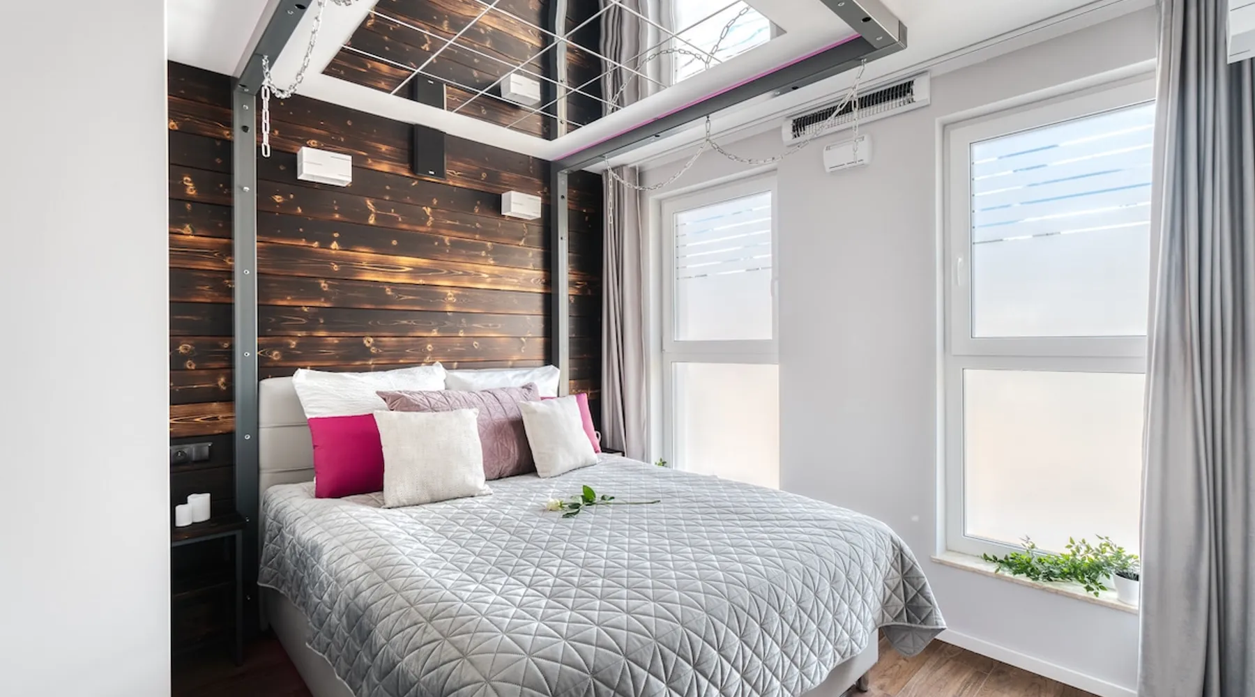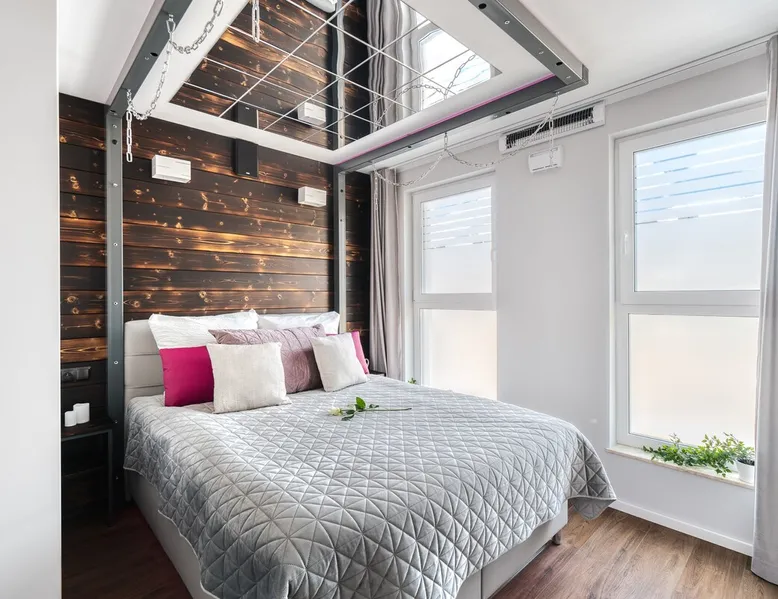 Unique apartment for couples who value peace and quiet. Exclusive apartment with a huge double hot tub. For the convenience of our guests, there is a large comfortable bed in the bedroom. The ceiling will be complemented by mirrors on the ceiling and slippers for our guests. The apartment is equipped with special acoustic windows and walls to get away from the hustle and bustle of everyday life and be able to rest comfortably. The property has 3 independent, automated disinfection systems, which is valuable these days!