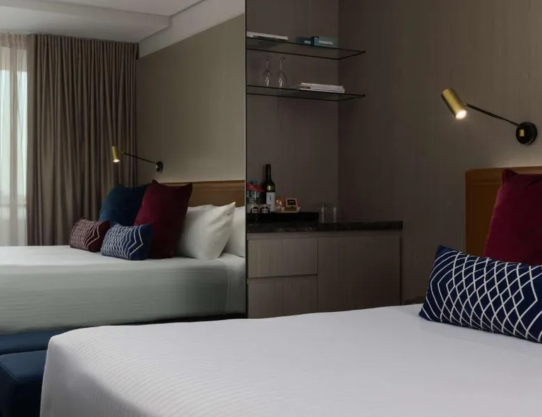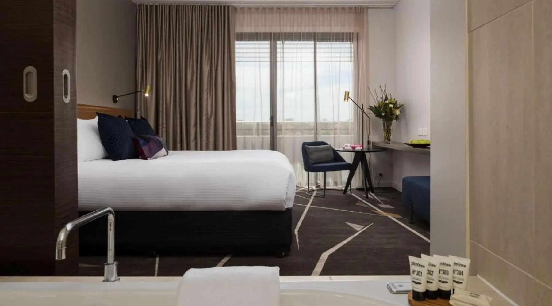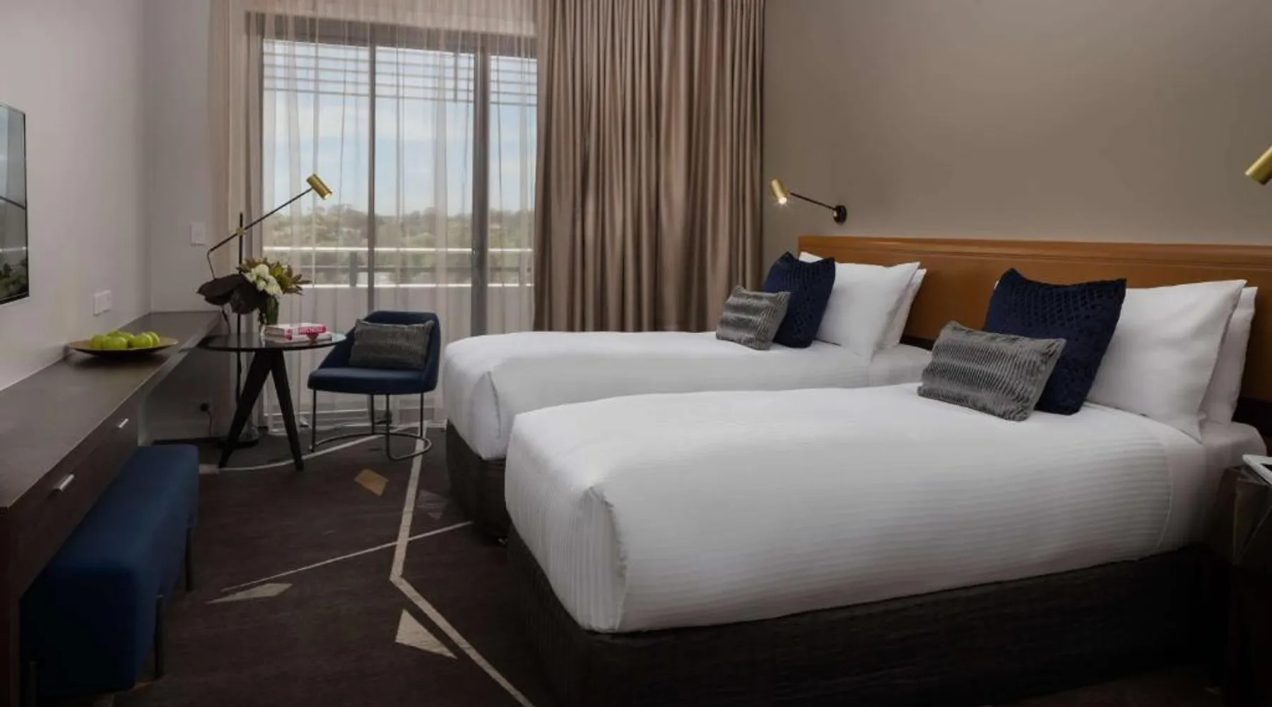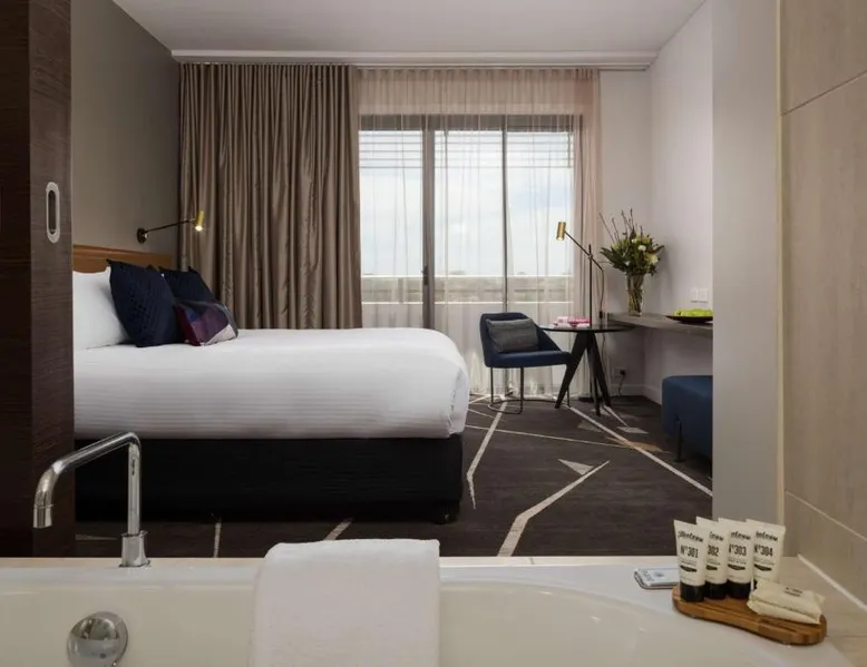 The modern and stylish Rydges Campbelltown offers 154 well-appointed rooms, free WiFi, good restaurants, bars and conference facilities. Guests at Rydges Campbelltown can enjoy the facilities of the Aquafit Fitness & Leisure Center (minimum age is 18). There are many experiences available nearby the hotel, from adventure activities, action packed sports and natural wonders to exceptional historical sites and quality restaurants. This air-conditioned double room is consisted of of a flat-screen TV with cable channels, a private bathroom as well as a terrace with garden views. The unit has 1 bed.