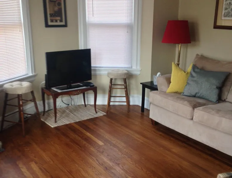 Enjoy the best that Wilmington and the tri-state area has to offer from this adorable unit on a quiet street. Walk to restaurants and festivals, the zoo, the river, and local arts events. Fully furnished stocked 1-2 bedroom apartment in a great location, hardwood floors in main living areas, ceramic tile floors in kitchen and bath, granite counters, private covered balcony with table for two, one off-street parking space. The space 2nd floor walkup unit. 780s.f. All hardwood flooring in living areas and ceramic tile in kitchen and bathroom. Double bed in main bedroom, one single (twin sized) bed in office/2nd bedroom, fully stocked kitchen with granite counters, breakfast bar, built-in dishwasher and microwave, flat screen TV and WIFI, shared full sized laundry in the basement. Of note: office room doesn't have a full door - the doorway is narrow. A full length curtain is in place over the opening. Guest access keys provided for private unit and basement laundry, front and back entrances Other things to note Convenient to lots of restaurants within a 15 min walk, many local festivals, museums, parks, arts and music venues, the Riverfront and the historic Kalmar Nickel. One off street parking space provided in rear of the building