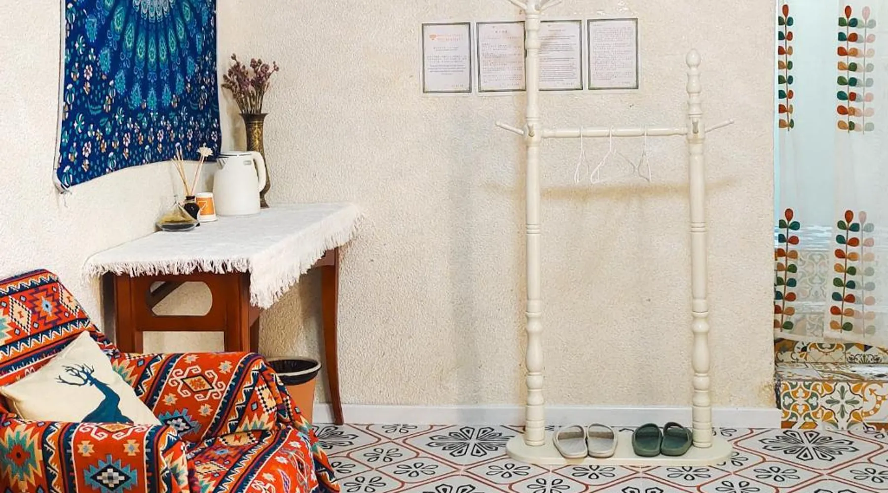 Comfortable Accommodations: New Dap Hostel in Turfan offers family rooms with private bathrooms, air-conditioning, and soundproofing. Each room includes a work desk, sofa, and free WiFi. Outdoor Spaces: Guests can relax on the sun terrace or in the garden. The property features an outdoor dining area, picnic spots, and barbecue facilities. Amenities and Services: The hostel provides free WiFi, private check-in and check-out, a lounge, coffee shop, and outdoor seating. Additional services include bicycle parking, car hire, and a tour desk. Location and Attractions: Located 9.3 mi from Turpan Jiaohe Airport, the hostel is near attractions such as the Grape Town and the Turpan Jiaohe Museum. Guests appreciate the friendly host and excellent service. This bed in dormitory has air conditioning, tile/marble floor and soundproofing.