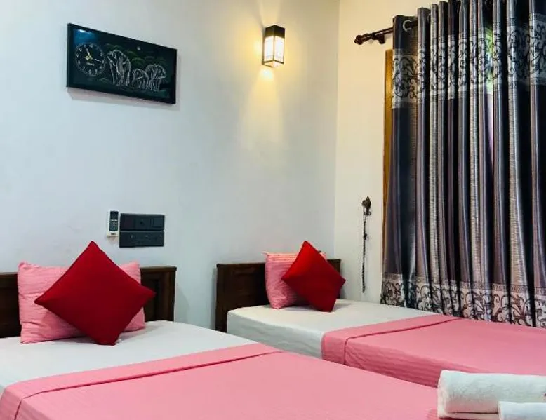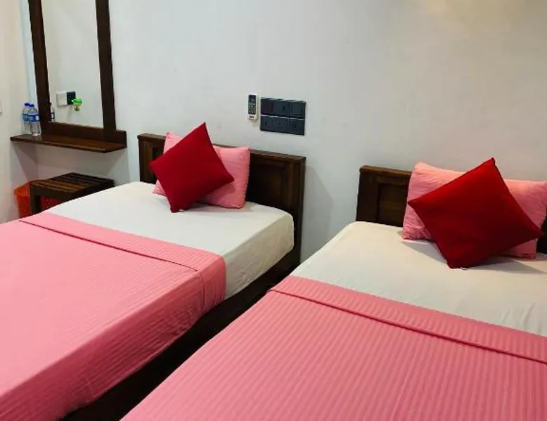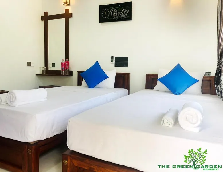 Essential Facilities: The Green Garden in Dambulla offers a beautiful garden and free WiFi. Guests can relax in the outdoor seating area or enjoy the serene garden views. Comfortable Accommodations: Rooms feature private bathrooms, air-conditioned km from Sigiriya. Each room includes a work desk and soundproofing. Convenient Services: The homestay provides private check-in check-out services, paid shuttle service, lounge, 24-hour front desk, housekeeping, room service, car hire, tour desk. Local Attractions: Dambulla Cave Temple is 3.1 mi away, Sigiriya Rock 15 mi, Pidurangala Rock 17 mi, and Popham's Arboretum 5 mi. The twin room features air conditioning, a private entrance, a balcony with garden views as well as a private bathroom boasting a shower. The unit has 2 beds.