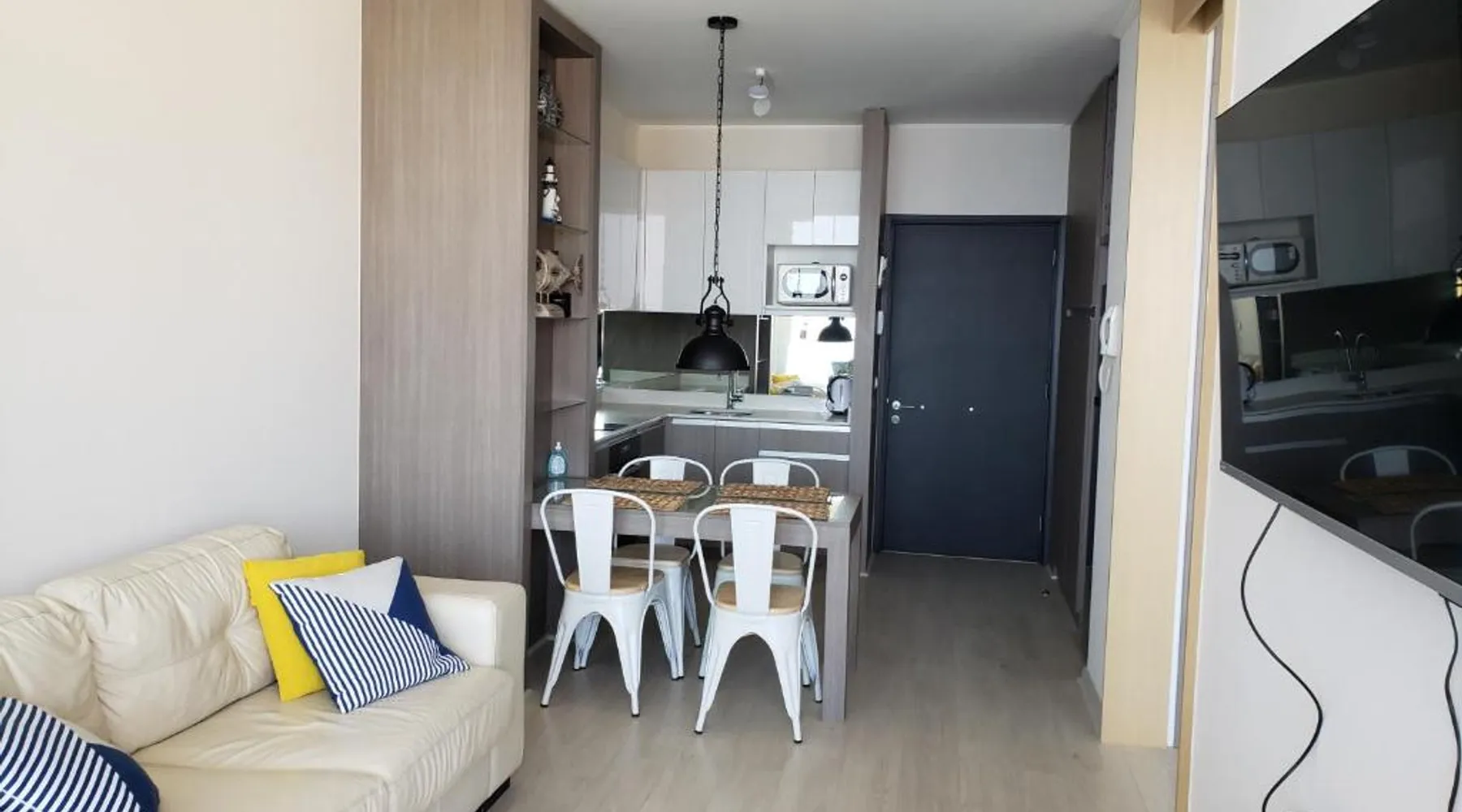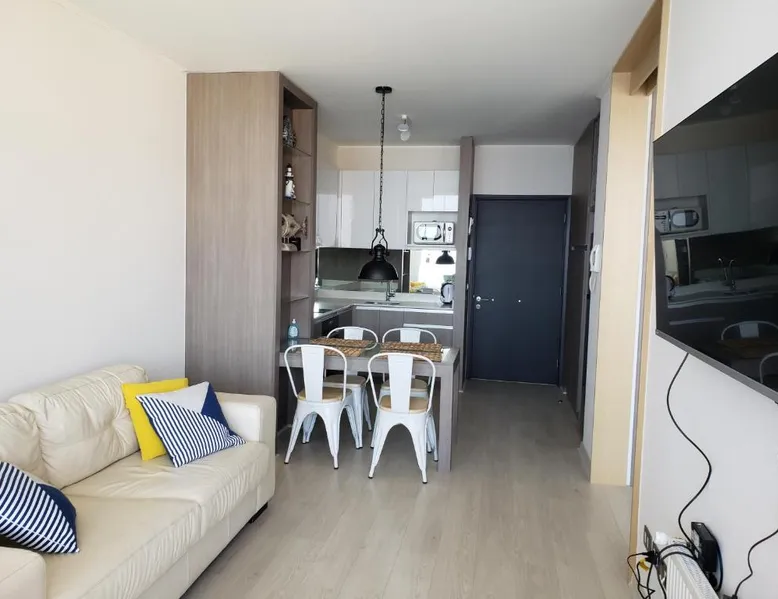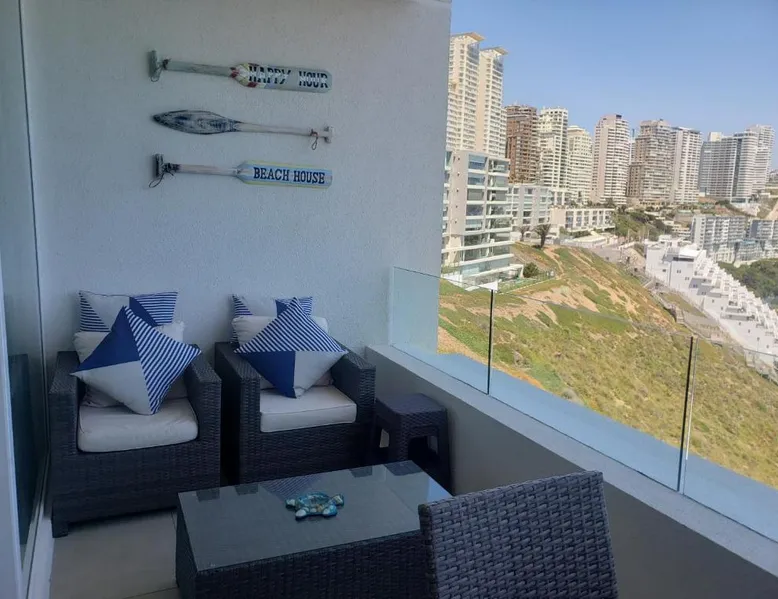 Beachfront Location: Departamento full vista al Mar ReñacaConcon in Concon offers direct beachfront access with stunning sea views. Guests can relax by the swimming pool with a view, sun terrace, and open-air bath. Comfortable Amenities: The apartment features a fitness center, hot tub, and games room. Additional facilities include a waterpark, outdoor seating area, and barbecue facilities. Free WiFi is available throughout the property. Nearby Attractions: Cochoa Beach lies less than 0.6 mi away, while Concon Sand Dunes are 1.2 mi distant. Viña del Mar Bus Terminal is 6.2 mi from the property, providing easy transport options. Guest Satisfaction: Highly rated by guests for its scenic location, Departamento full vista al Mar ReñacaConcon ensures a memorable stay with excellent facilities and services. The pool with a view and hot tub are the special features of this apartment. This apartment consists of 1 living room, 1 separate bedroom and 1 bathroom with a shower and a hairdryer. Guests can make meals in the kitchen that is equipped with a refrigerator, kitchenware, an oven and a microwave. Featuring a terrace with sea views, this apartment also provides Smartphone and a flat-screen TV with streaming services. The unit offers 3 beds.