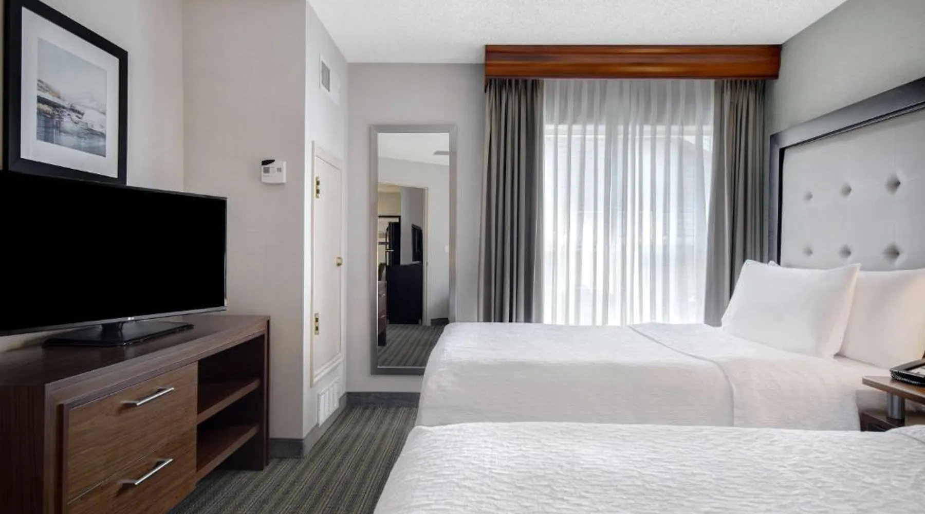 Comfortable Accommodations: Homewood Suites by Hilton Salt Lake City - Midvale/Sandy in Midvale offers family rooms with air-conditioning, kitchen facilities, and free WiFi. Each room includes a sofa bed, work desk, and TV. Exceptional Facilities: Guests can enjoy an indoor swimming pool, fitness center, sun terrace, and garden. Additional amenities include a hot tub, lounge, and business area. Free on-site parking is available. Convenient Location: Located 15 mi from Salt Lake City International Airport, the hotel is near Repartee Gallery (less than 0.6 mi) and Mountain America Expo Center (4.3 mi). Skiing activities are nearby. Guest Satisfaction: Highly rated for its breakfast, room cleanliness, and attentive staff. The well-fitted kitchen has a stovetop, a refrigerator, a dishwasher and kitchenware. The suite features air conditioning, a tea and coffee maker, a seating area, heating, as well as a flat-screen TV. The unit has 2 beds.