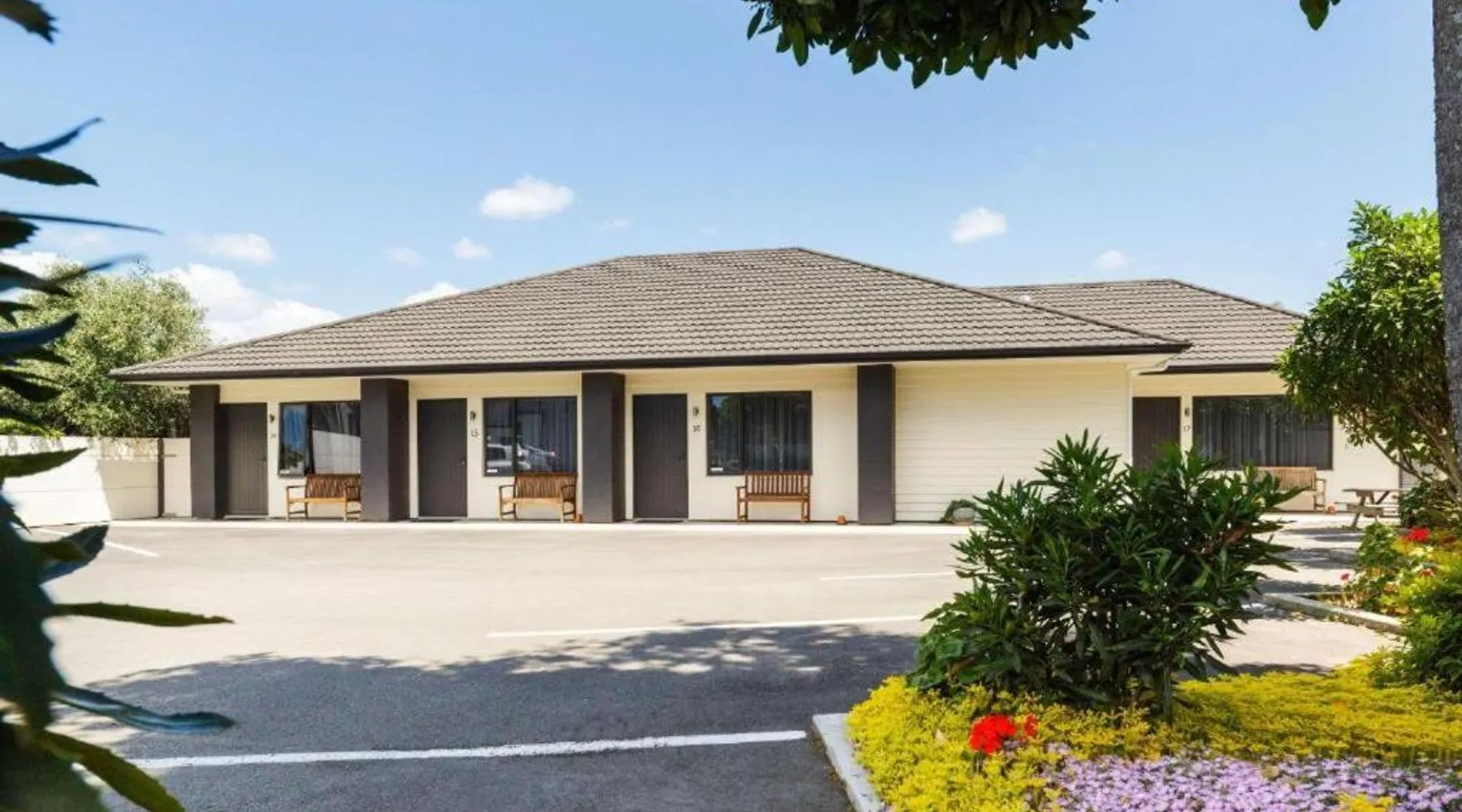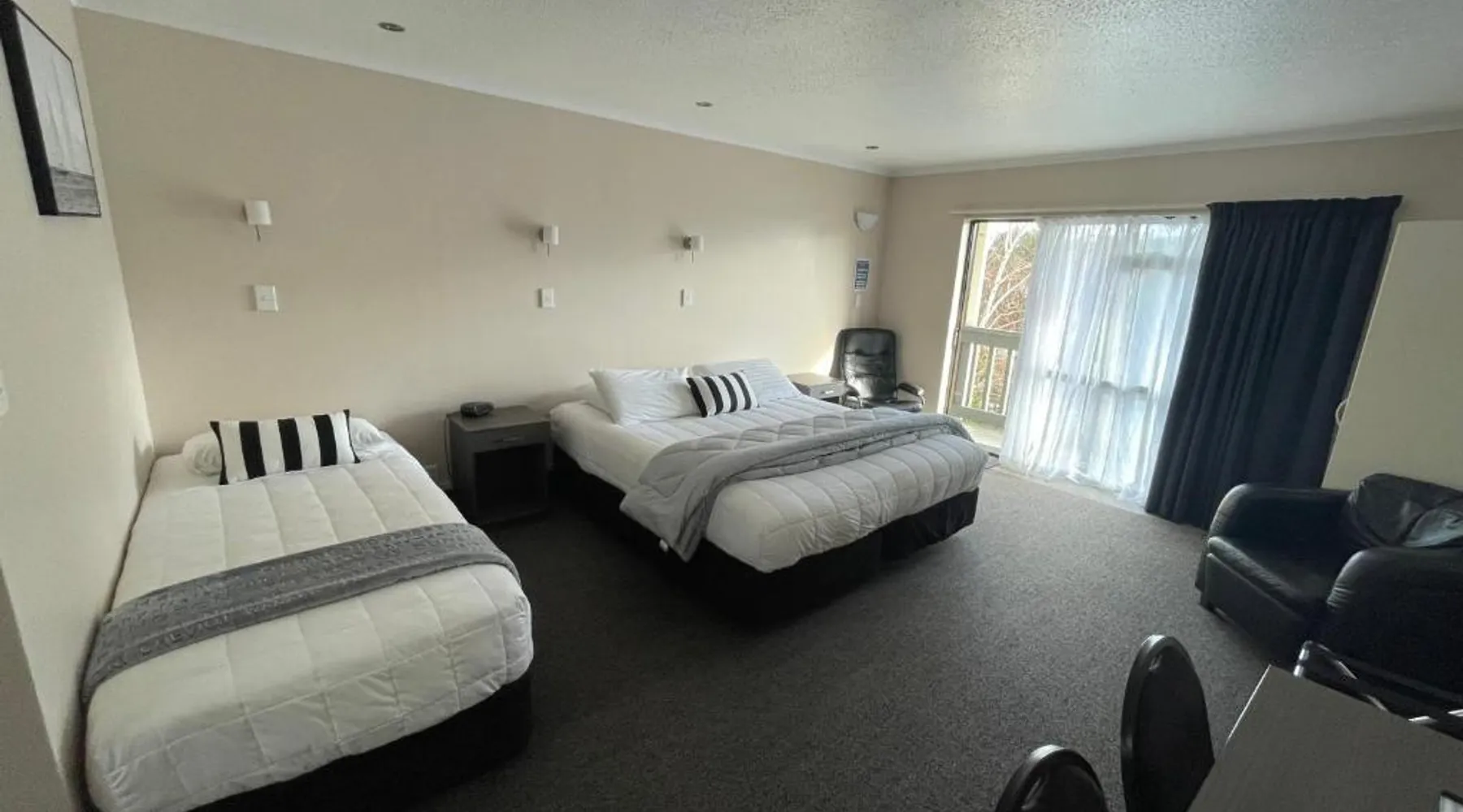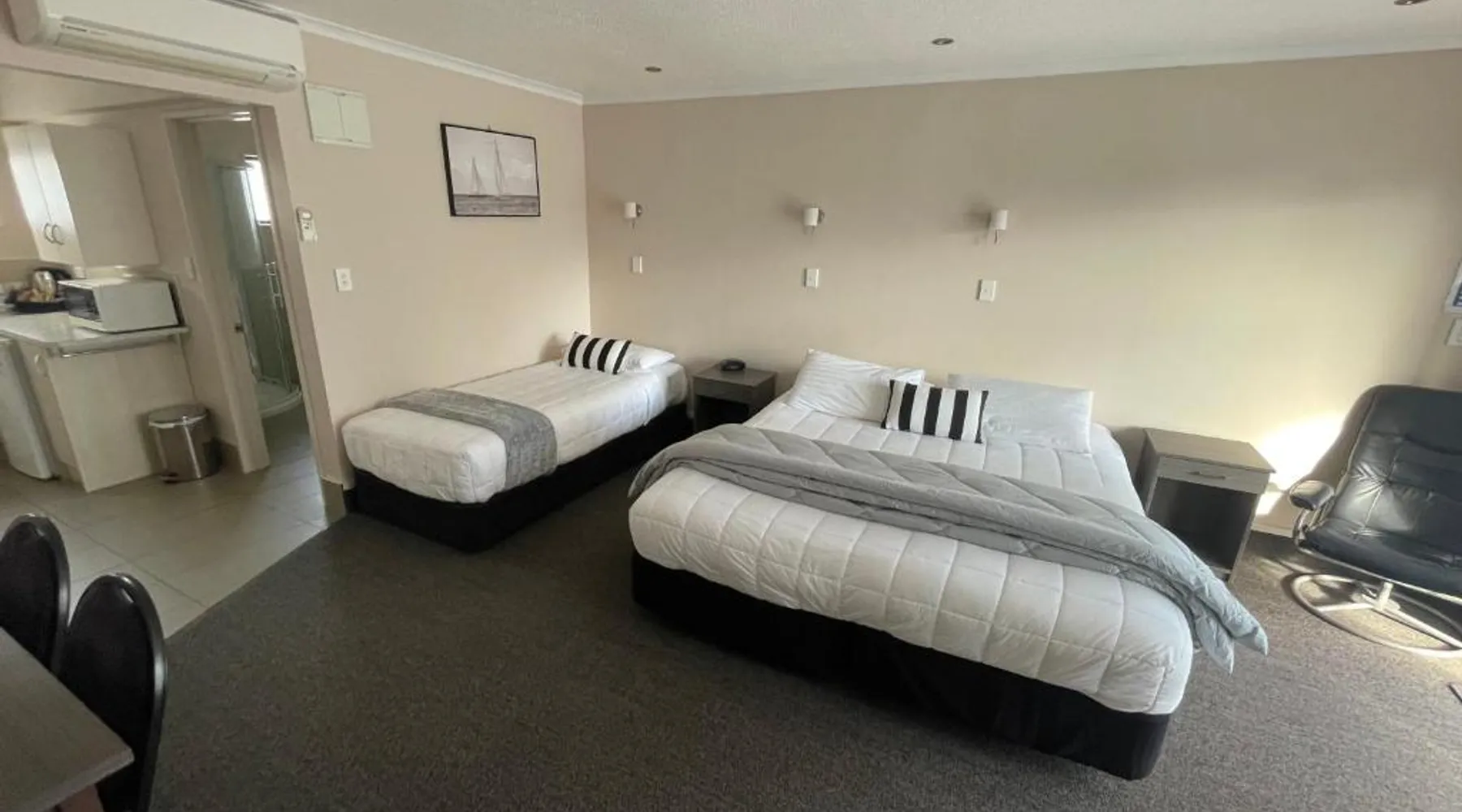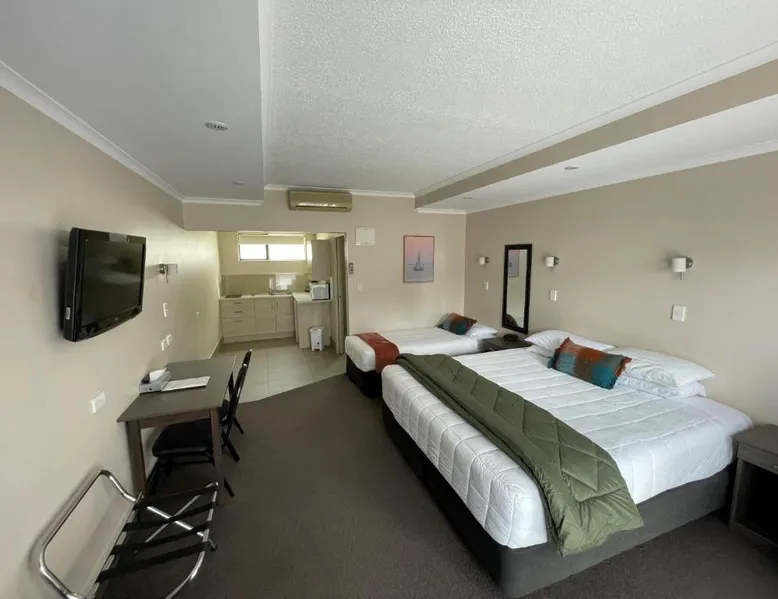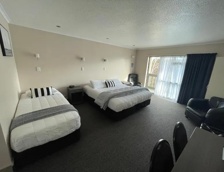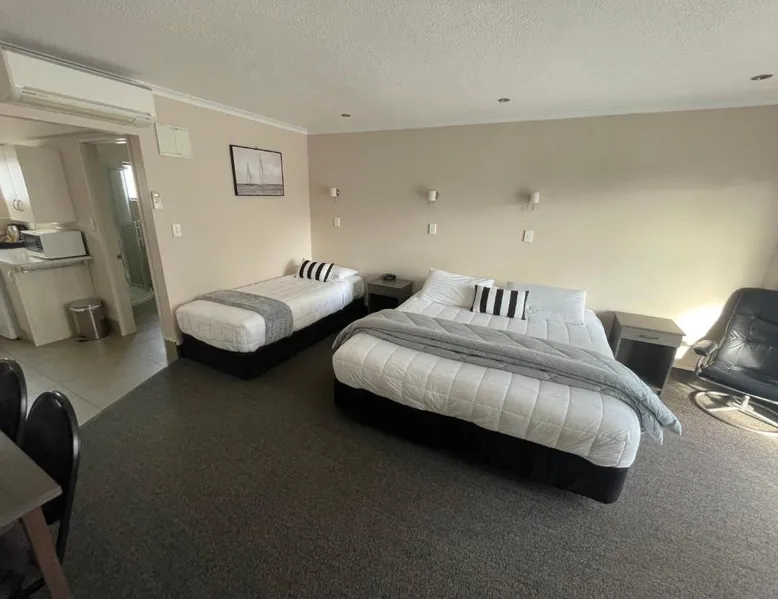 Kauri Court Motel and Apartments is a 10-minute walk from Palmerston North town center and 3.7 mi from Palmerston North International Airport. It offers self-contained accommodations with free parking and free Wi-Fi access. Kauri Court's rooms are spacious, modern and quiet and all have individual climatic air-conditioning. They offer super king beds, high pressure hot water showers and flat-screen TVs. The property offers a barbecue area. A self-service laundry service is available. The property is located adjacent to a range of sporting facilities, cycling trails and the Manawatu River. A continental breakfast is available daily. Various local dining options are within a 10-minute drive of the hotel. Kauri Court Comfort Inn is a 3-minute drive from the Town Square and a 30-minute drive from Te Apiti Wind Farm. The Te Manawa Museum Gallery Science Center is a 5-minute drive away. This 3-bedroom suite has climate-controlled air-conditioning, a super king-sized bed in each bedroom and a fully equipped kitchen with a dishwasher, full-sized refrigerator/freezer. There is a TV with free-to-air channels and 4 satellite channels. Complimentary tea and coffee are provided.