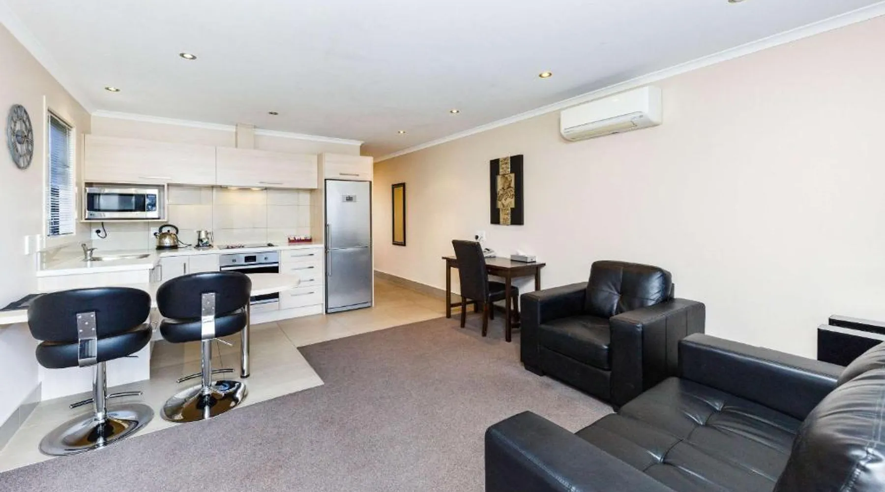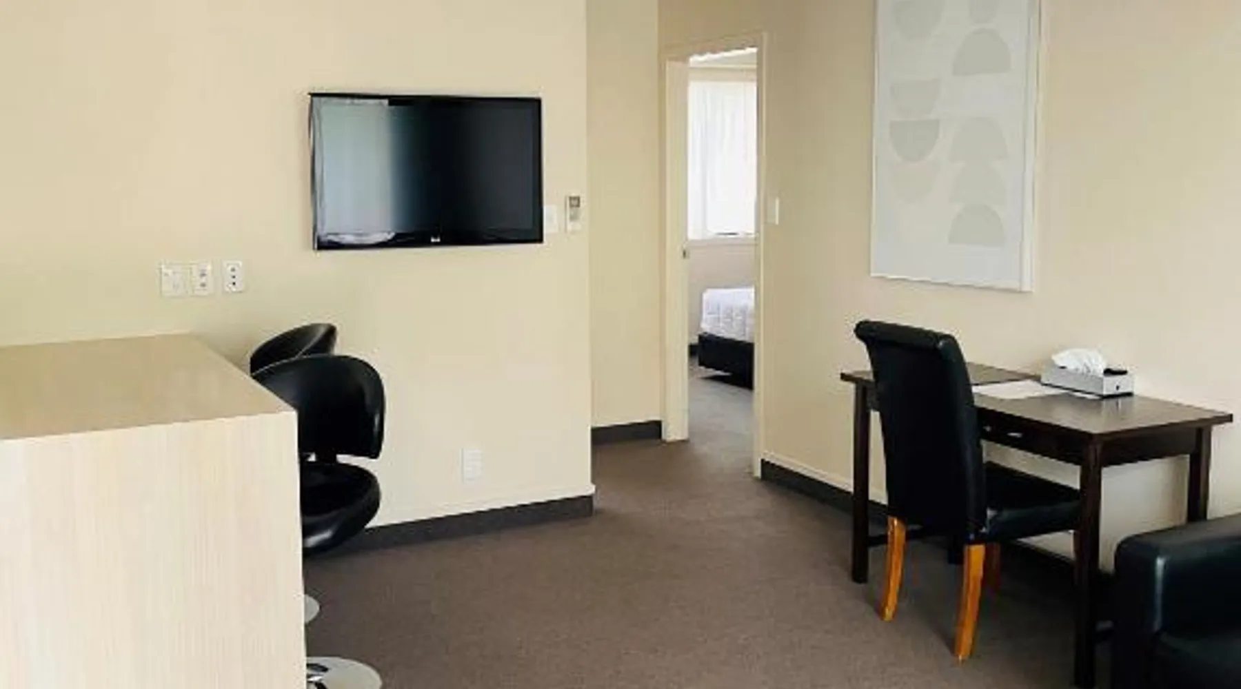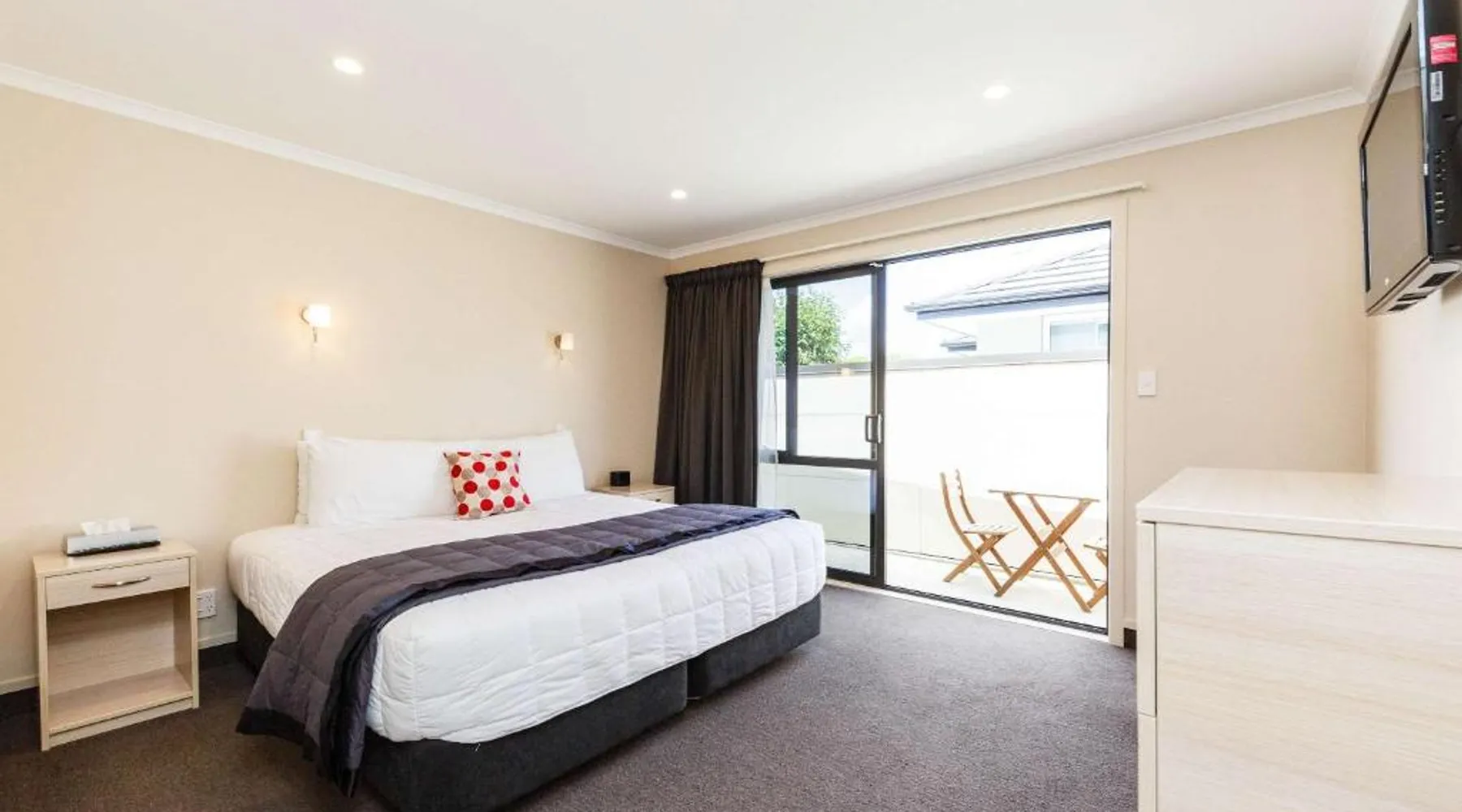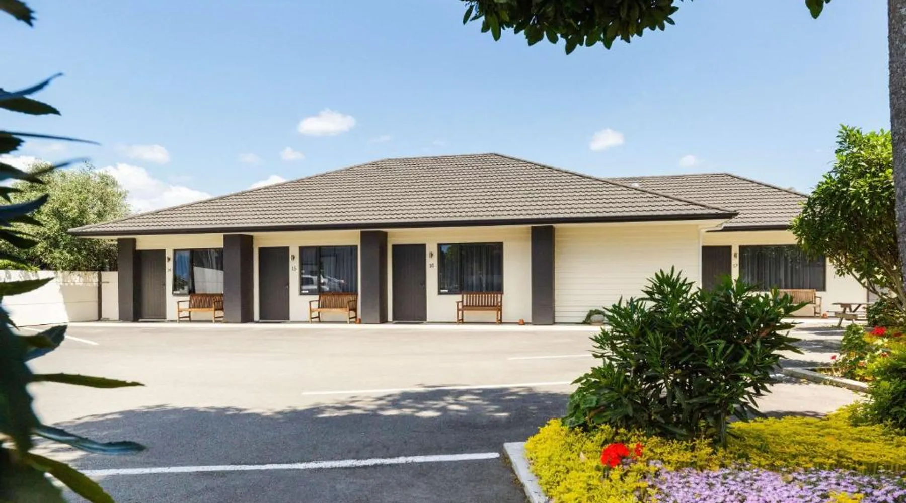 Kauri Court Motel and Apartments is a 10-minute walk from Palmerston North town center and 3.7 mi from Palmerston North International Airport. It offers self-contained accommodations with free parking and free Wi-Fi access. Kauri Court's rooms are spacious, modern and quiet and all have individual climatic air-conditioning. They offer super king beds, high pressure hot water showers and flat-screen TVs. The property offers a barbecue area. A self-service laundry service is available. The property is located adjacent to a range of sporting facilities, cycling trails and the Manawatu River. A continental breakfast is available daily. Various local dining options are within a 10-minute drive of the hotel. Kauri Court Comfort Inn is a 3-minute drive from the Town Square and a 30-minute drive from Te Apiti Wind Farm. The Te Manawa Museum Gallery Science Center is a 5-minute drive away. This 3-bedroom suite has climate-controlled air-conditioning, a super king-sized bed in each bedroom and a fully equipped kitchen with a dishwasher, full-sized refrigerator/freezer. There is a TV with free-to-air channels and 4 satellite channels. Complimentary tea and coffee are provided.