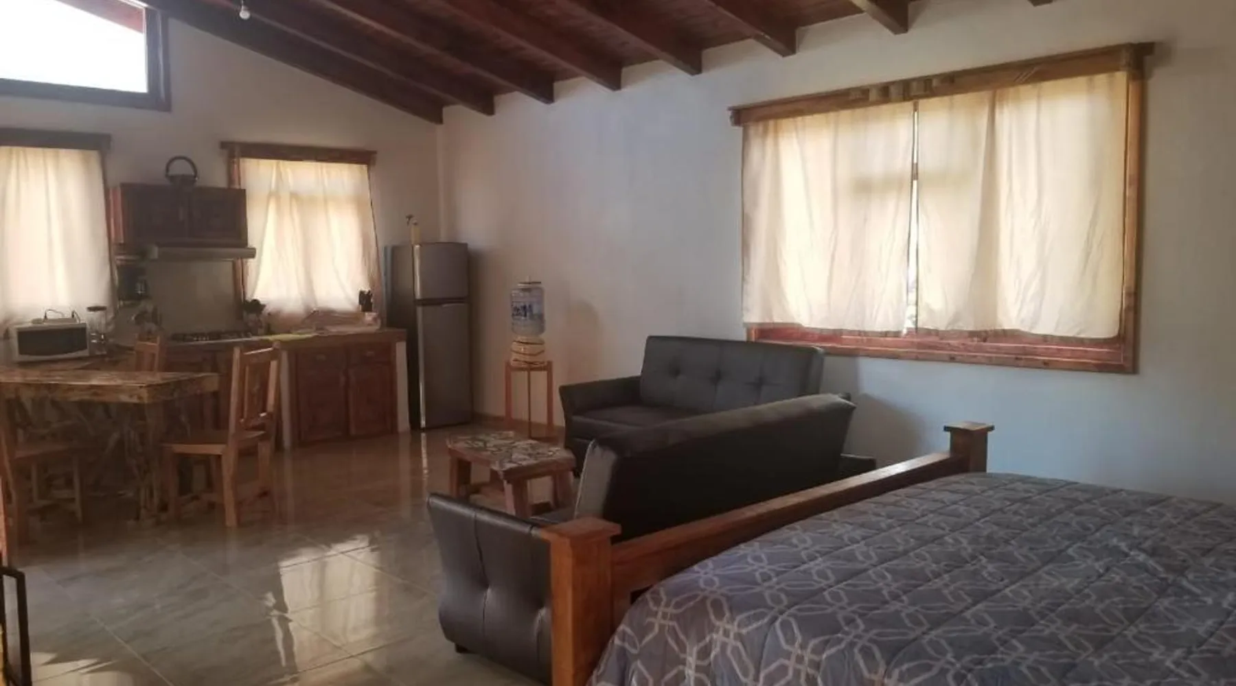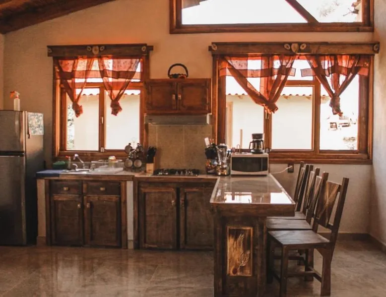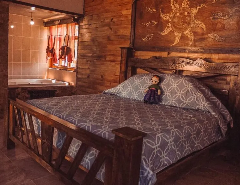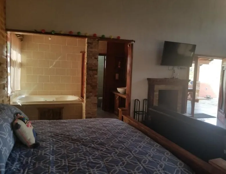 Elegant Holiday Home in Mazamitla: Cabaña Sol offers a serene holiday home experience in Mazamitla, Mexico. Guests enjoy a beautiful garden and a spacious terrace, perfect for relaxation. Comfortable Living Spaces: The property features one bedroom and a comfortable living room with a sofa bed. A fully equipped kitchen includes a stovetop, microwave, and toaster. Free toiletries and a TV enhance the stay. Outdoor Amenities: An outdoor seating area, picnic area, and barbecue facilities provide ample space for outdoor activities. A hot tub and fireplace offer additional comfort. Convenient Location: Located 72 mi from Licenciado Miguel de la Madrid Airport, Cabaña Sol is highly rated by guests for its excellent facilities and scenic views. The hot tub and fireplace are the standout features of this holiday home. This holiday home comes with 1 living room, 1 separate bedroom and 1 bathroom with a bath or a shower and free toiletries. Meals can be prepared in the well-fitted kitchen, which features a stovetop, kitchenware, a microwave and a toaster. Boasting a terrace with garden views, this holiday home also features a tea and coffee maker and a flat-screen TV. The unit has 5 beds.
